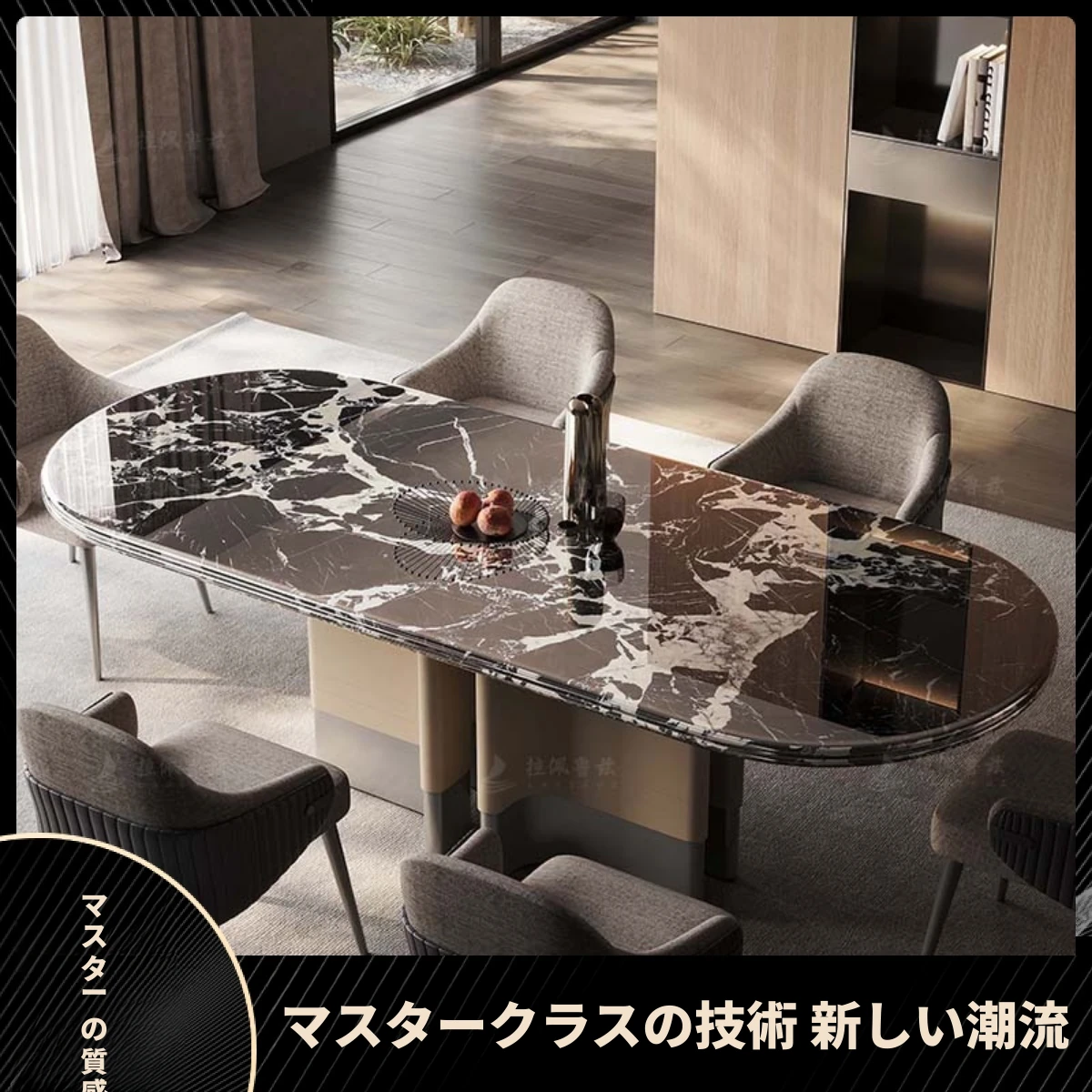 洗練された大理石製ダイニングテーブル - 高級感あふれるデザイン、別荘にぴったりのナチュラルラグジュアリー。新作イタリアンミニマリズムスタイルで、上質な食卓を演出します。