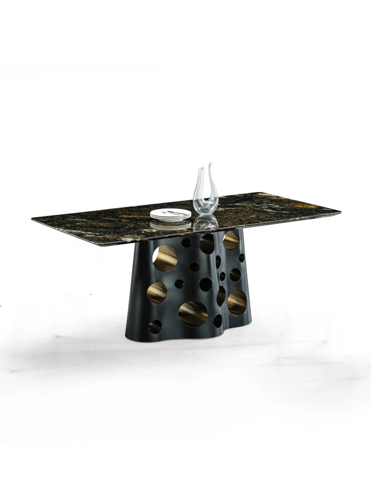 イタリアンラグジュアリー大理石ダイニングテーブル|デザイナーズヴィラ向け|高級感あふれるアートデザイン|個性的な形状で特別な空間を演出!