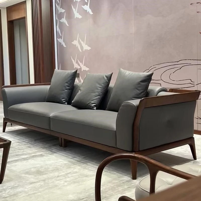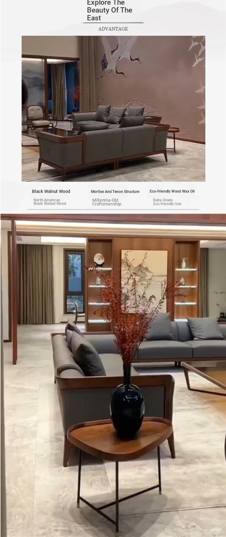 2025 New Trendy Chinese Style Solid Wood Sofa - Modern Minimalist Design in High-Quality Black Walnut for Your Living Room - Perfect Size for Comfort and Elegance