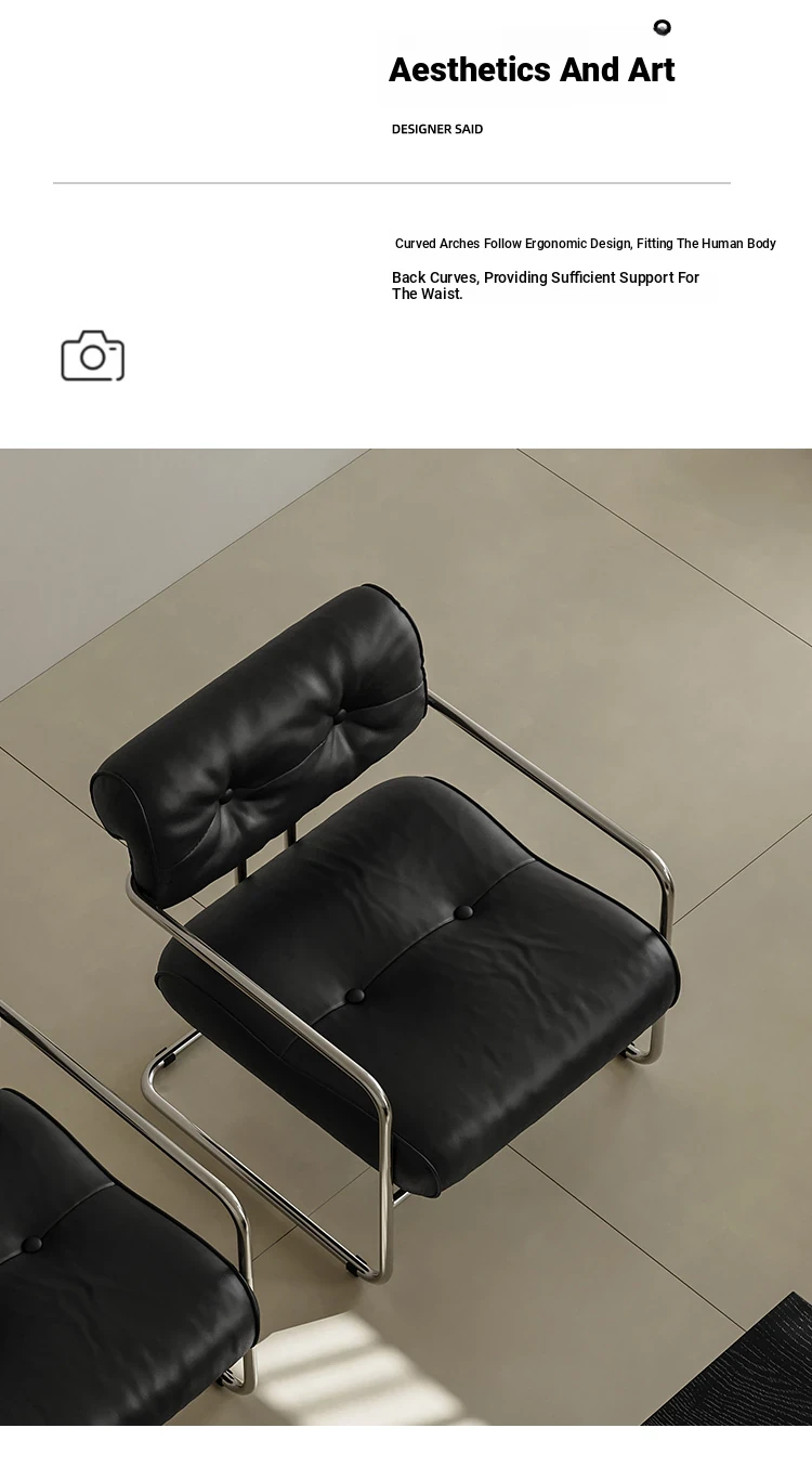 Black sofa chair "Nappa leather + stainless steel]