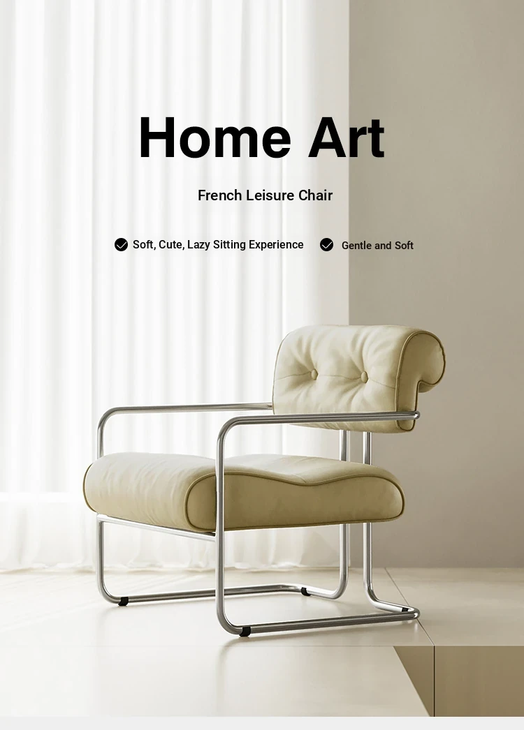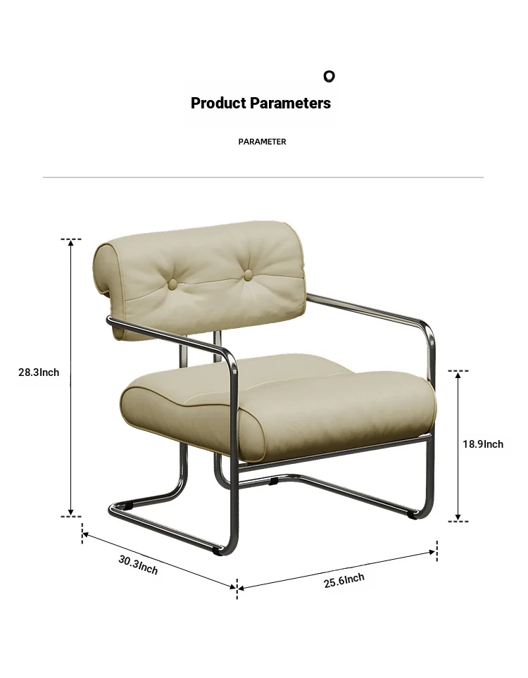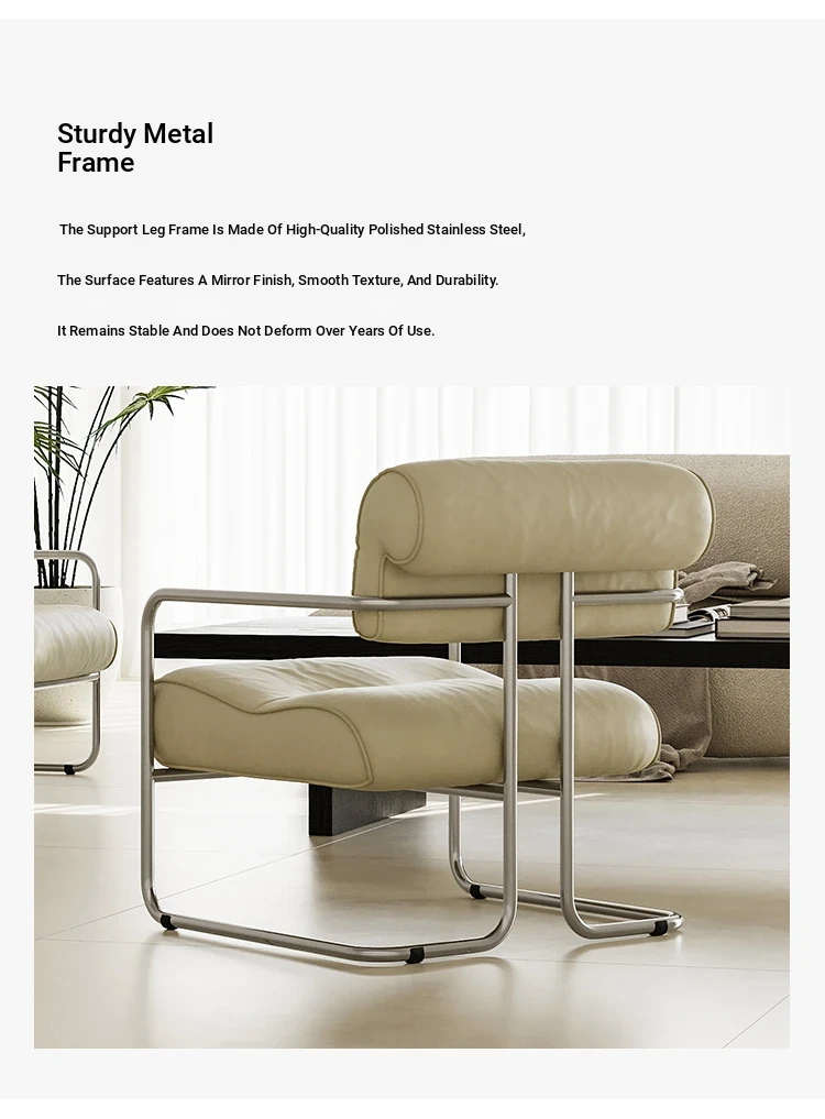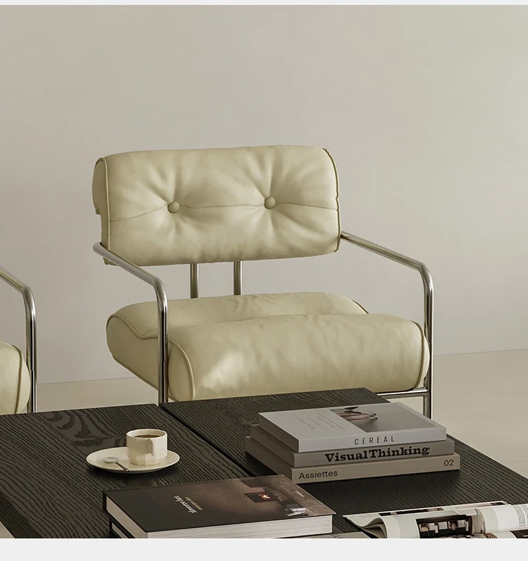 White sofa chair "Nappa leather + stainless steel]