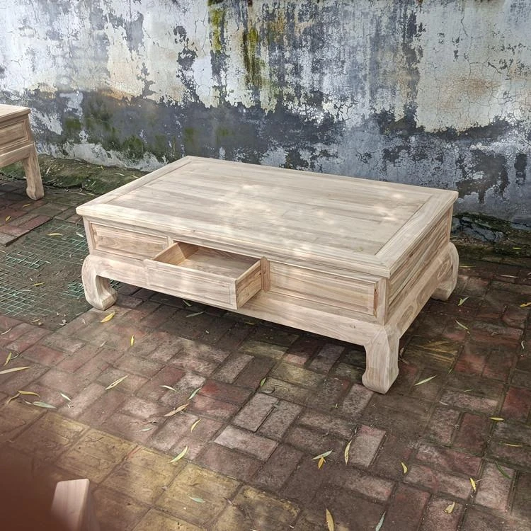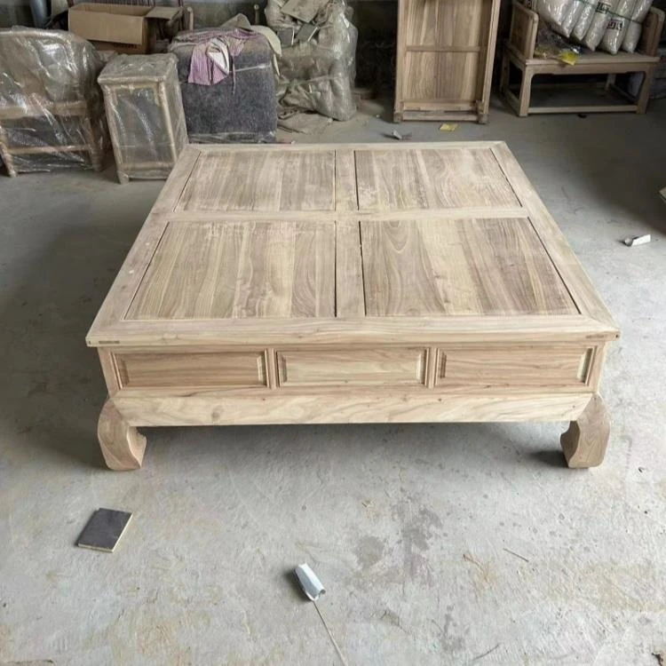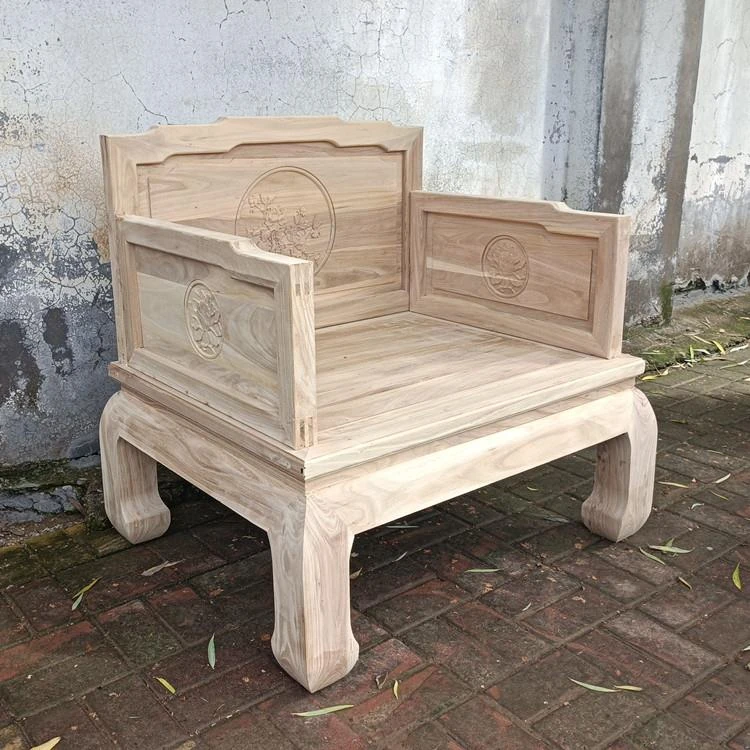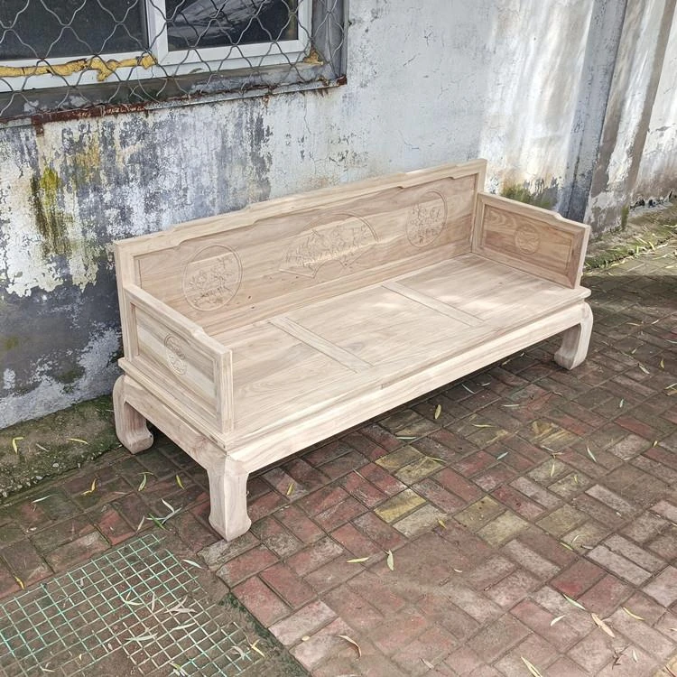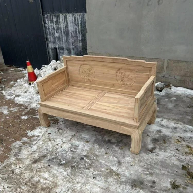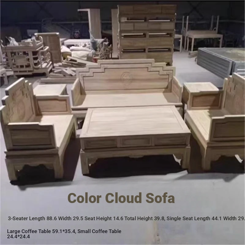 Classic Northern Elm Wood Chinese-Style Carved Sofa and Coffee Table Set for Living Room - Elegant Home Furniture in Natural Finish