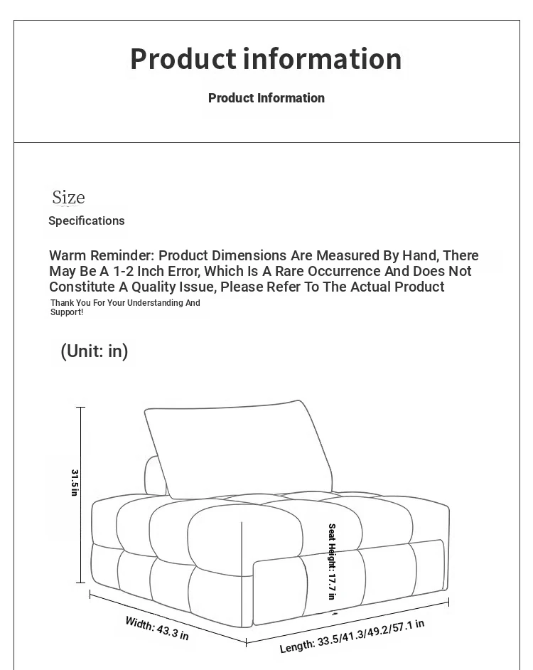 Width 33.46in sofa bed 78.74in [anti cat scratch skin]]
