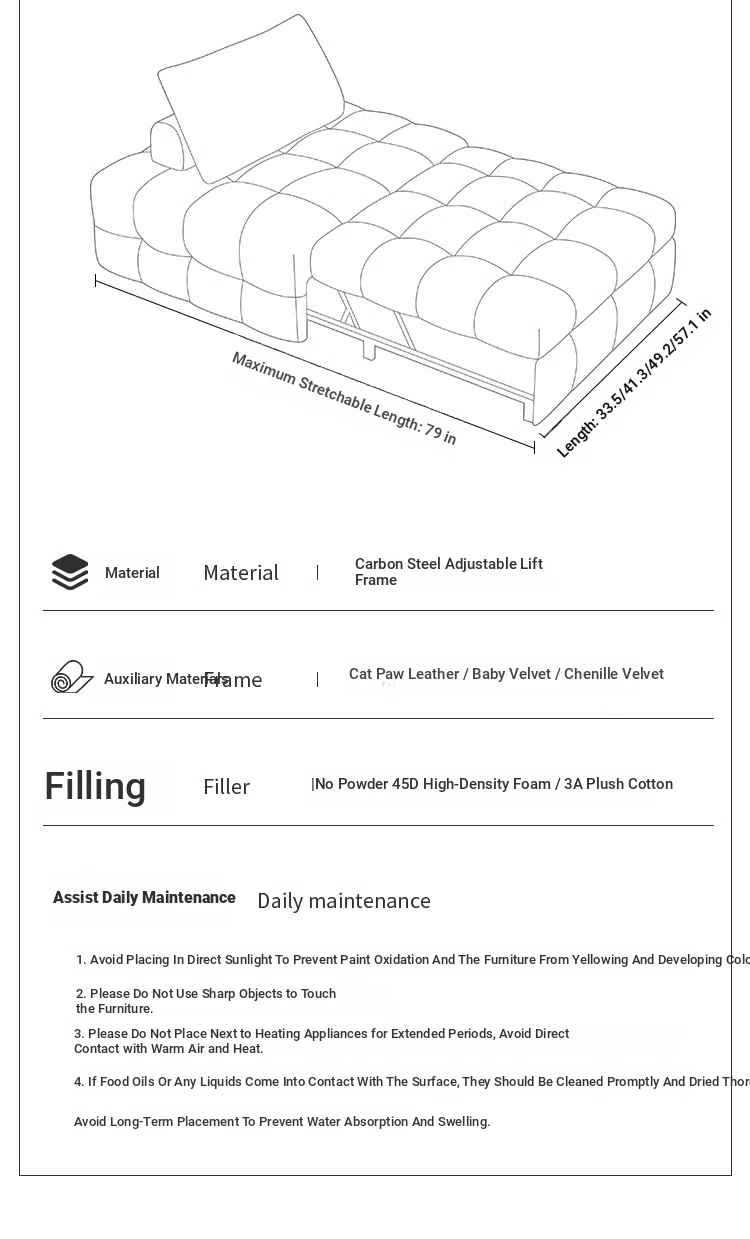 Width 49.21in sofa bed 78.74in [anti cat scratch skin]]
