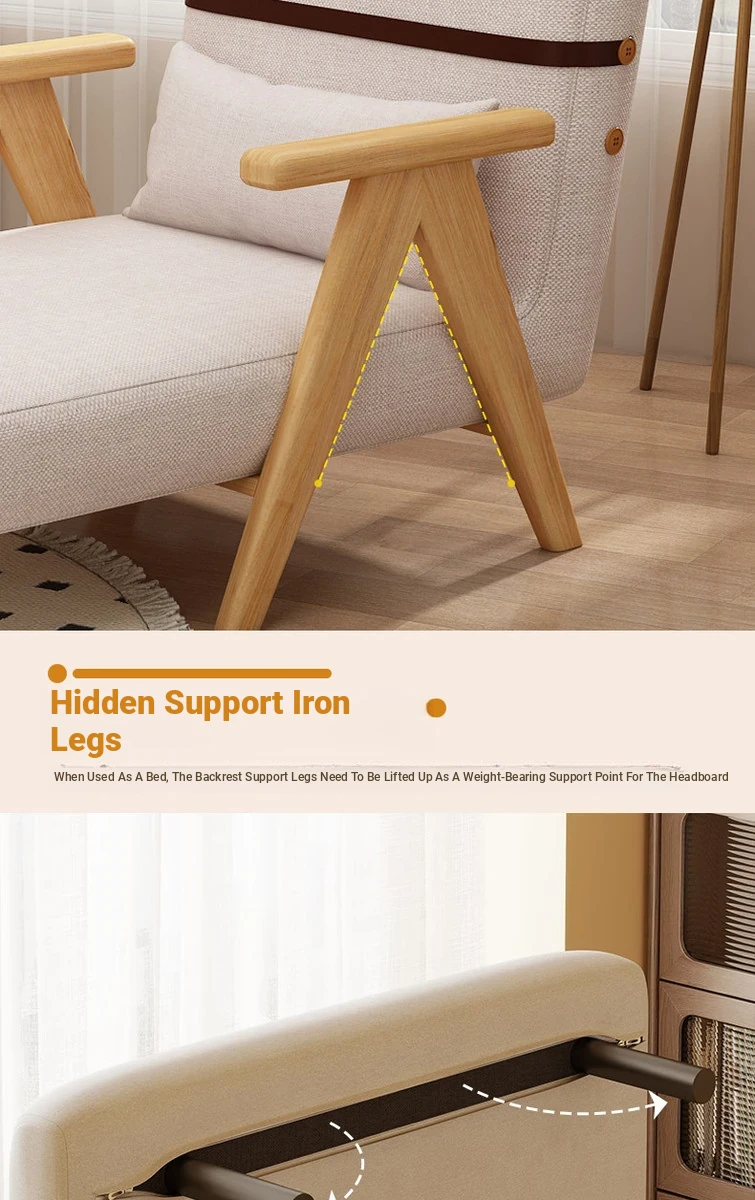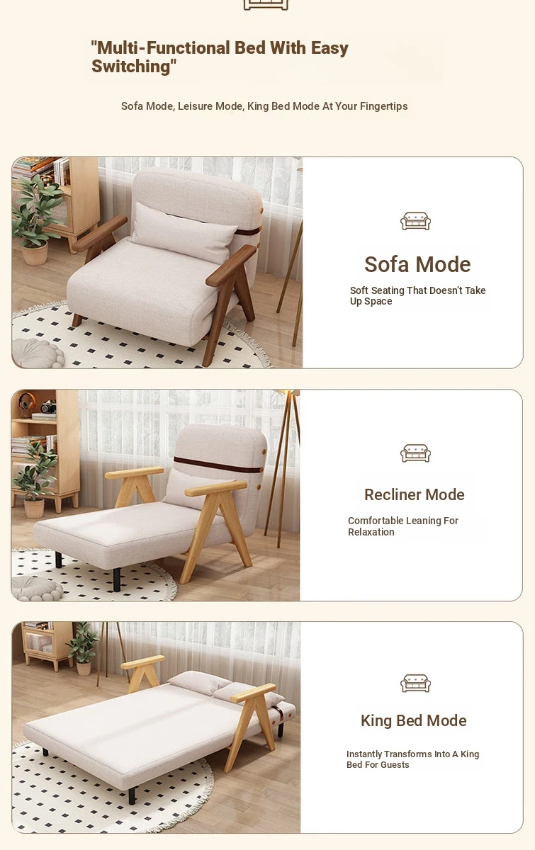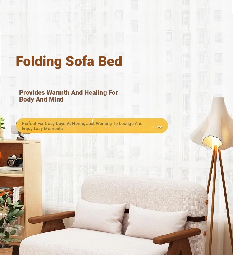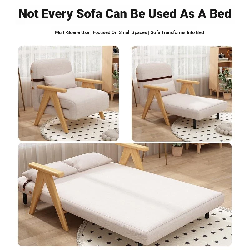 Compact Folding Sofa Bed - Multifunctional Single Bed for Small Spaces, Trendy Japanese Lazy Sofa Bed with Solid Wood Frame