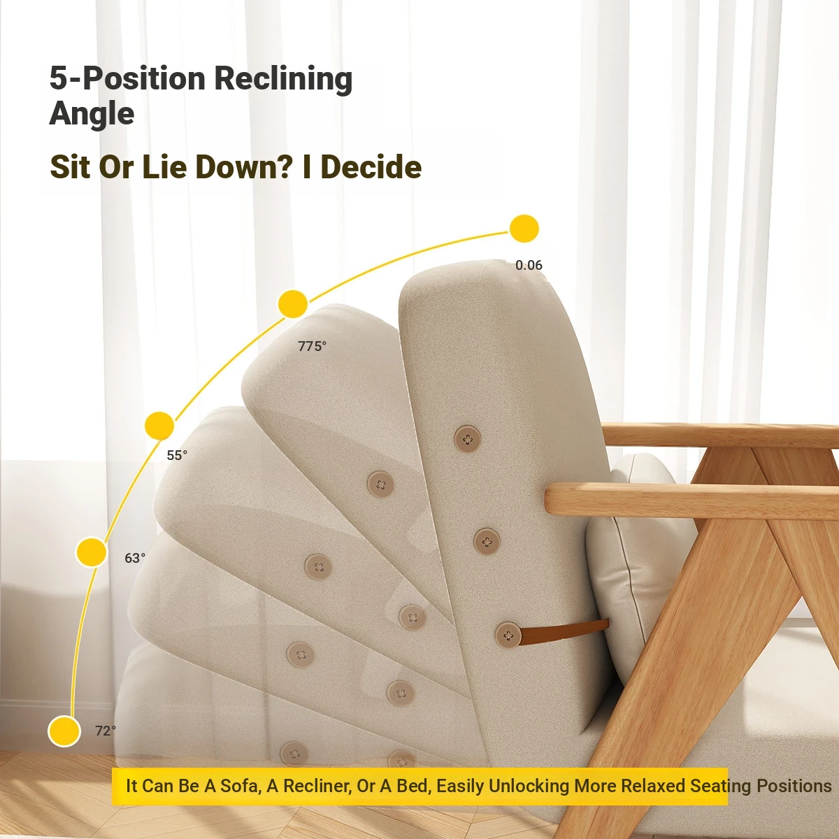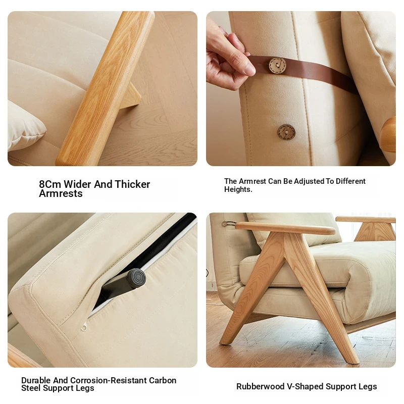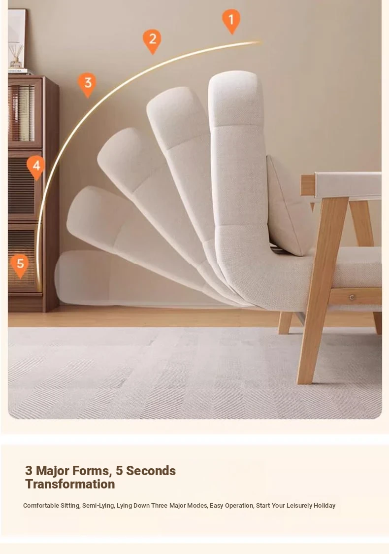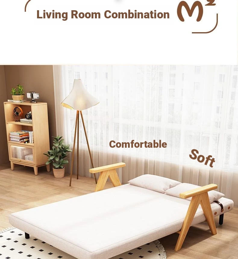 Compact Folding Sofa Bed - Multifunctional Single Bed for Small Spaces, Trendy Japanese Lazy Sofa Bed with Solid Wood Frame