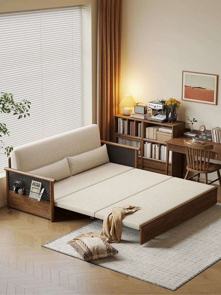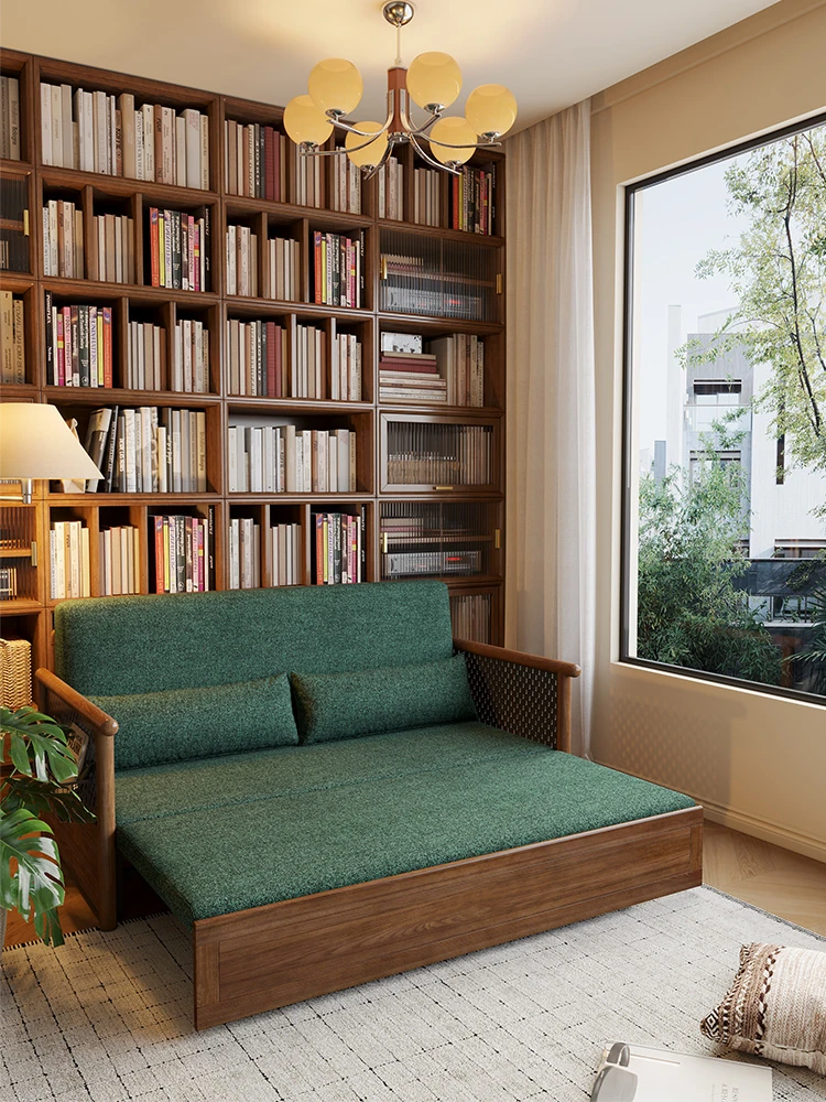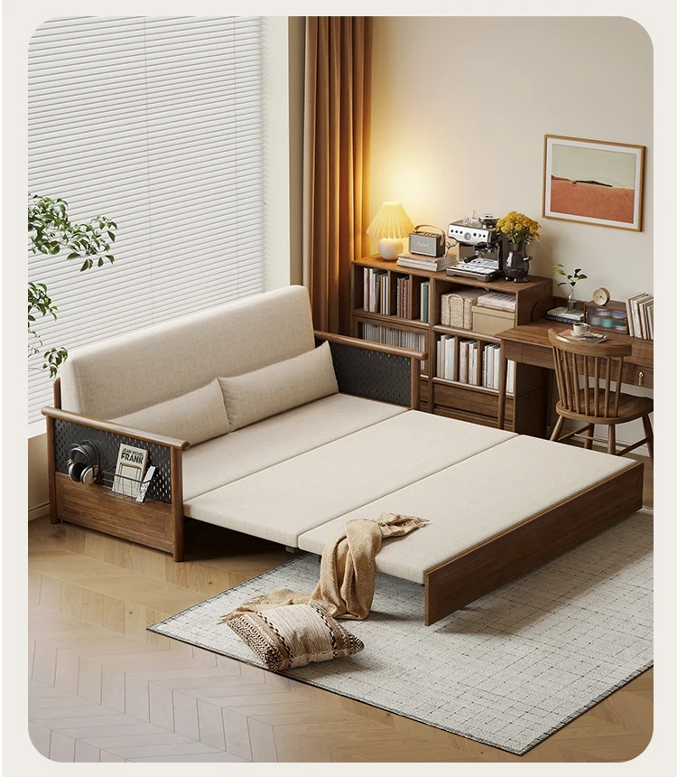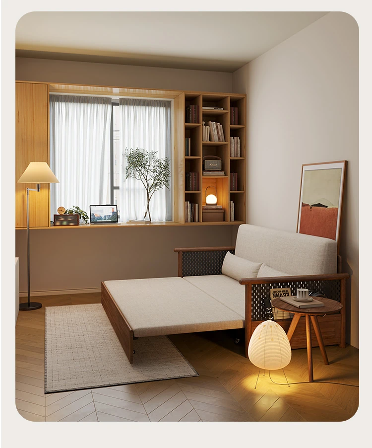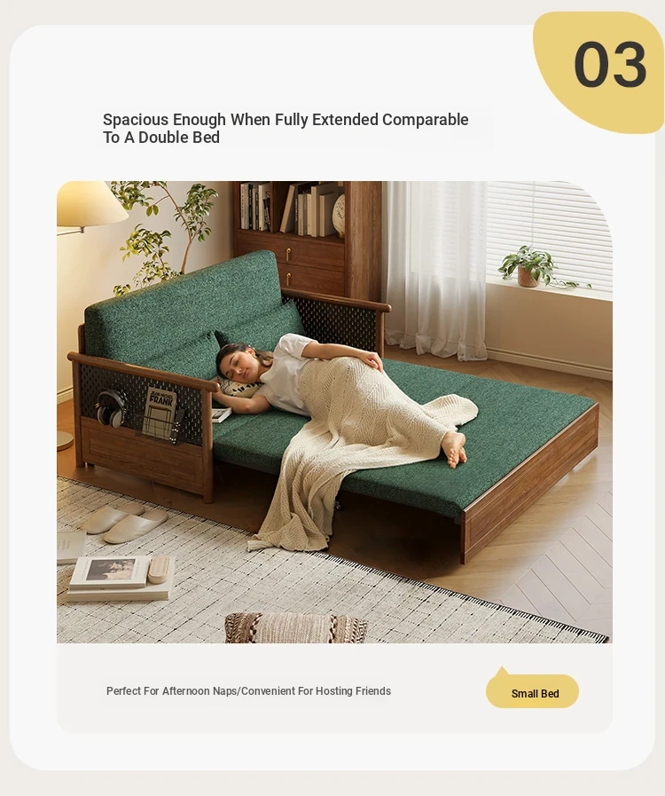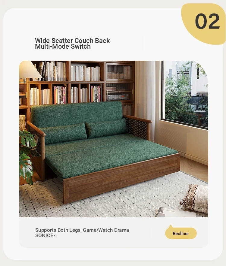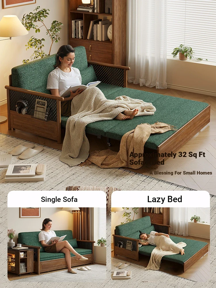 Convertible Sofa Bed - Modern Space-Saving Design in Walnut Finish for Small Living Rooms - Multipurpose Sofa Bed for Home Use, Ideal for Guest Rooms and Single Occupancy