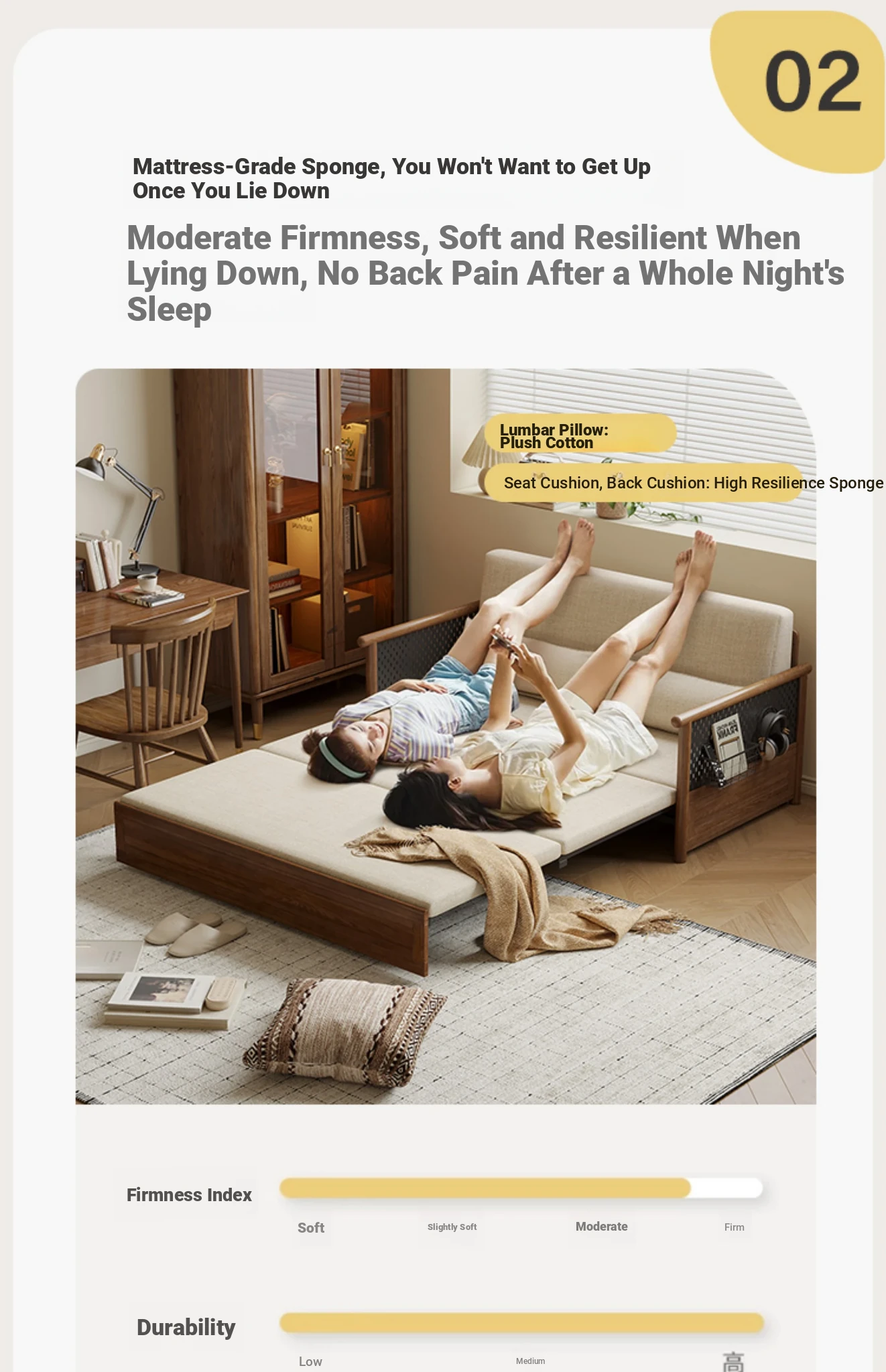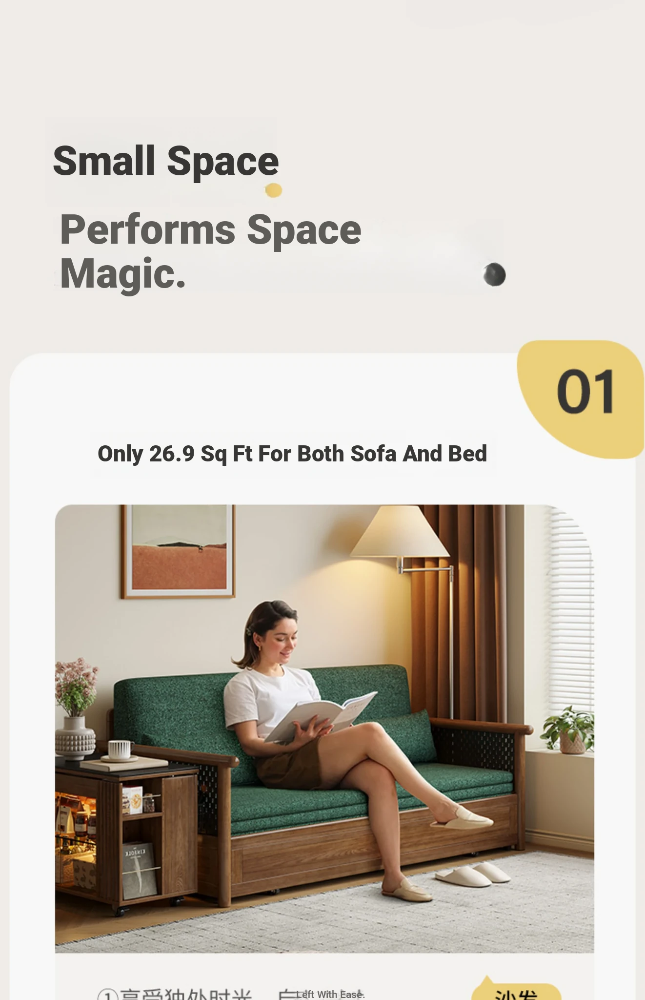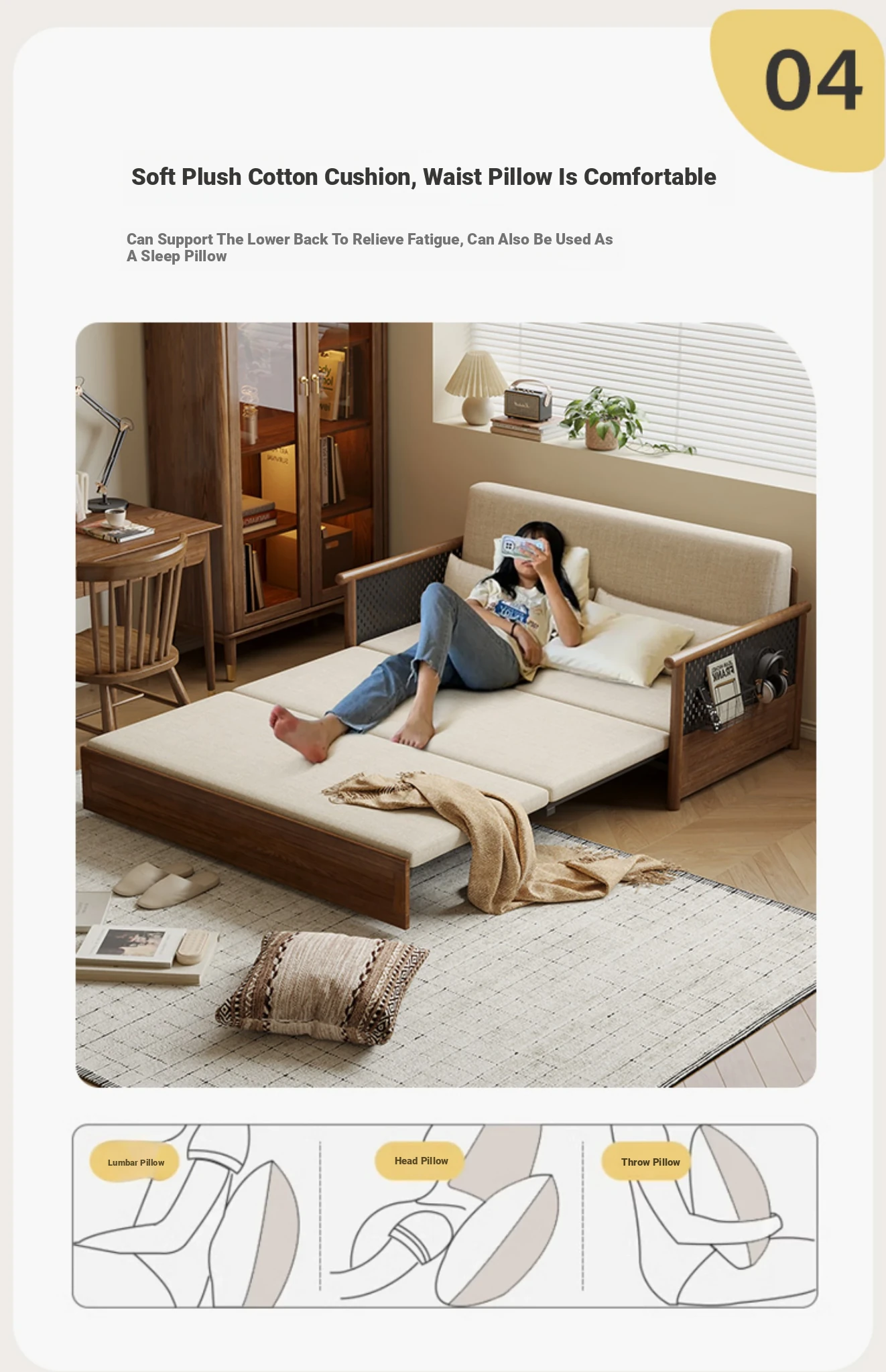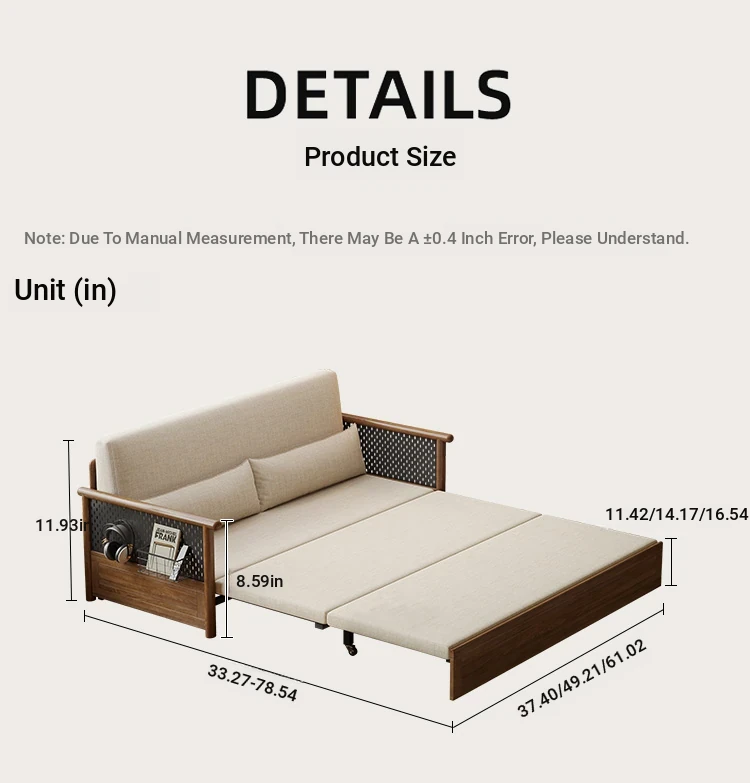Convertible Sofa Bed - Modern Space-Saving Design in Walnut Finish for Small Living Rooms - Multipurpose Sofa Bed for Home Use, Ideal for Guest Rooms and Single Occupancy