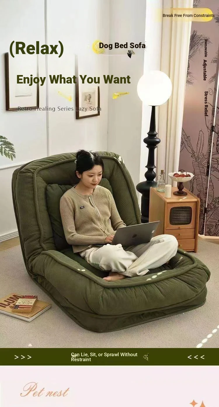 Cozy Human Dog Bed Lazy Sofa – Foldable Sleeping Chair for Bedroom, Dual-Use Double Lounge Chair, Giant Tatami Style Comfort for Ultimate Relaxation