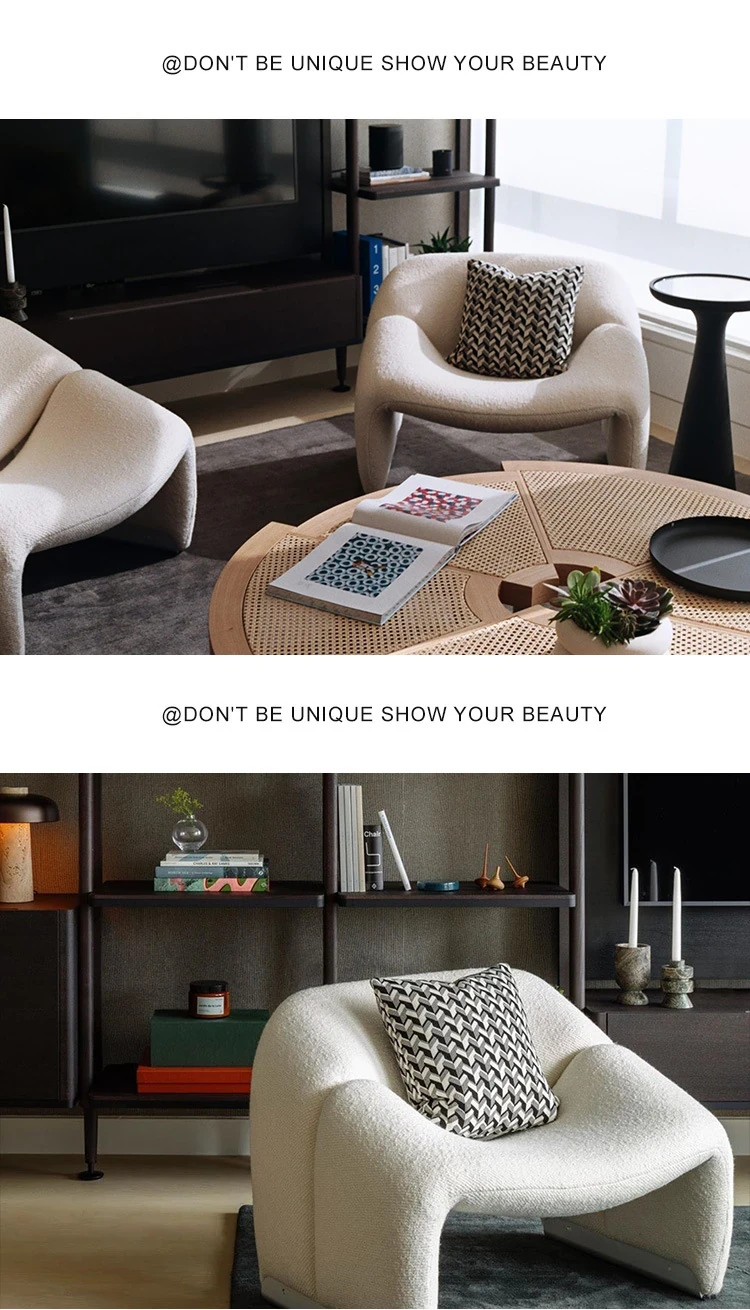 Creative Light Luxury Single Leisure Sofa Chair - Minimalist Modern Trendy Crab Chair in Nordic Cream Style with Cozy Lamb Fleece Upholstery. Perfect for Chic Living Spaces!