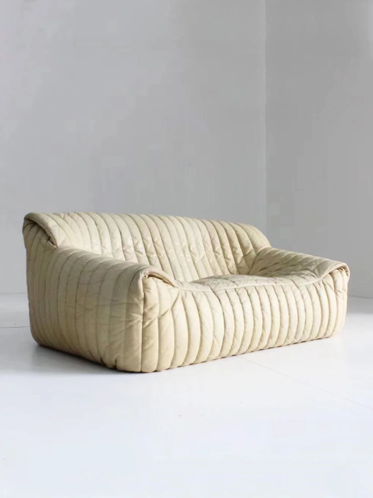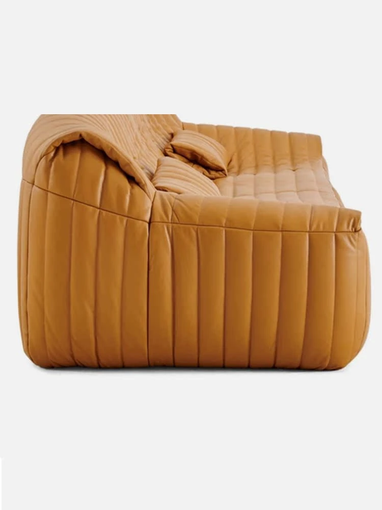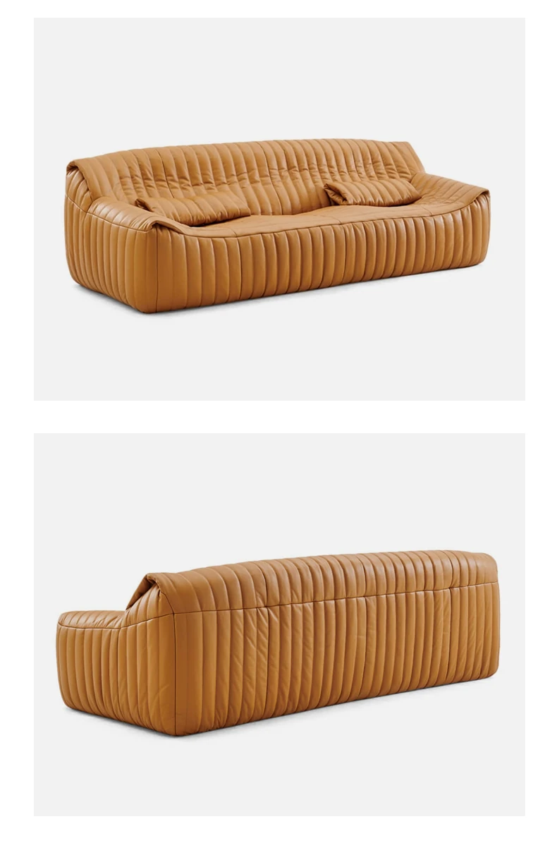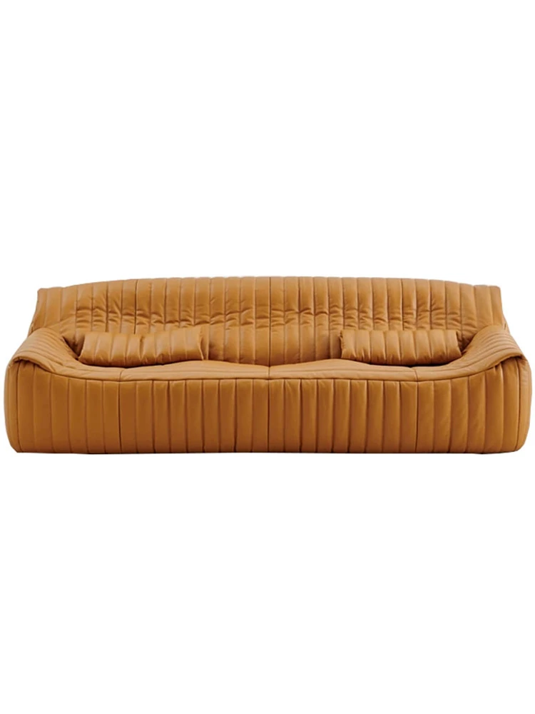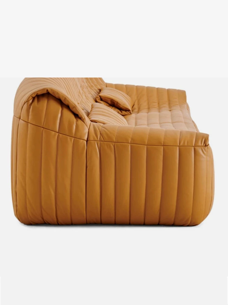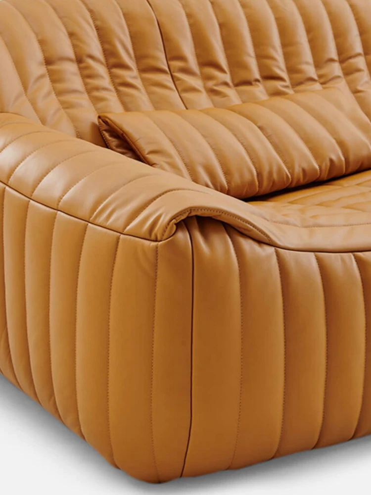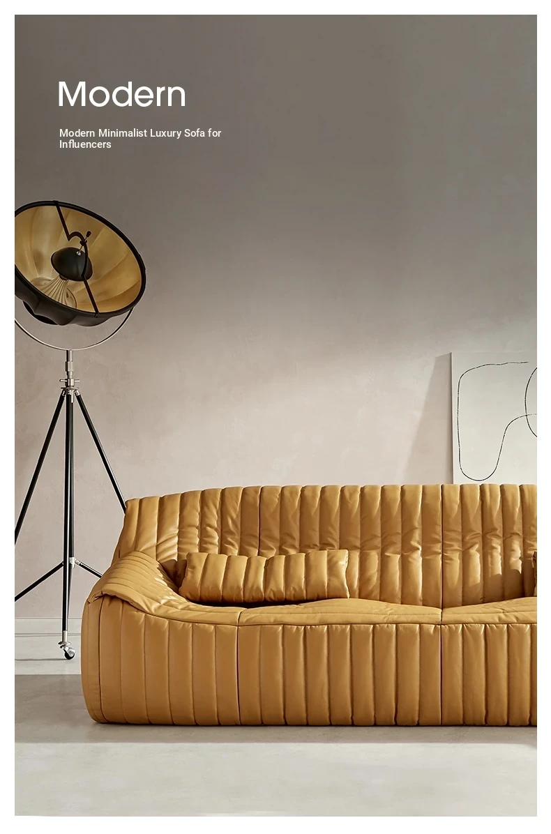 Designer Italian-Style Luxury Minimalist Sofa for Small Spaces - High-End Leisure Couch with Top-Grain Leather and Elegant Fabric, Perfect for Modern Interiors