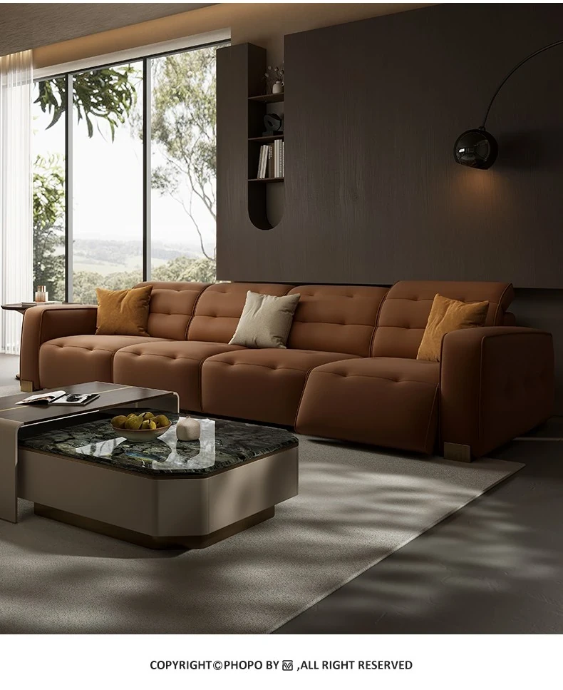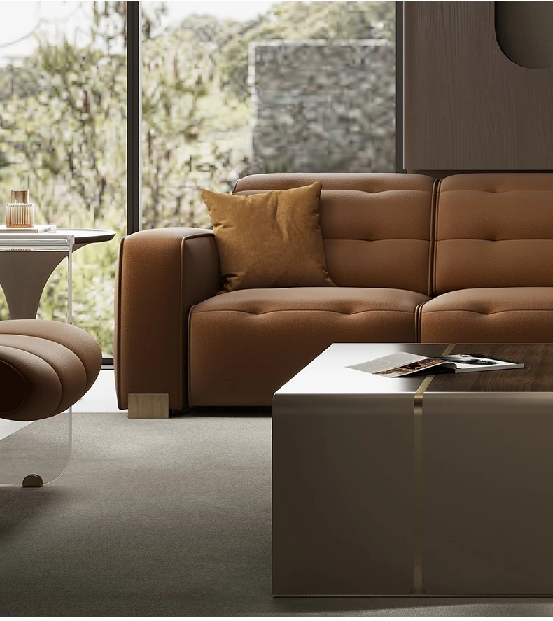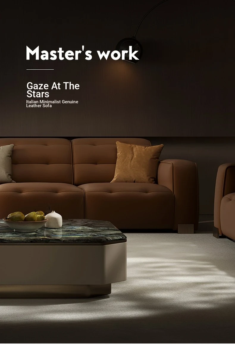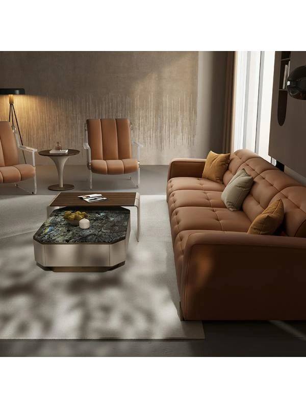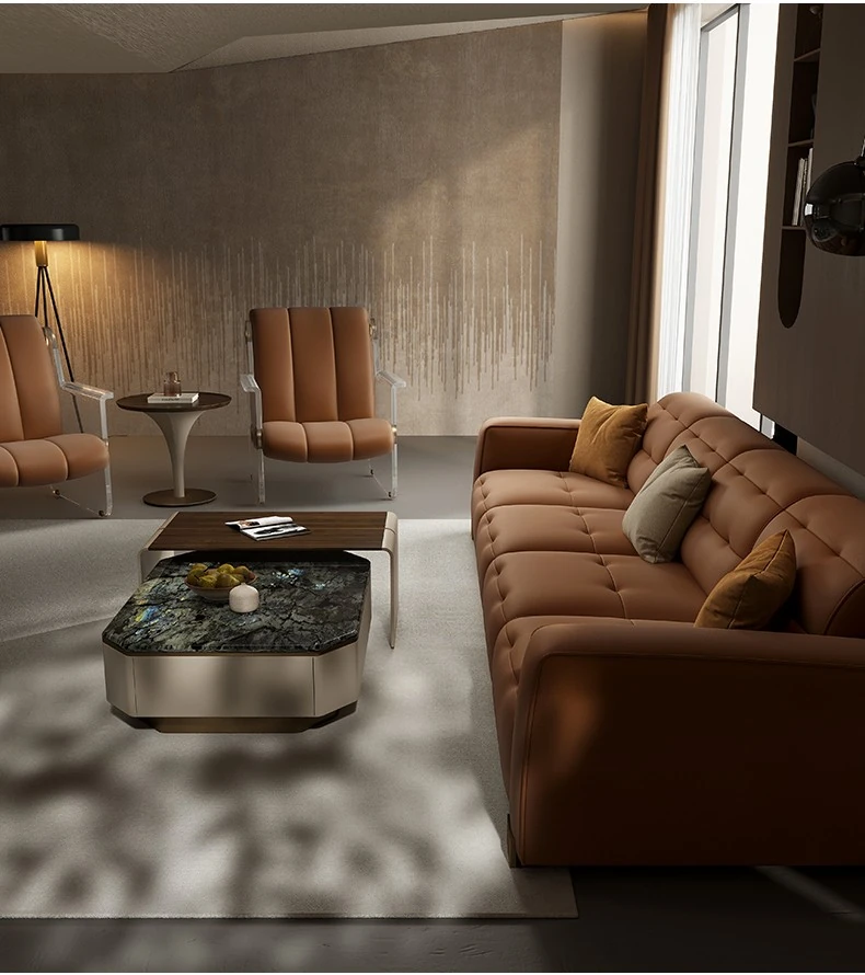 Designer Leather Sofa Set for Villa - Modern Italian Luxury Upholstered Sofa for Spacious Living Rooms - Stylish and Comfortable Modular Arrangement