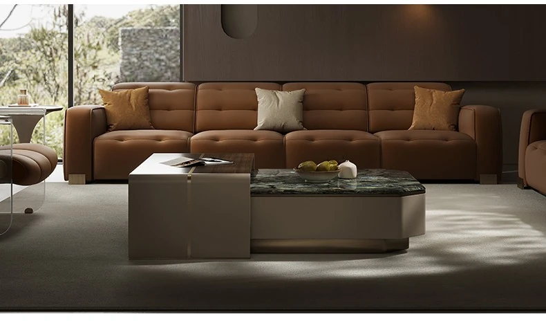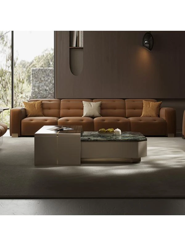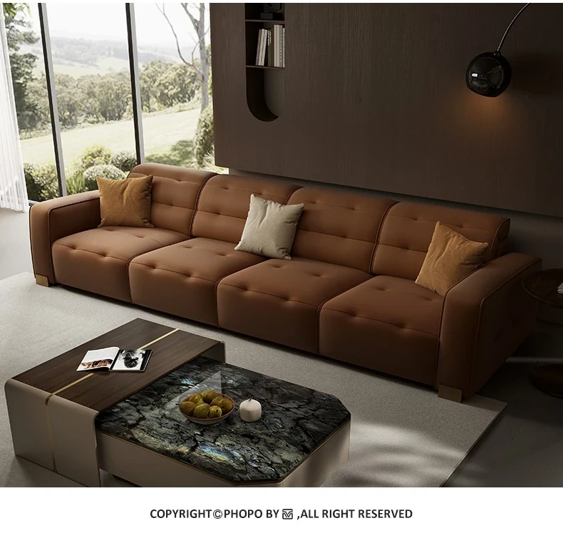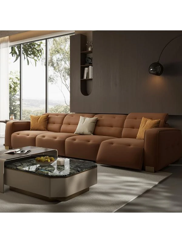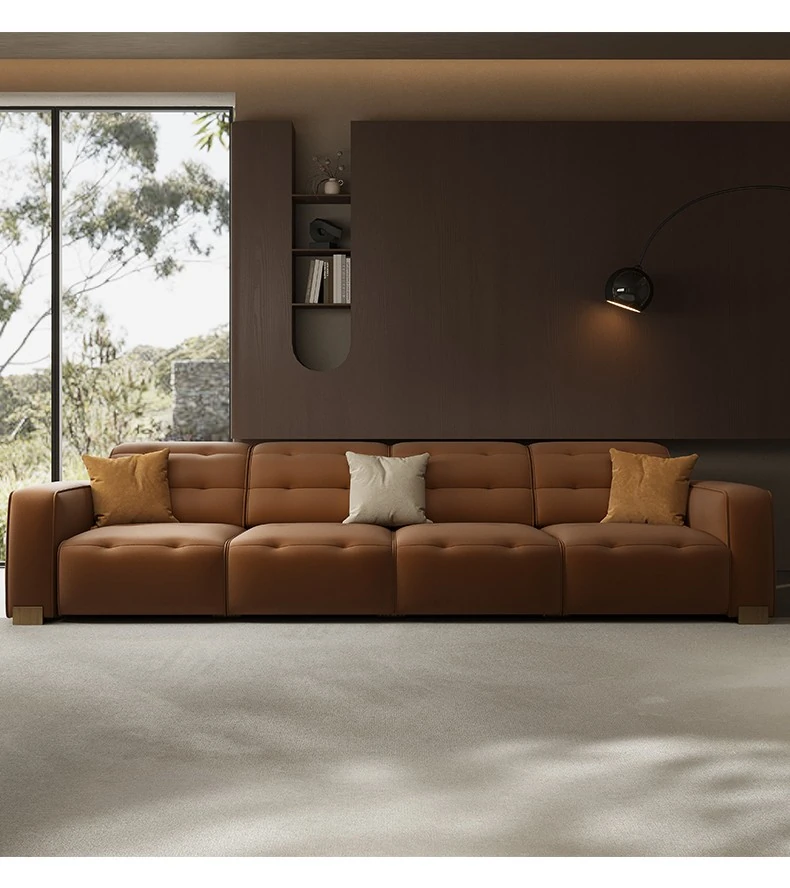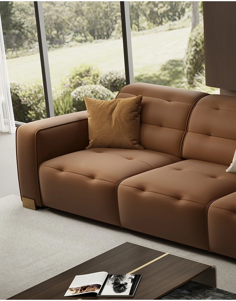 Designer Leather Sofa Set for Villa - Modern Italian Luxury Upholstered Sofa for Spacious Living Rooms - Stylish and Comfortable Modular Arrangement
