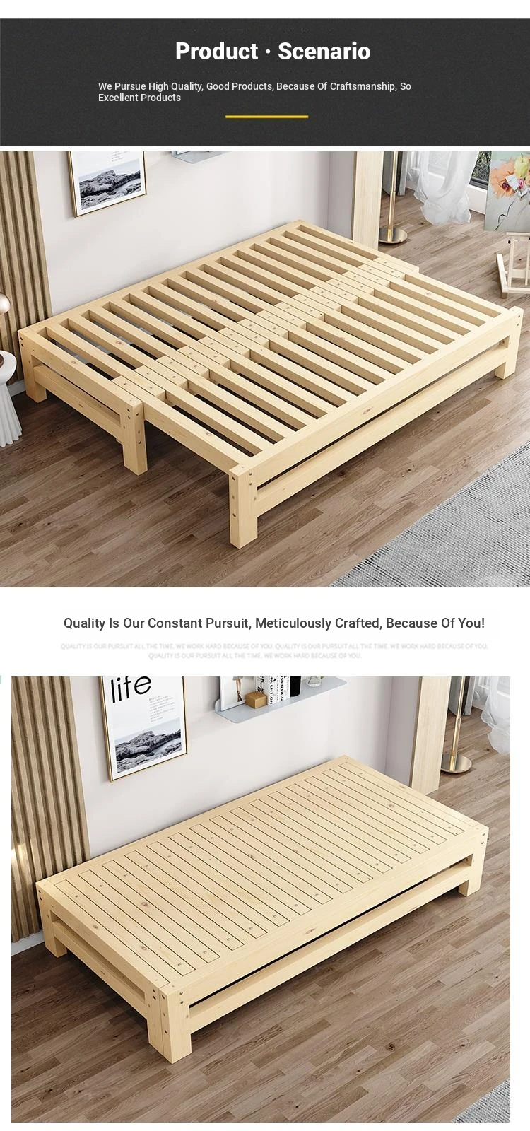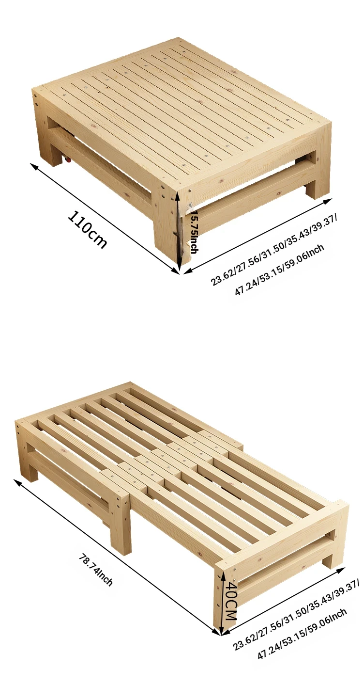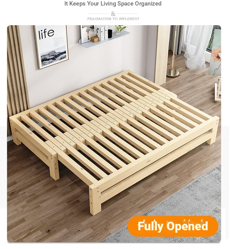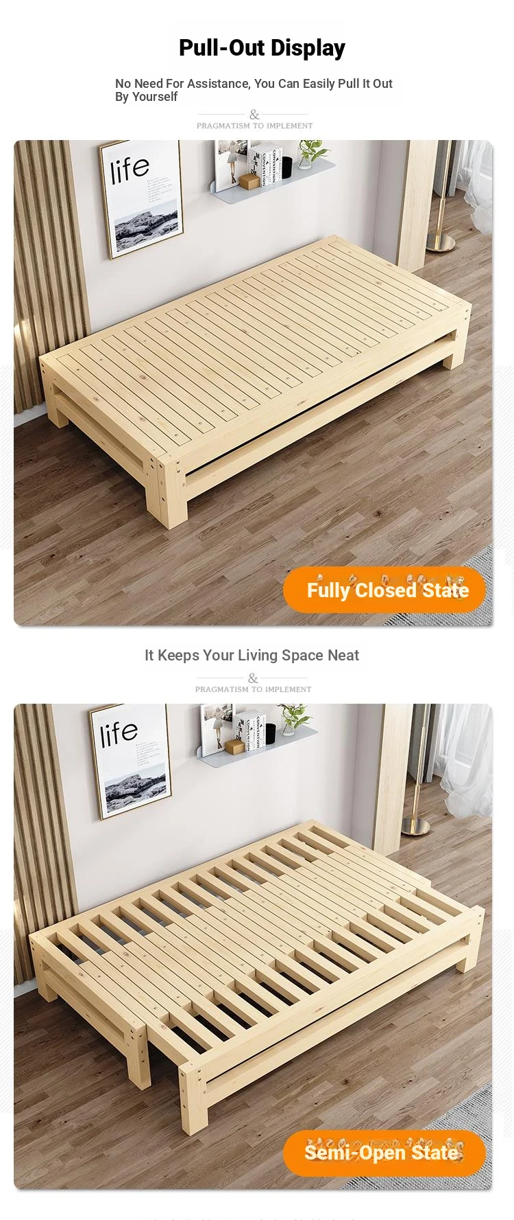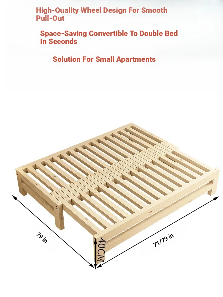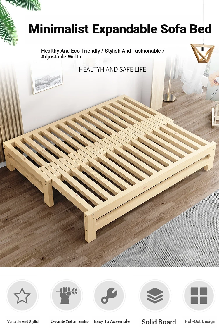 Eco-Friendly Solid Wood Expandable Sofa Bed - Minimalist Tatami Pull-Out Multifunctional Bed for Small Spaces, Perfect for Napping and Relaxation.