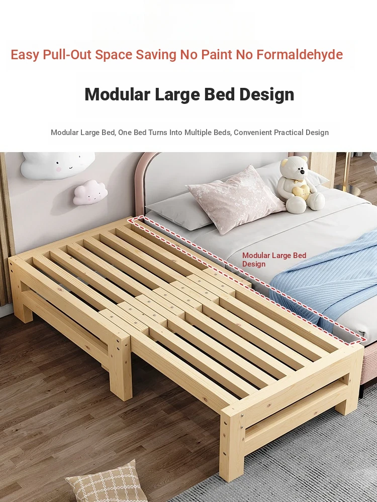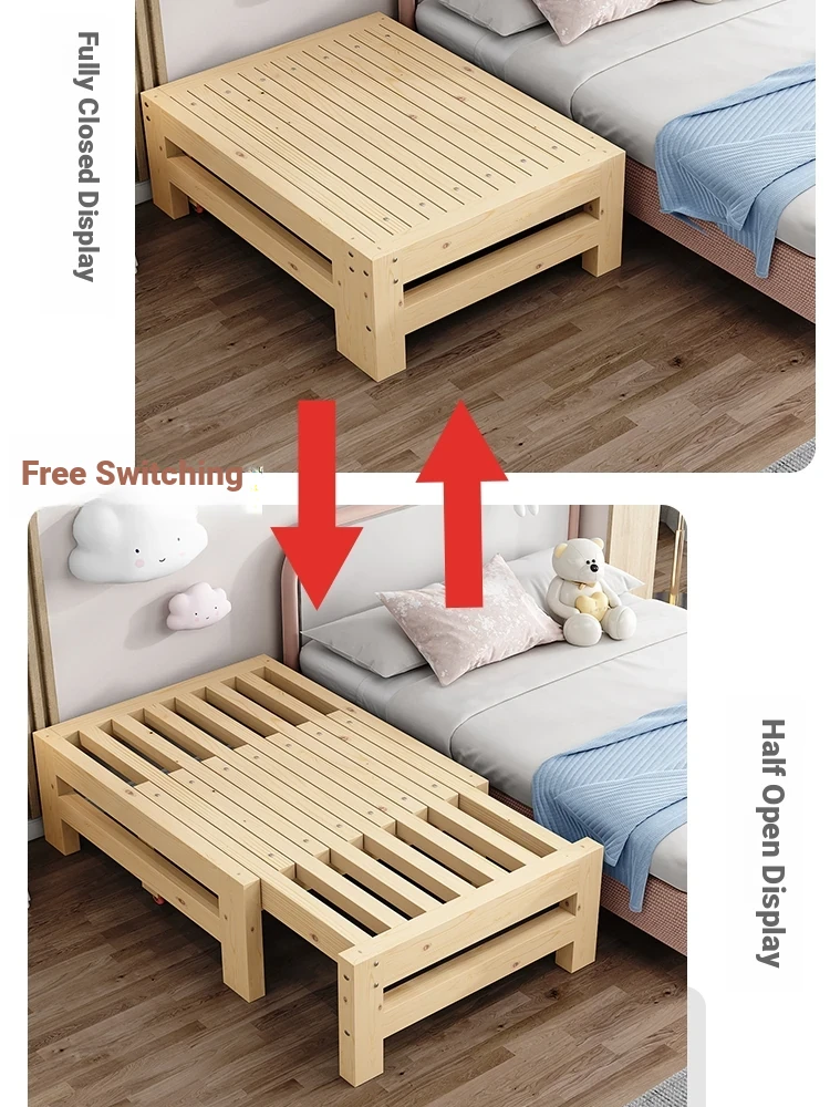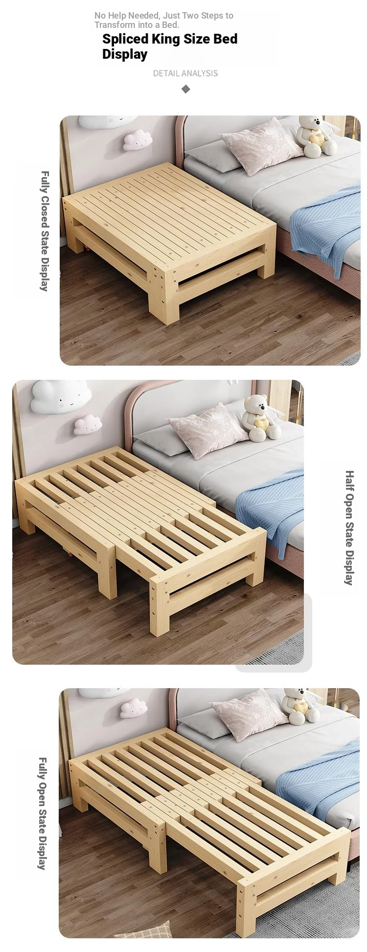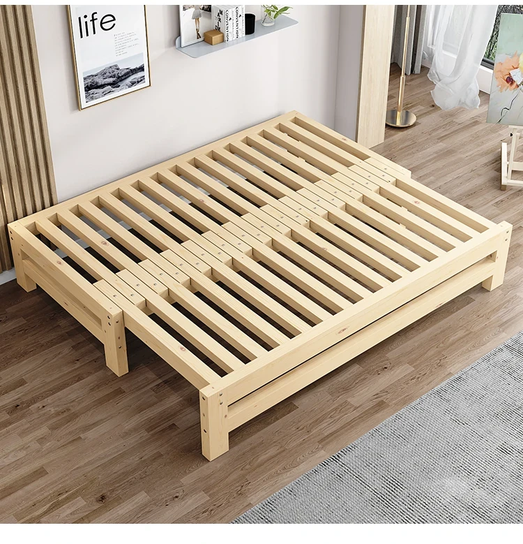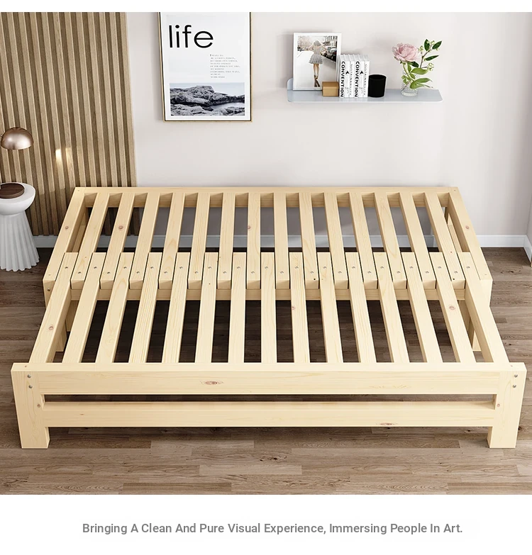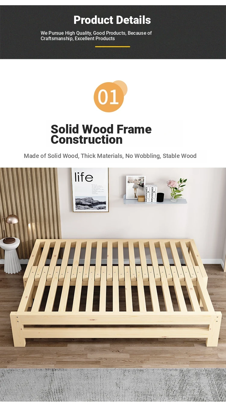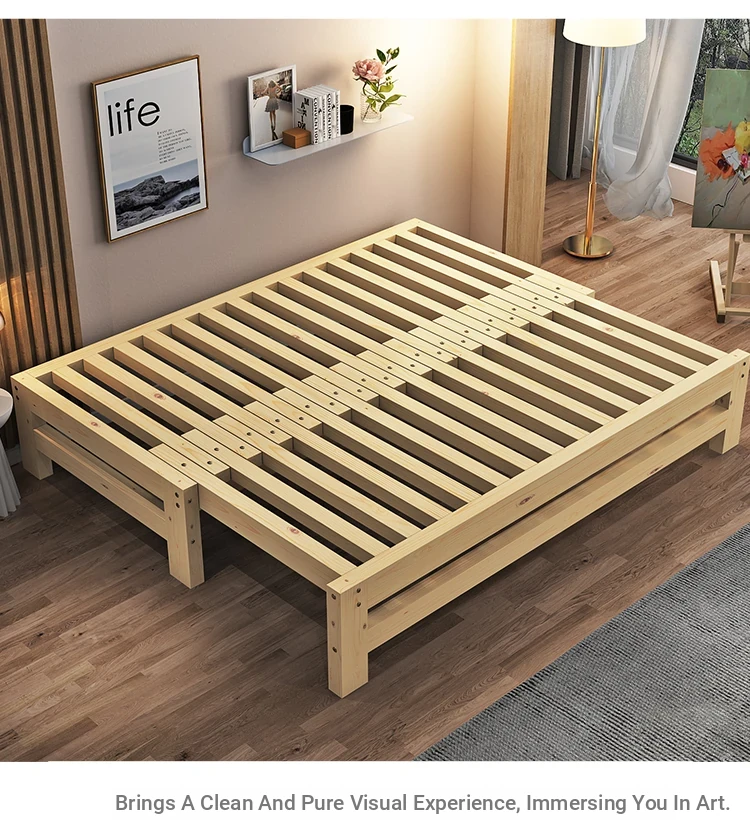 Eco-Friendly Solid Wood Expandable Sofa Bed - Minimalist Tatami Pull-Out Multifunctional Bed for Small Spaces, Perfect for Napping and Relaxation.
