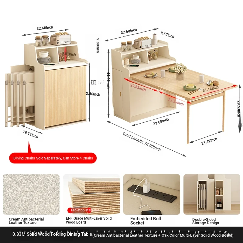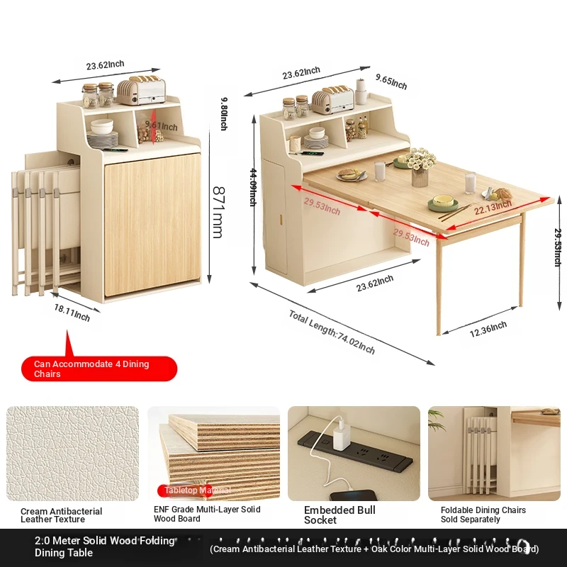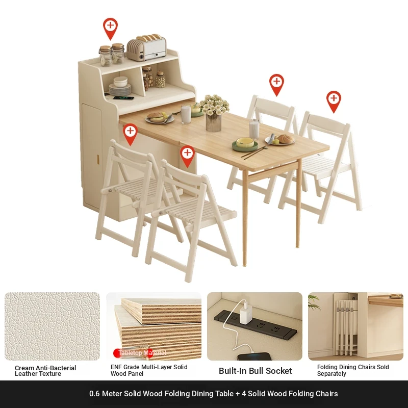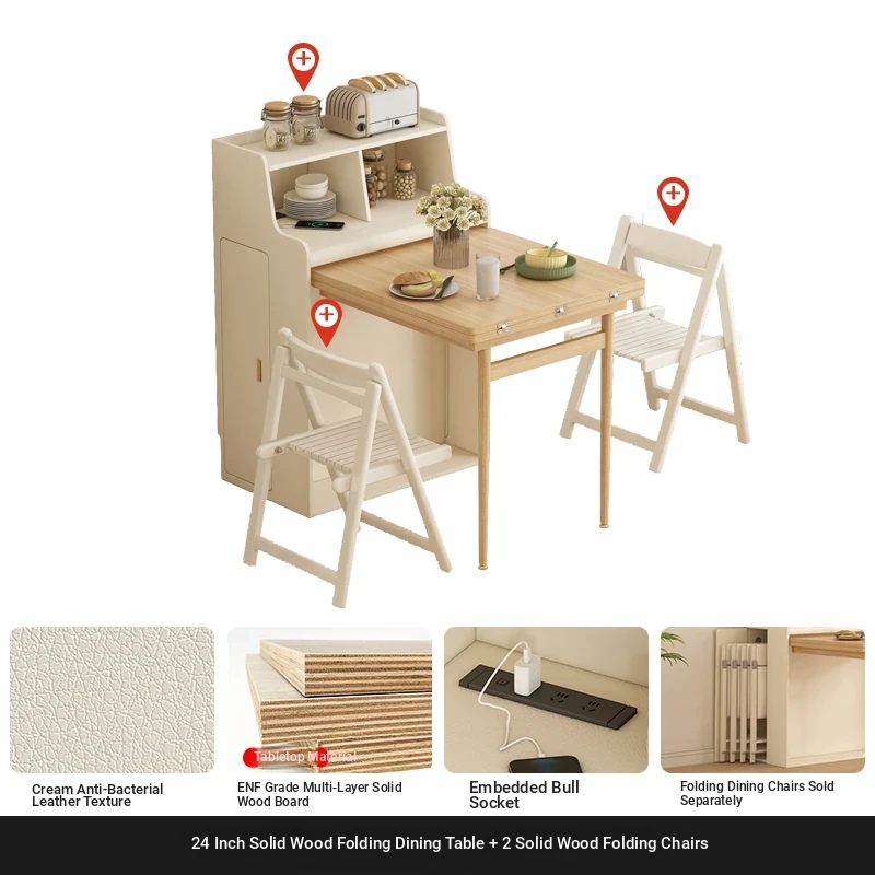 【Free Shipping in Hong Kong】Multifunctional Solid Wood Folding Dining Table for Small Spaces - Wall-Mounted, Space-Saving, and Easy Storage! Perfect for Home Use!