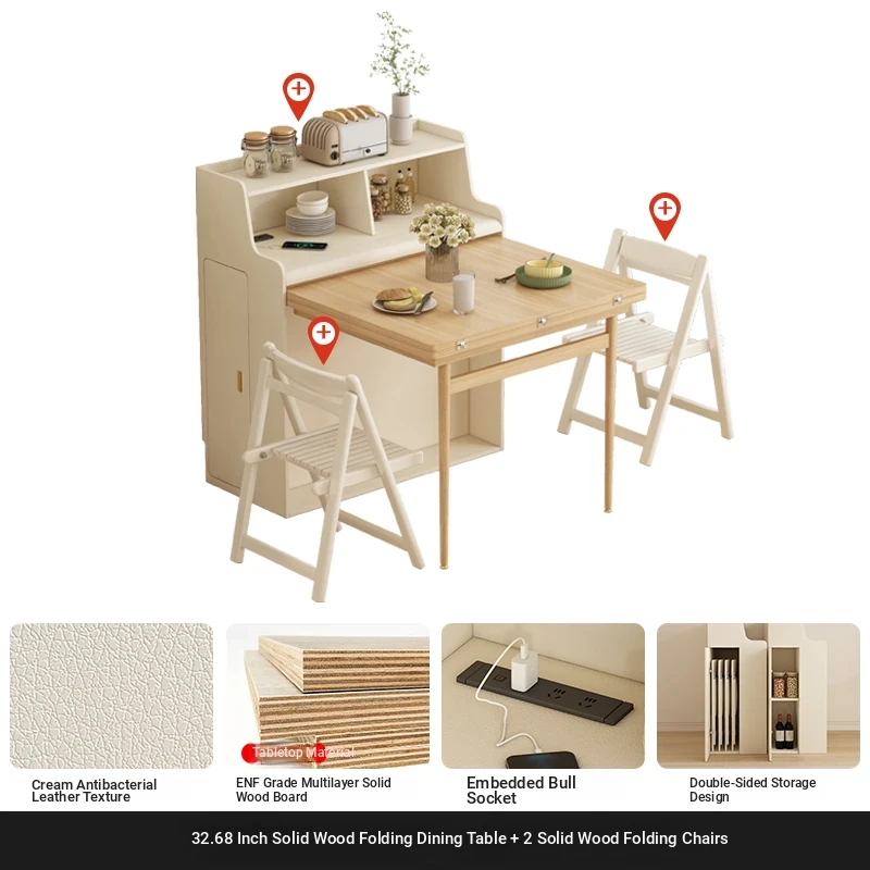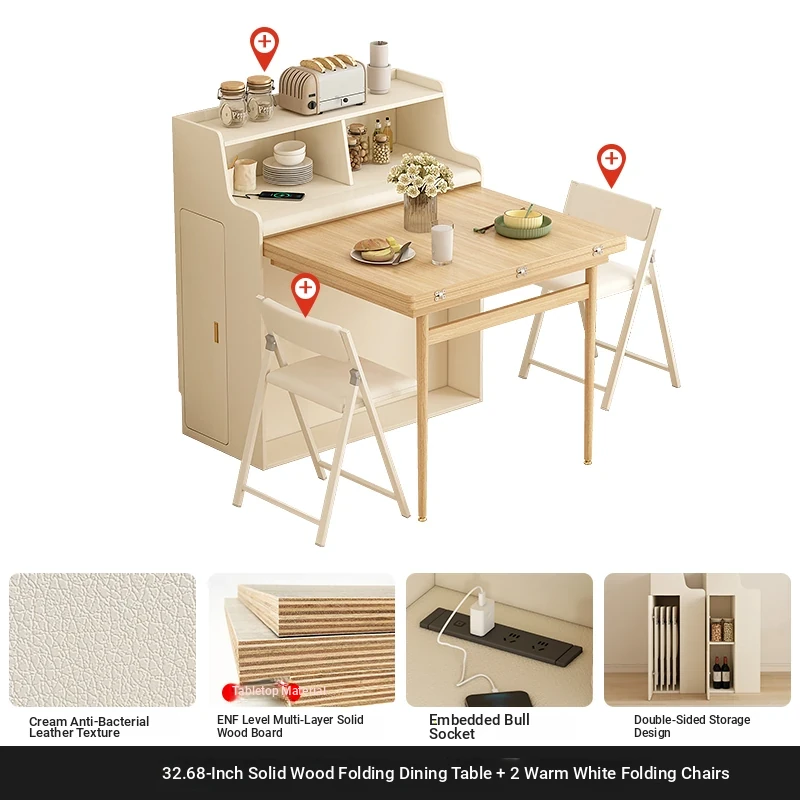 32.68 in solid wood Foldable table + warm white Foldable dining chair * 2