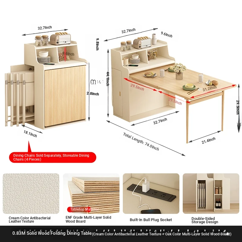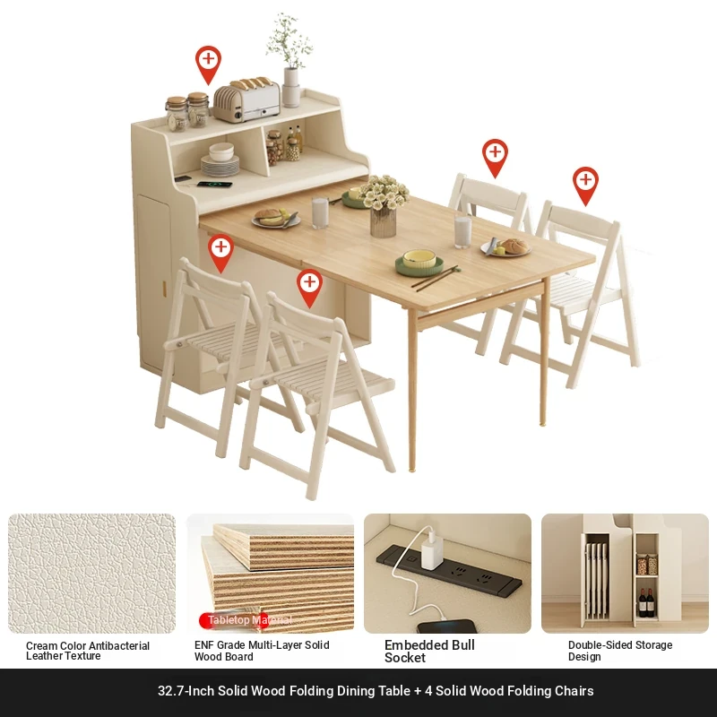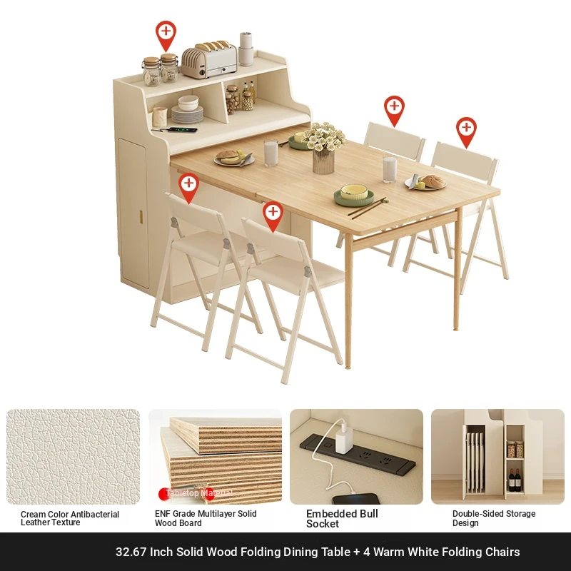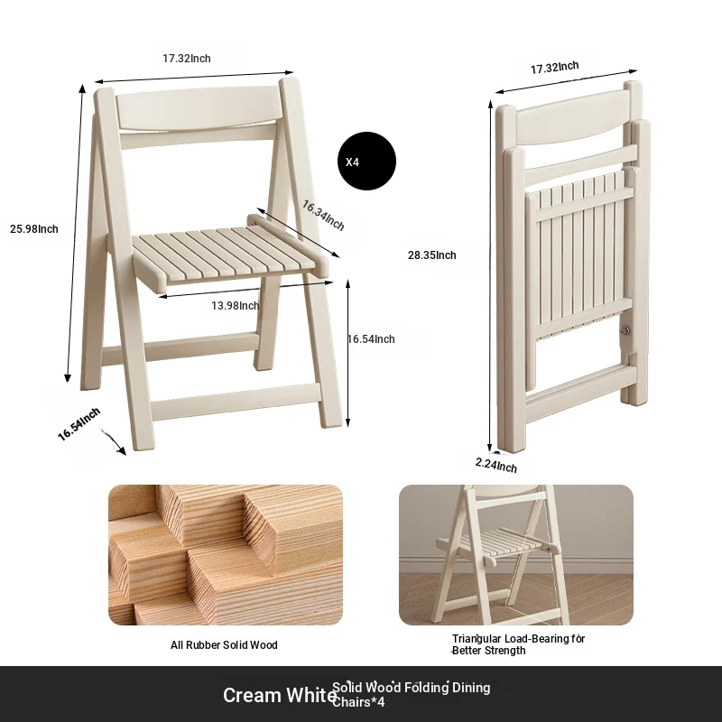 32.68 in solid wood Foldable table + warm white Foldable dining chair * 4