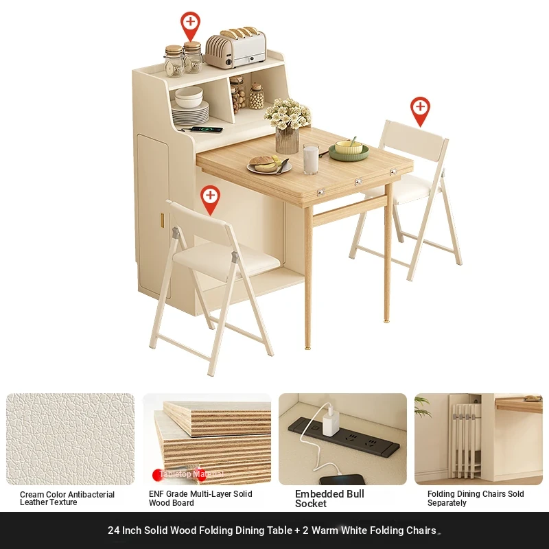 23.62 in solid wood Foldable table + warm white Foldable dining chair * 2