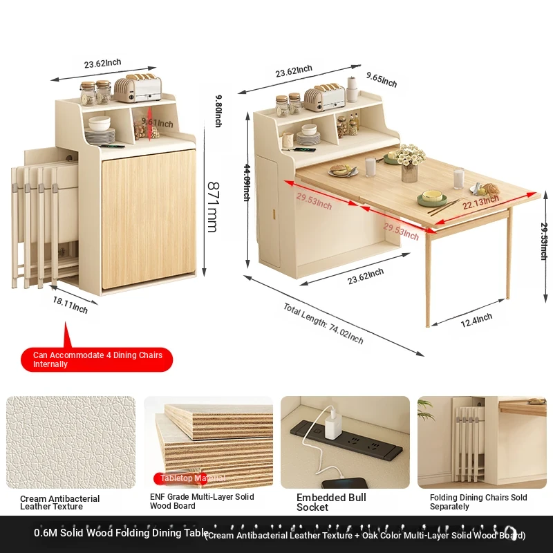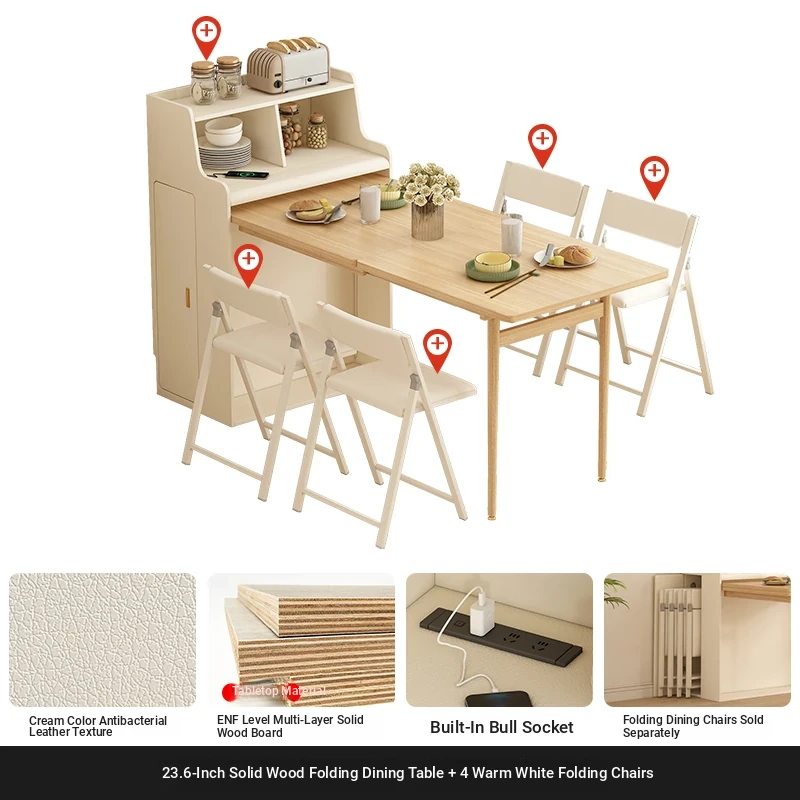 23.62 in solid wood Foldable table + warm white Foldable dining chair * 4