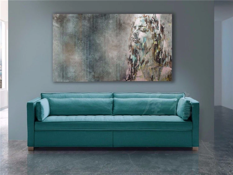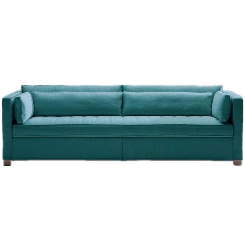 Italian Minimalist Modern Small Apartment Four-Seater Multi-Functional Peacock Blue Fabric Sofa Bed for Living Room Display