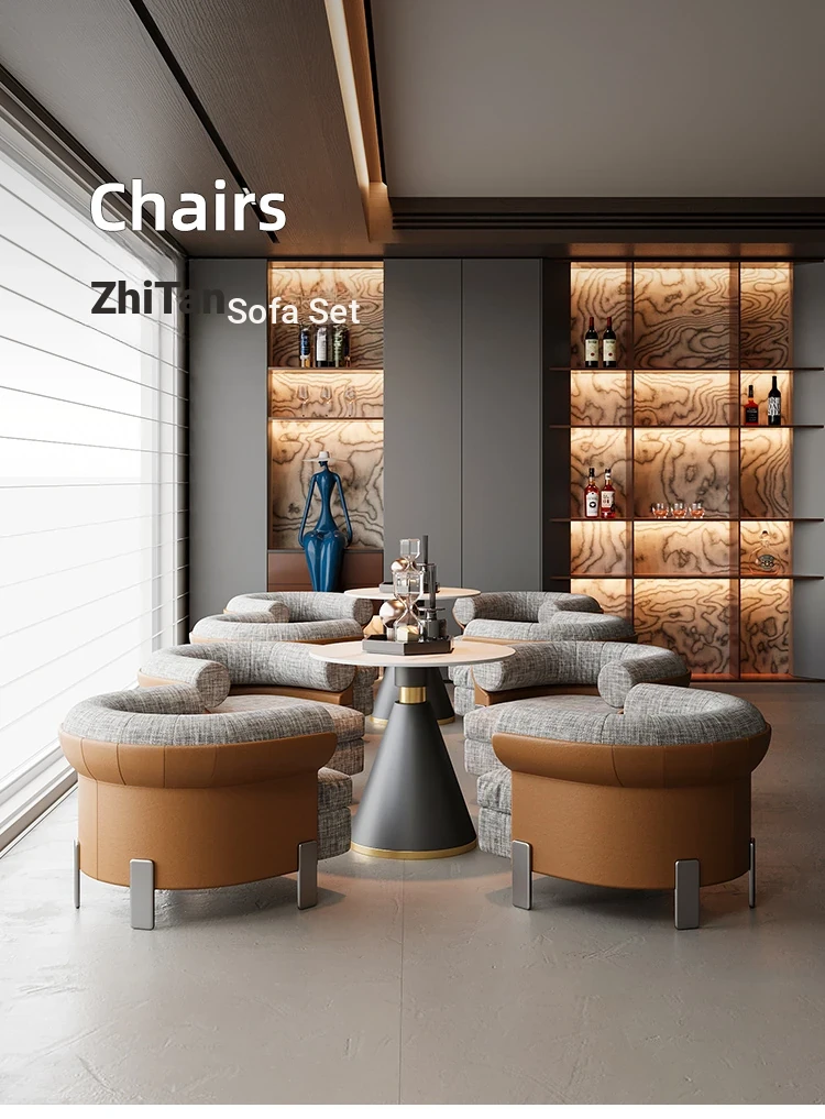 Italian Stylish Light Luxury Meeting Table and Chair Set - Perfect for Sales Offices, Lobbies, Beauty Salons, Hotel Reception Areas, and Tea Rooms. Elevate Your Space with Elegant Comfort!