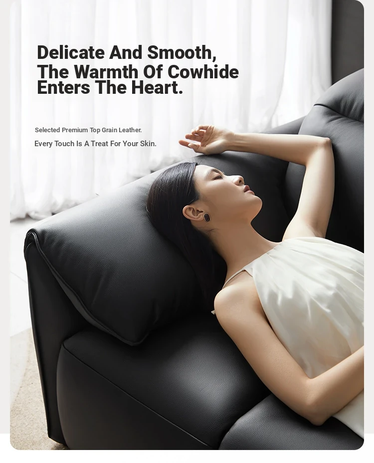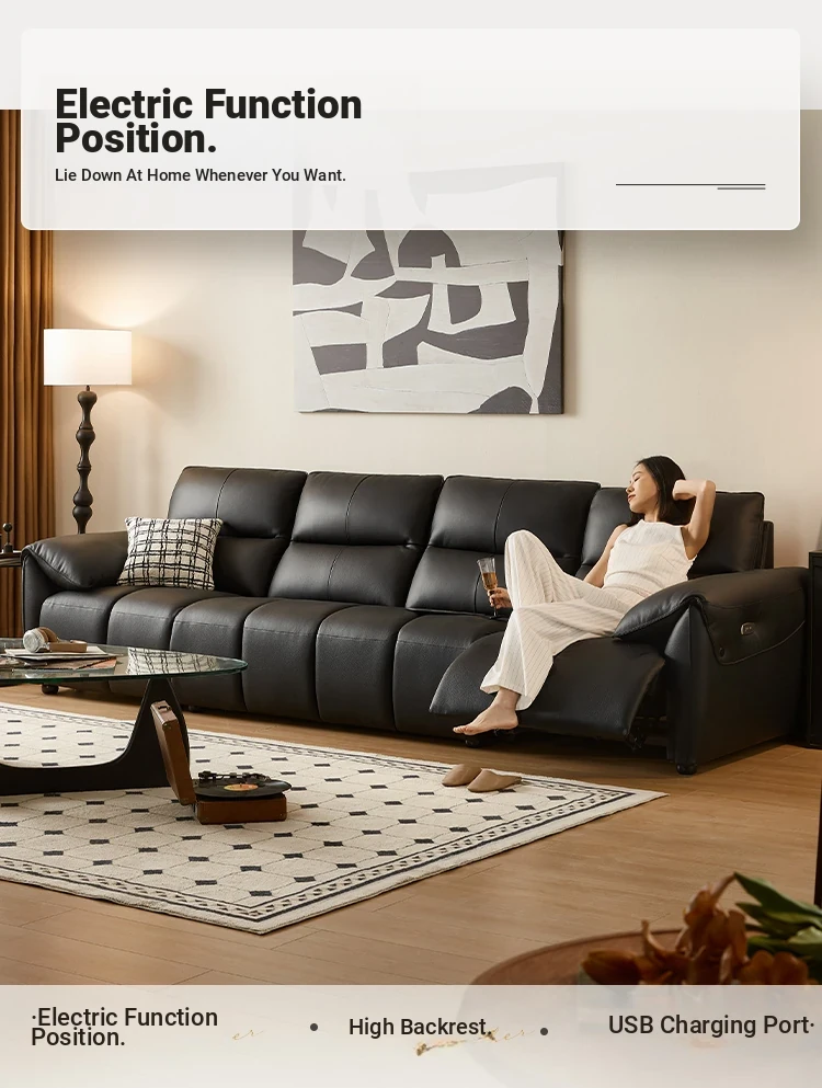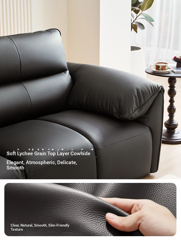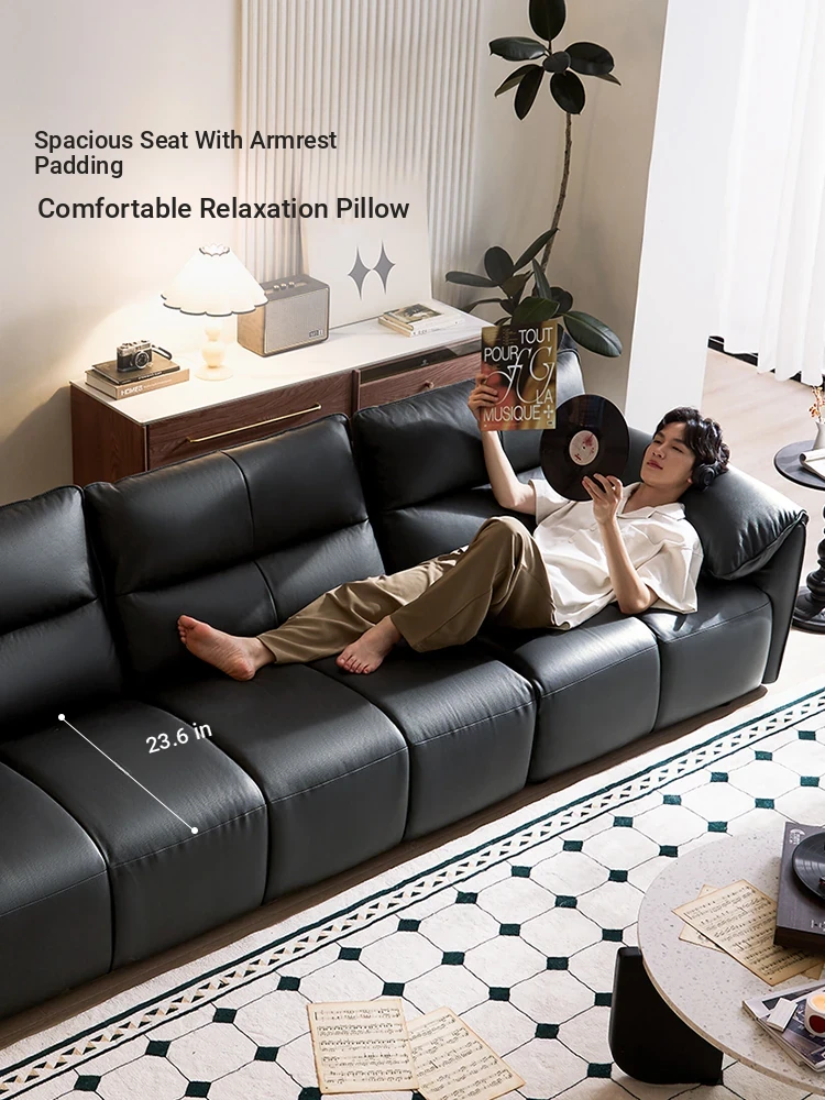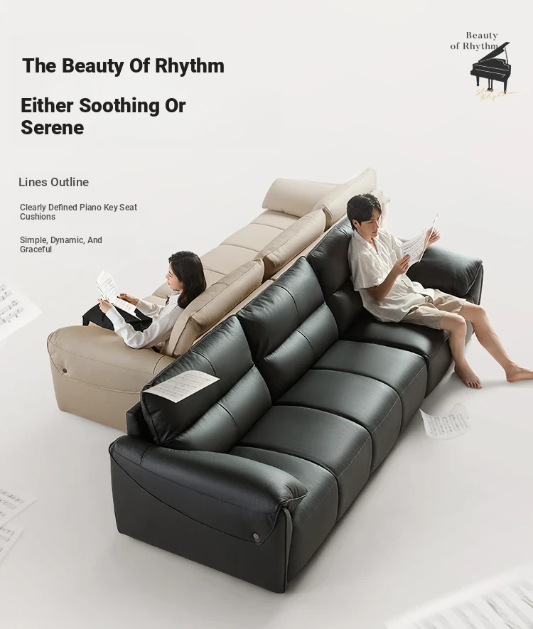 Lin's Home Black Genuine Leather Sofa - Stylish Piano Key Design for Living Room - 2024 New Arrival by Lin's Wood Industry