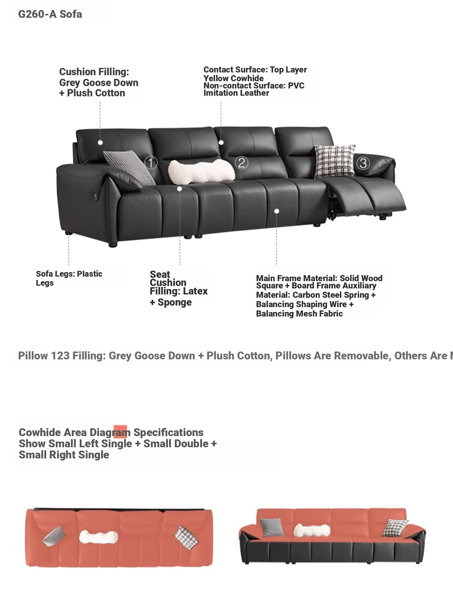 (3) [110.24 in | Black Brown] thickened top layer cowhide
