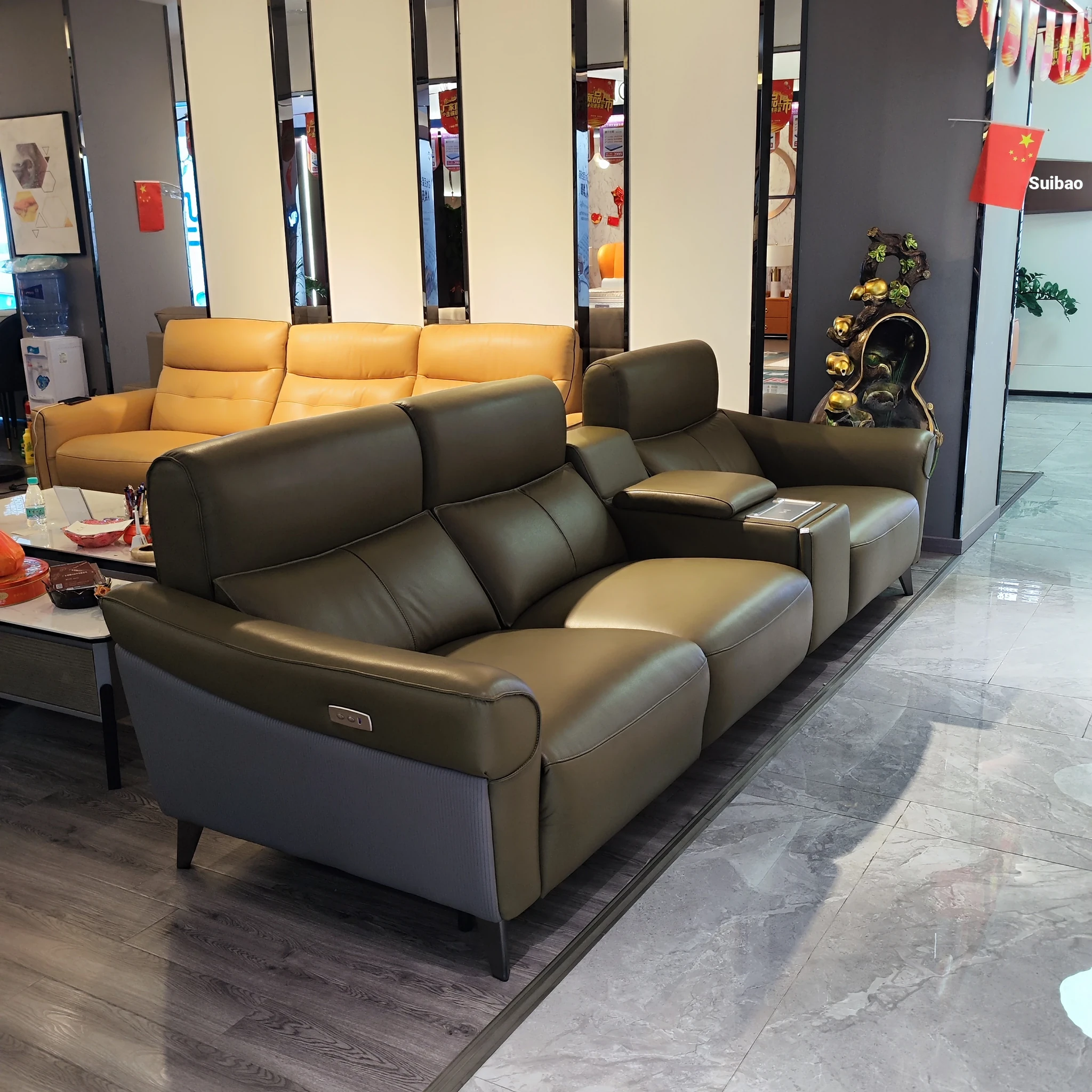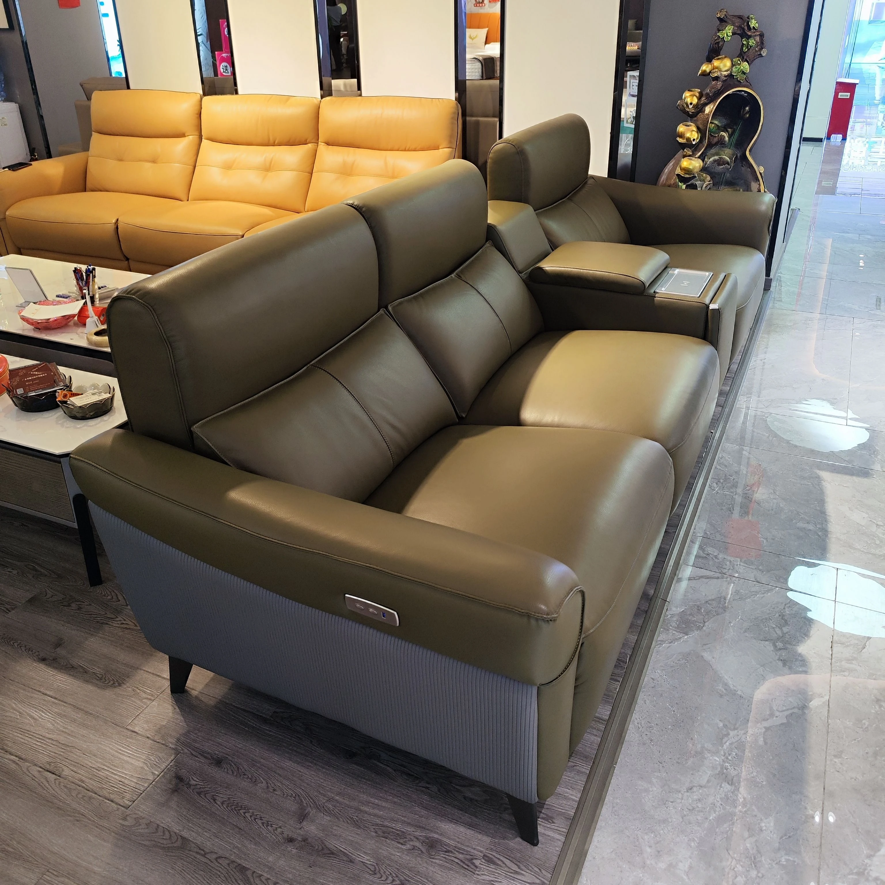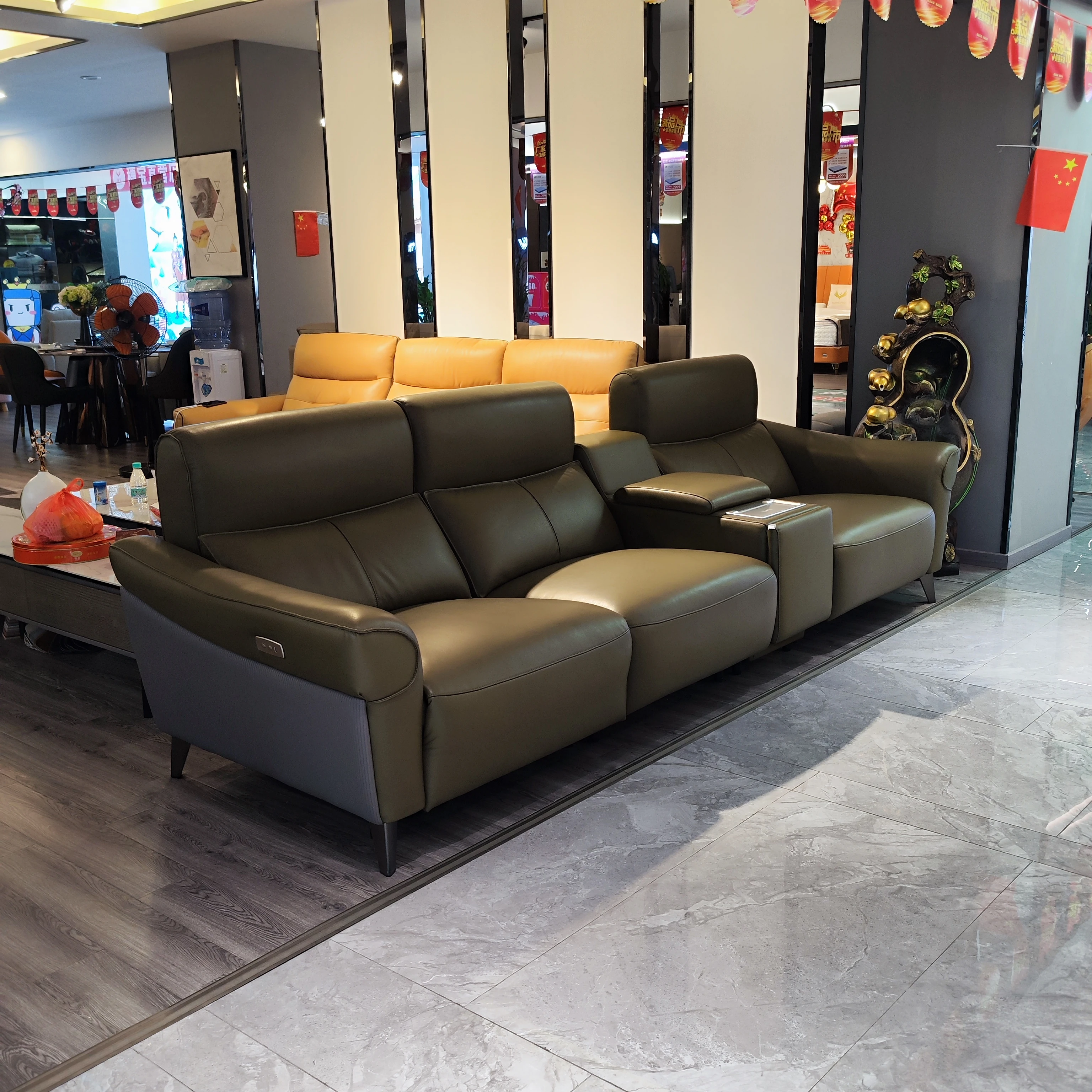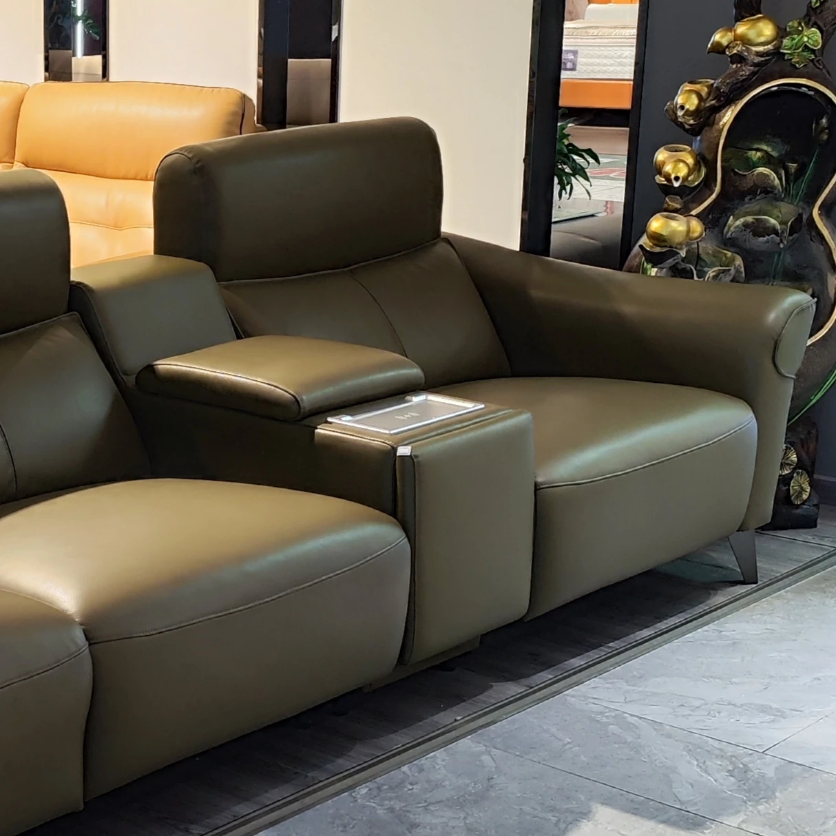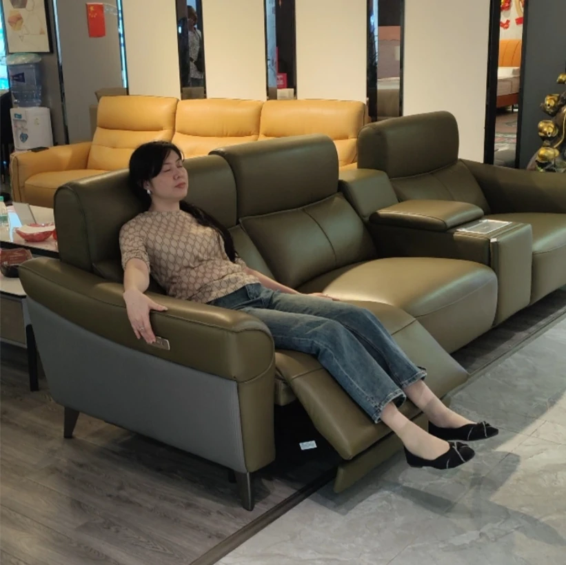 Luxury Italian Electric Leather Sofa with Adjustable Headrest and Leg Support - Perfect for Wall Placement, Export-Quality Design.
