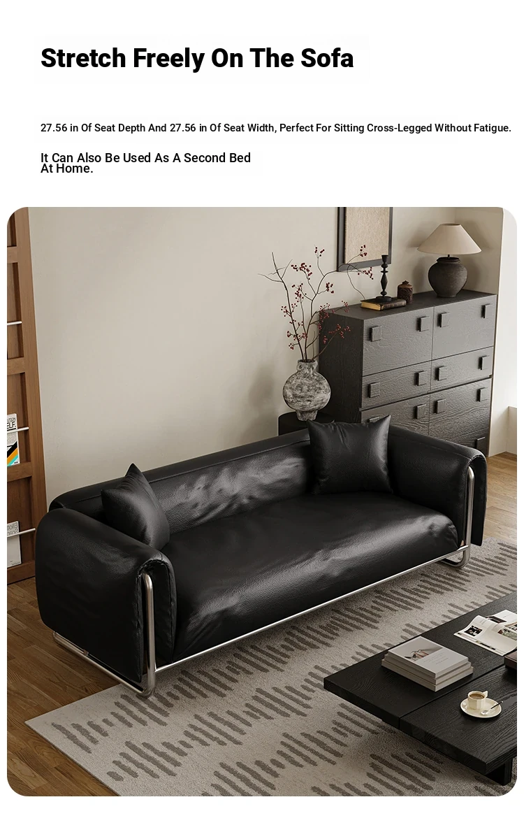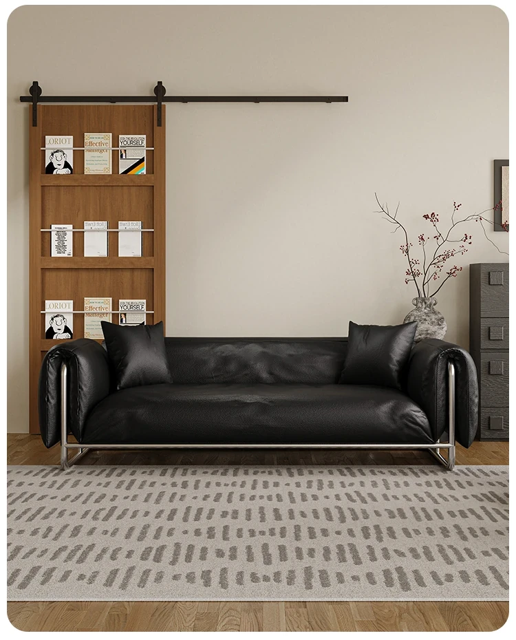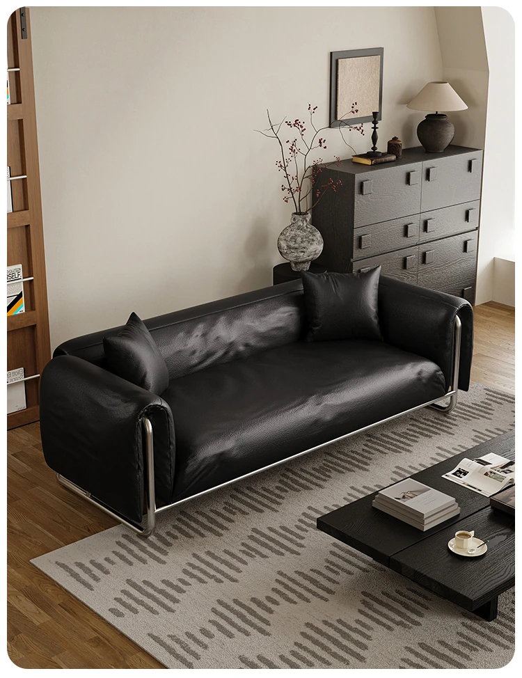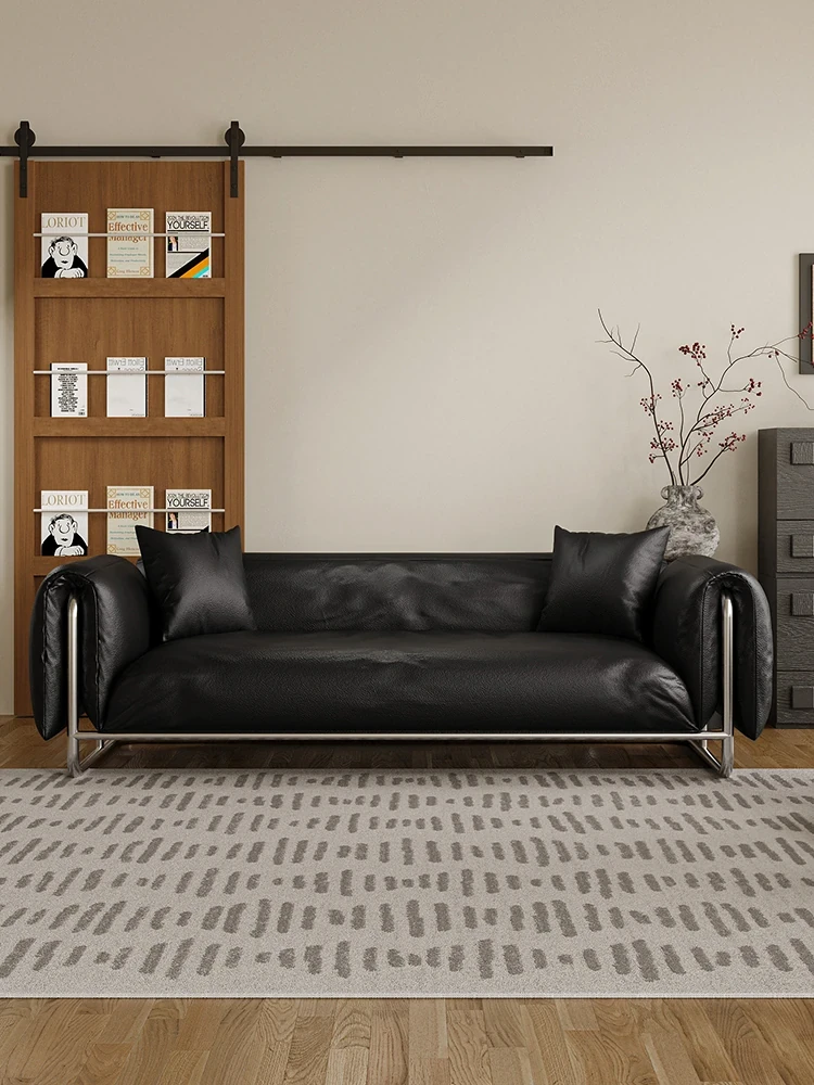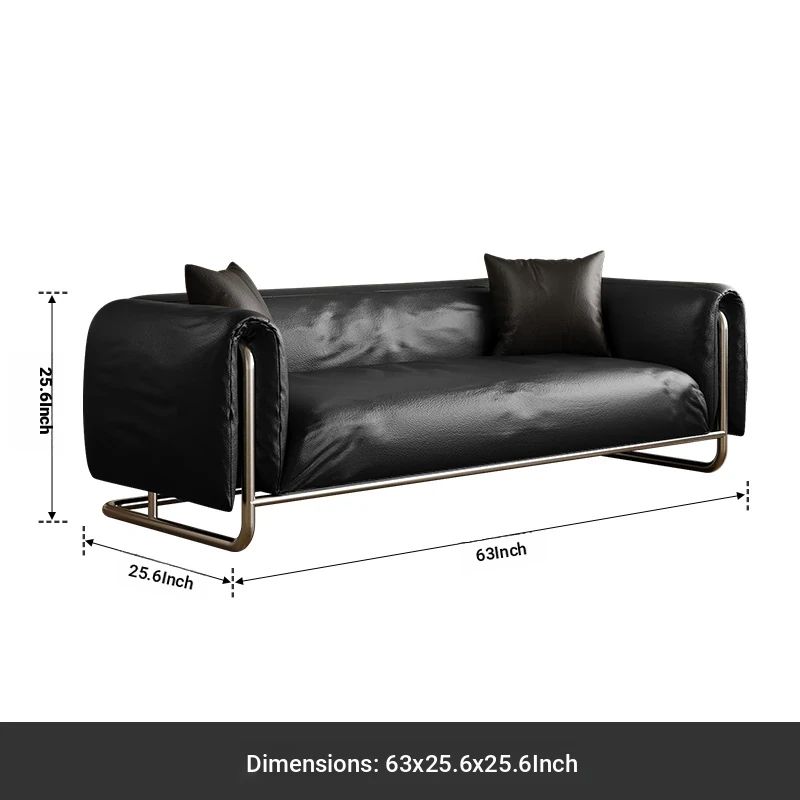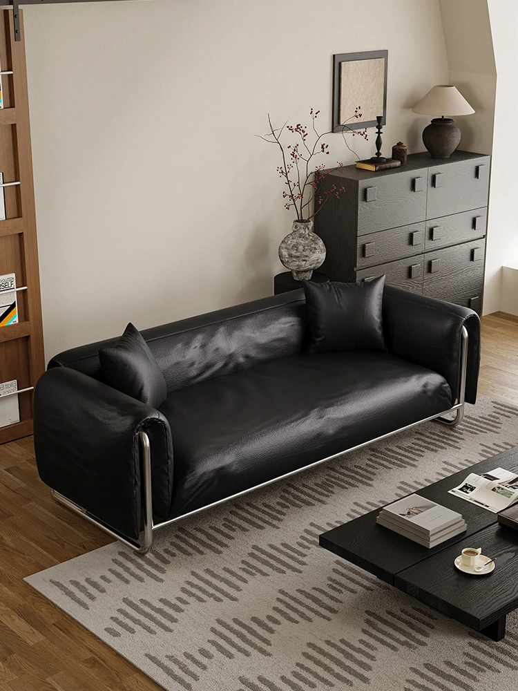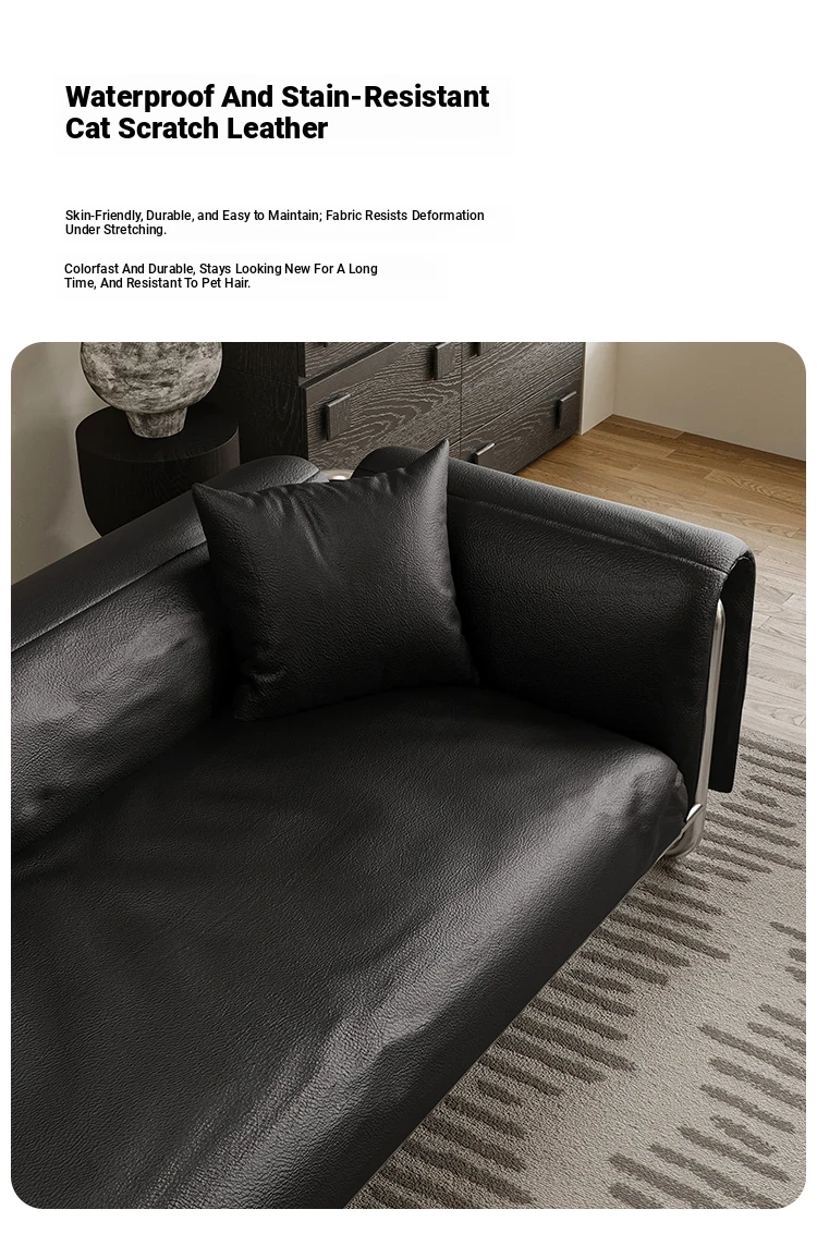 Mid-Century Modern Black Cat-Scratch Leather Sofa for Small Spaces - Stylish 3-Seat Sofa for Living Rooms, Hotels, and Offices
