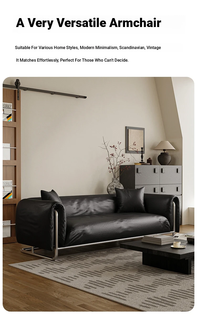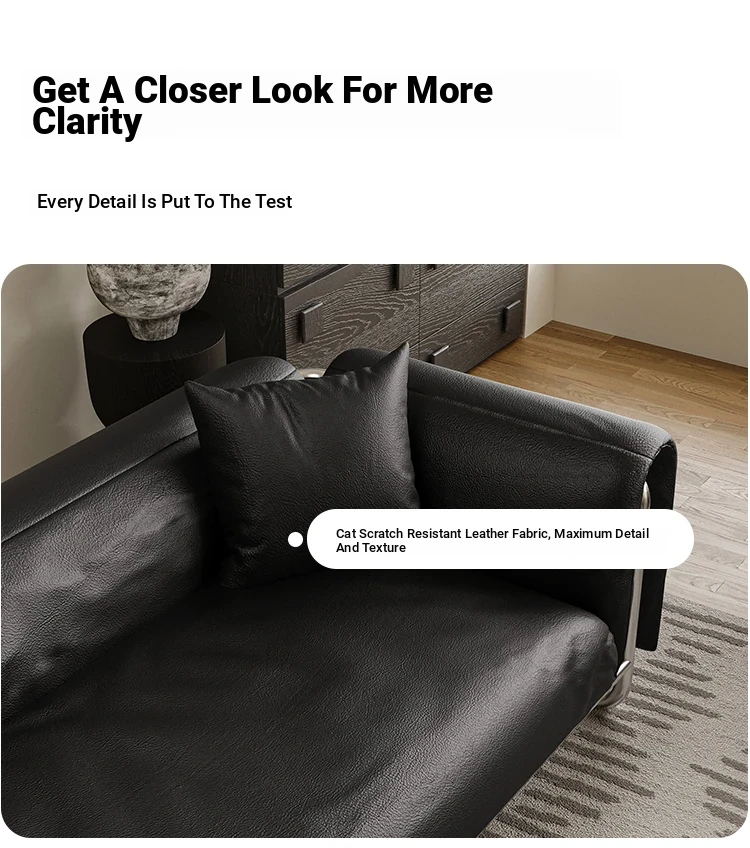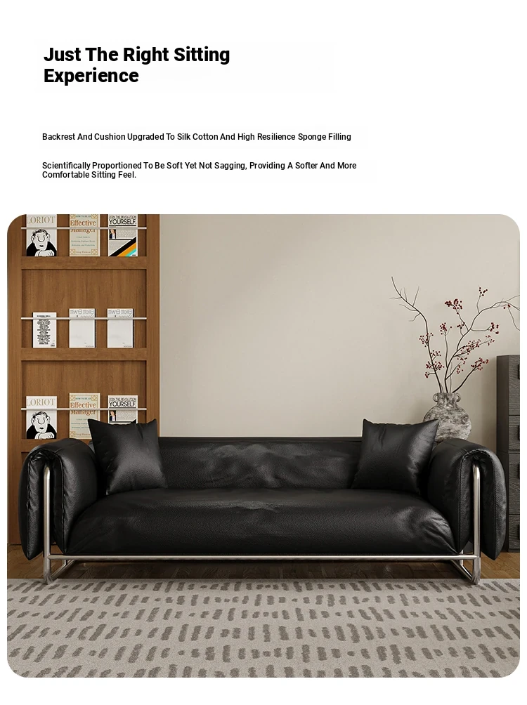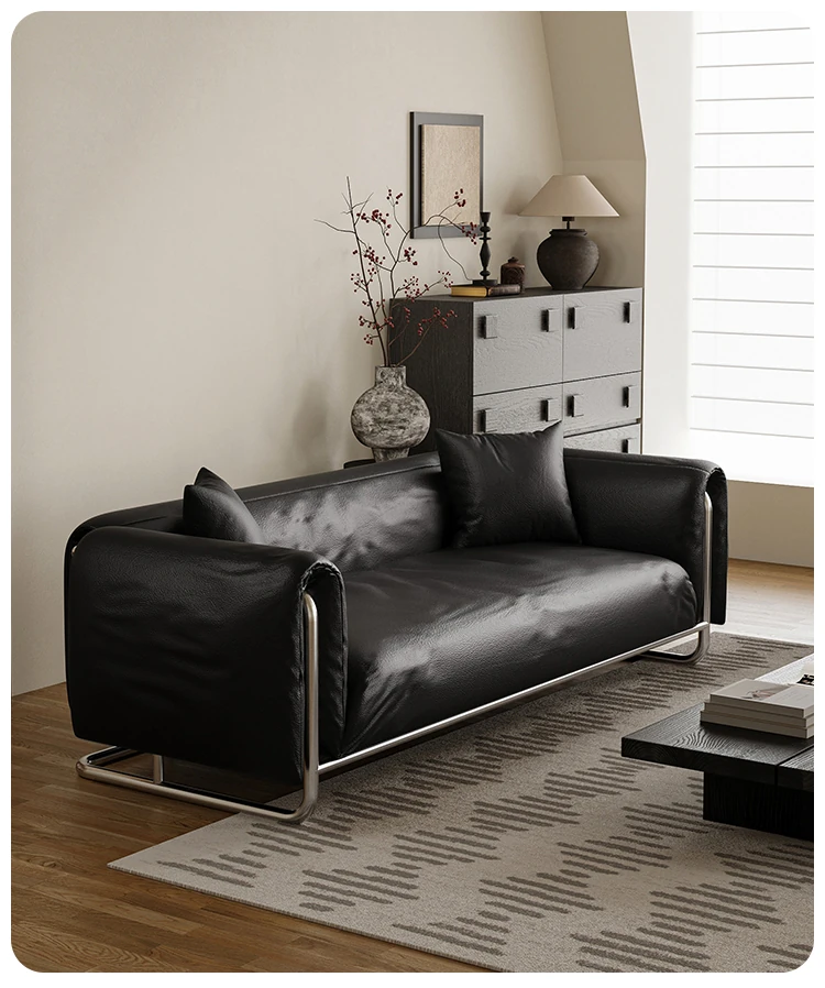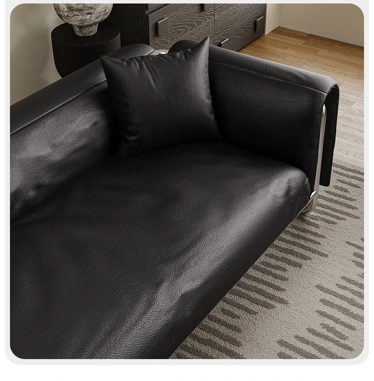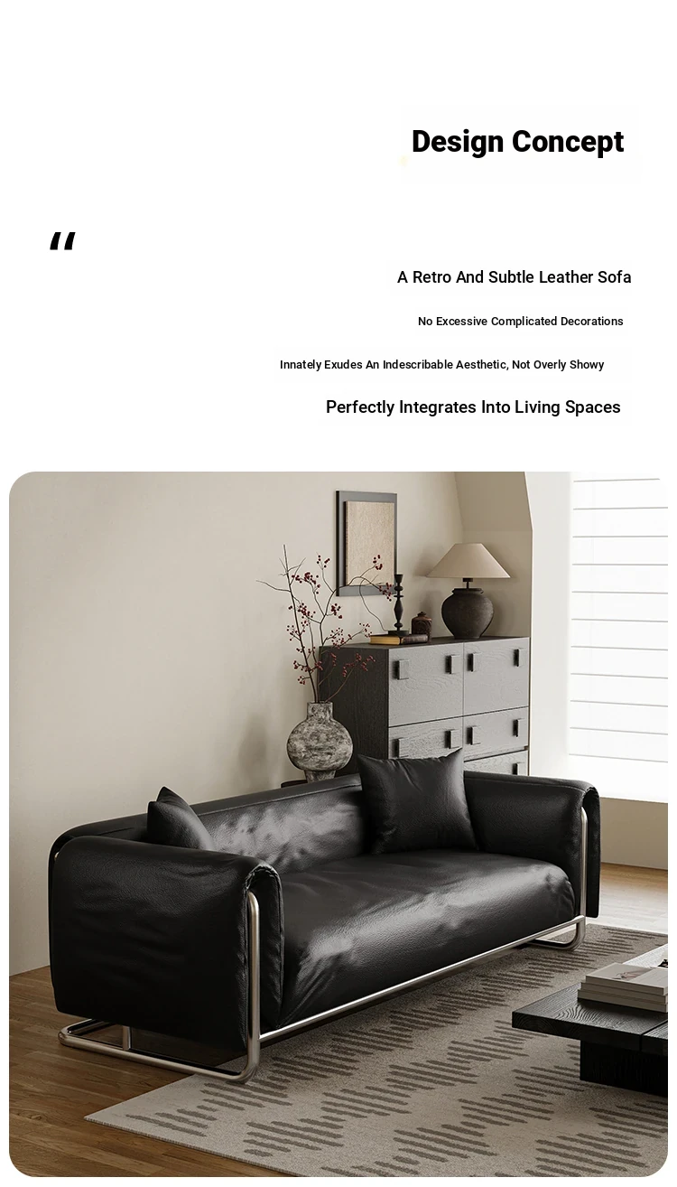 Mid-Century Modern Black Cat-Scratch Leather Sofa for Small Spaces - Stylish 3-Seat Sofa for Living Rooms, Hotels, and Offices