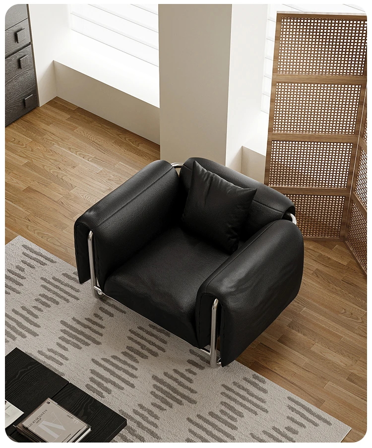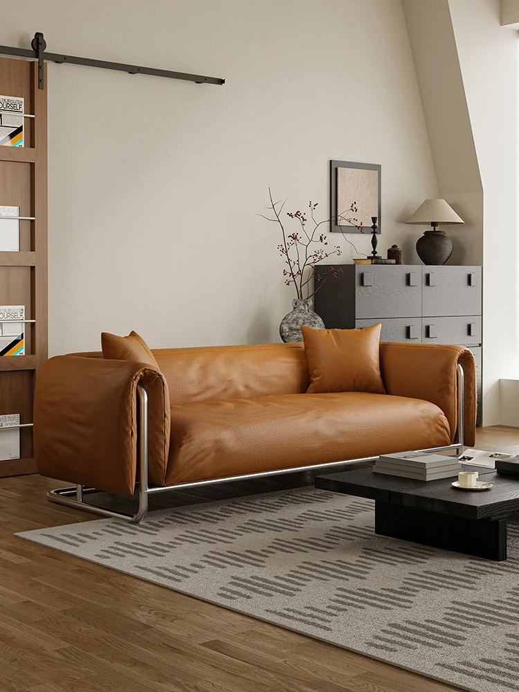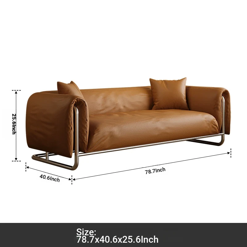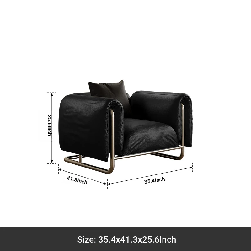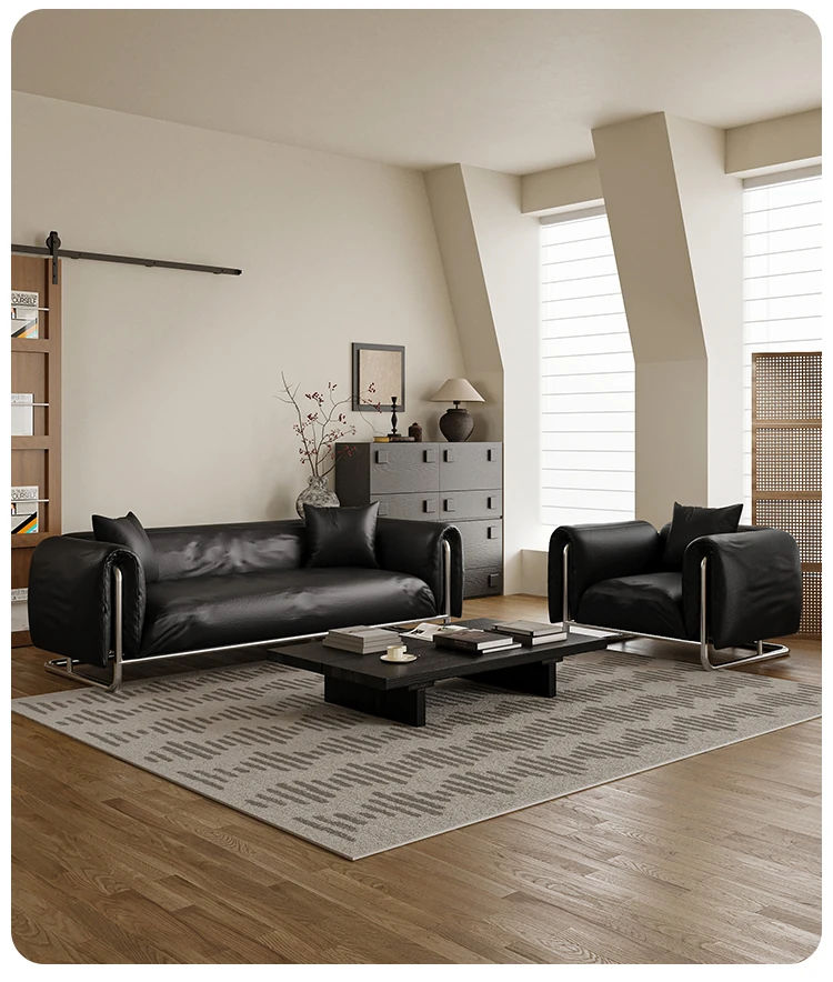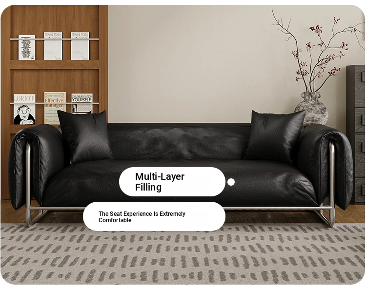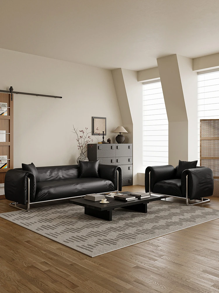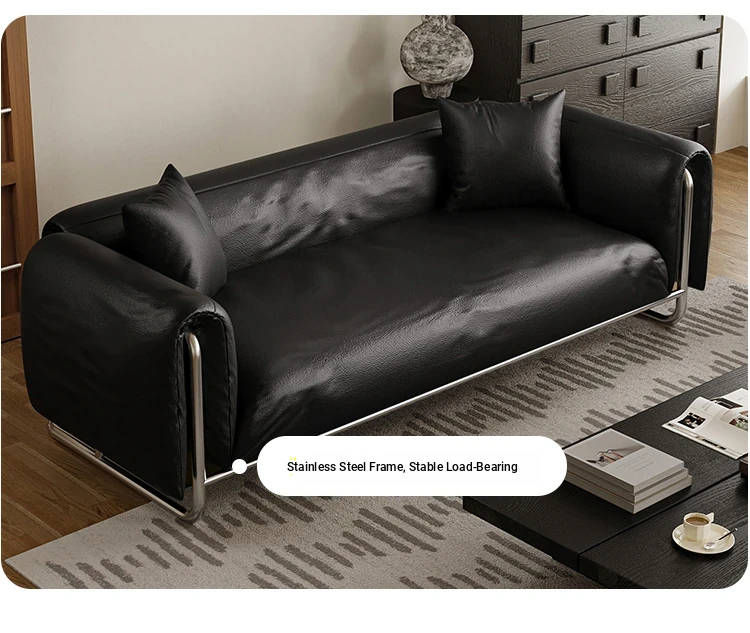 Mid-Century Modern Black Cat-Scratch Leather Sofa for Small Spaces - Stylish 3-Seat Sofa for Living Rooms, Hotels, and Offices