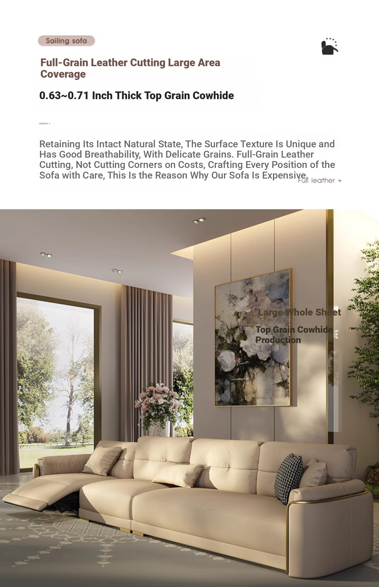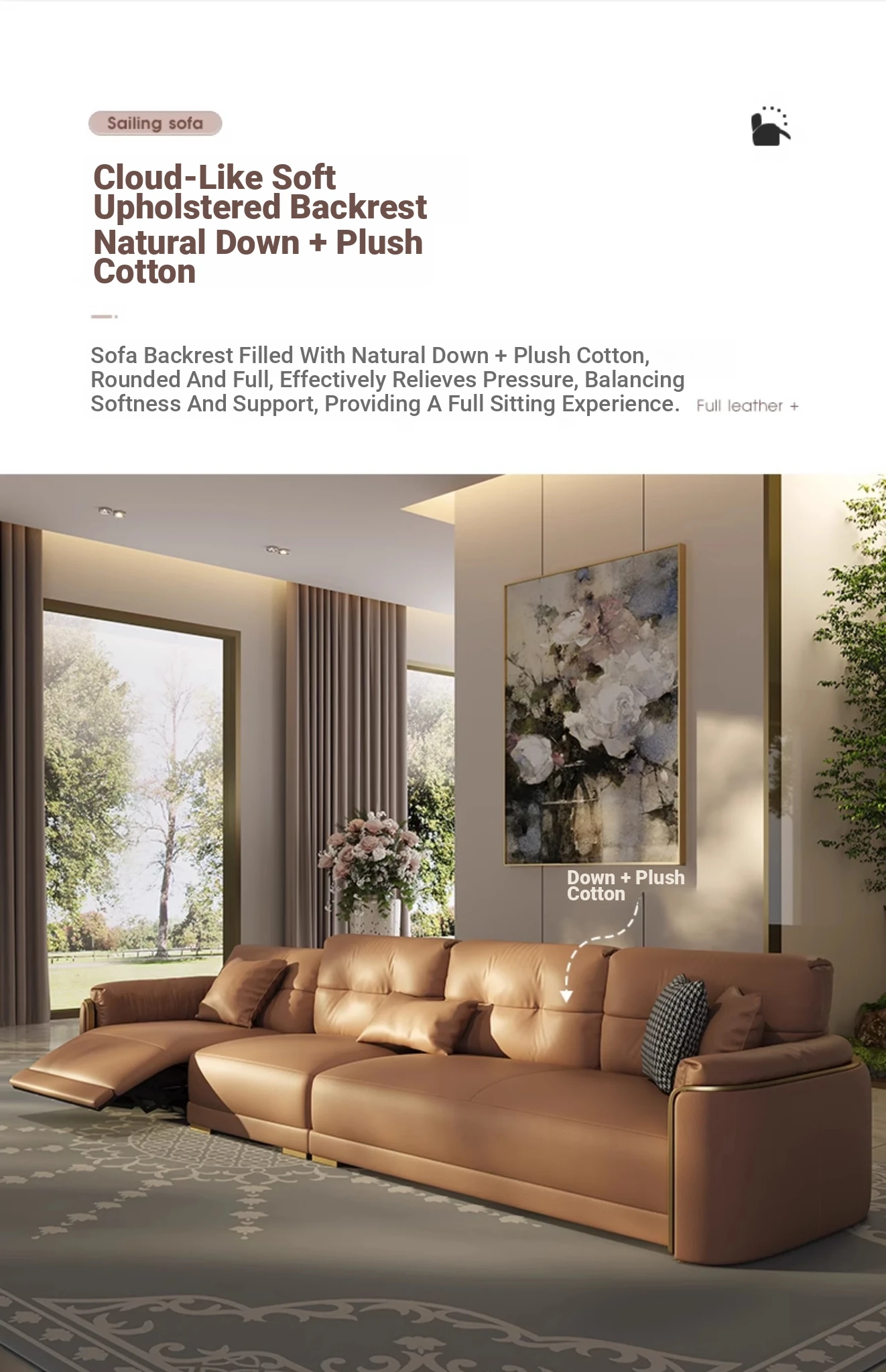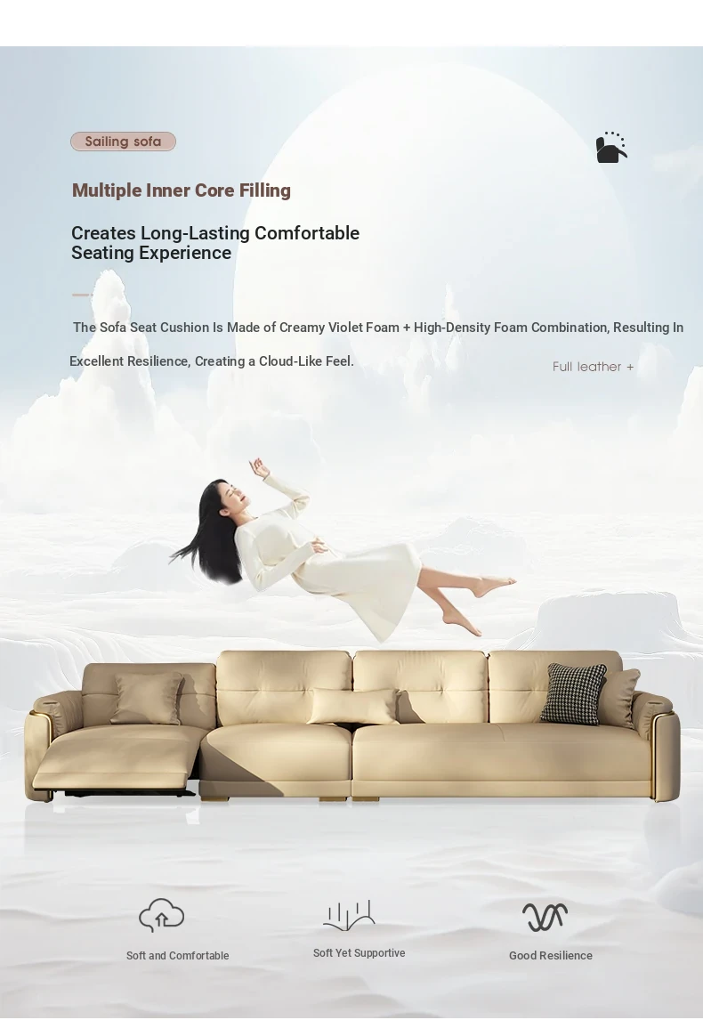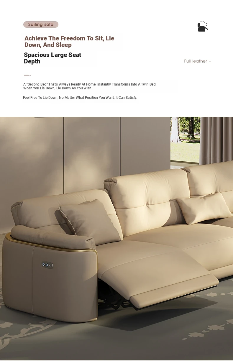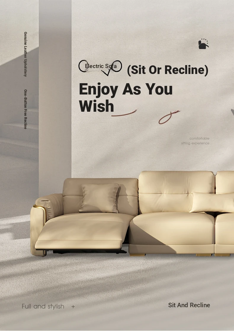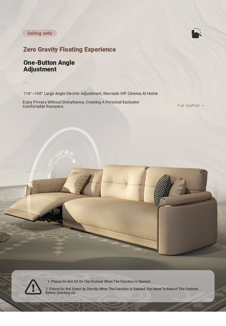 Modern Luxury Electric Reclining Sofa with Adjustable Height - Zero Wall Villa Style, Multi-functional Design, Made of Top Layer Genuine Leather, Simple and Elegant.