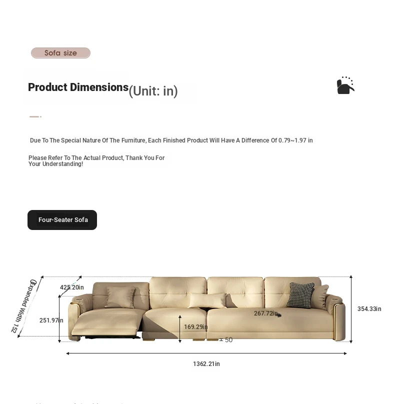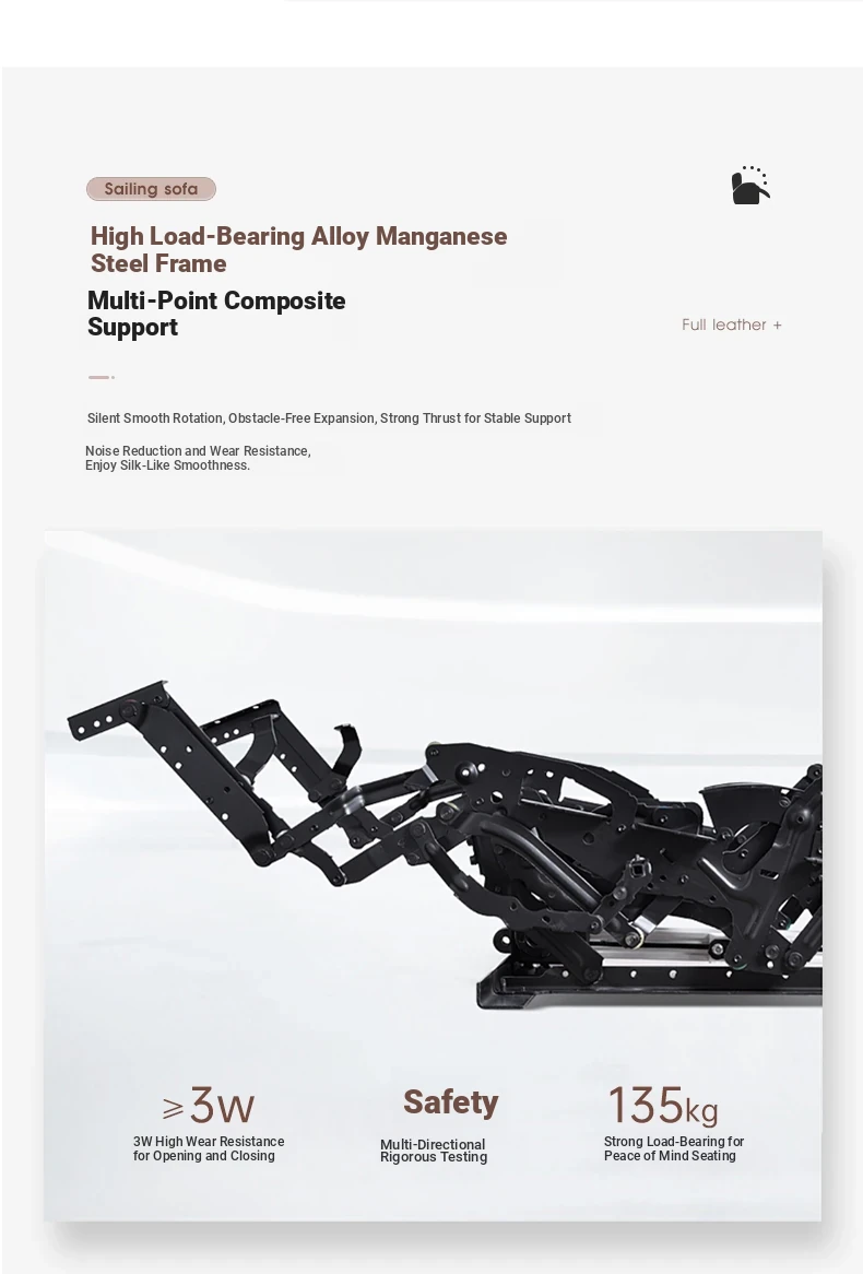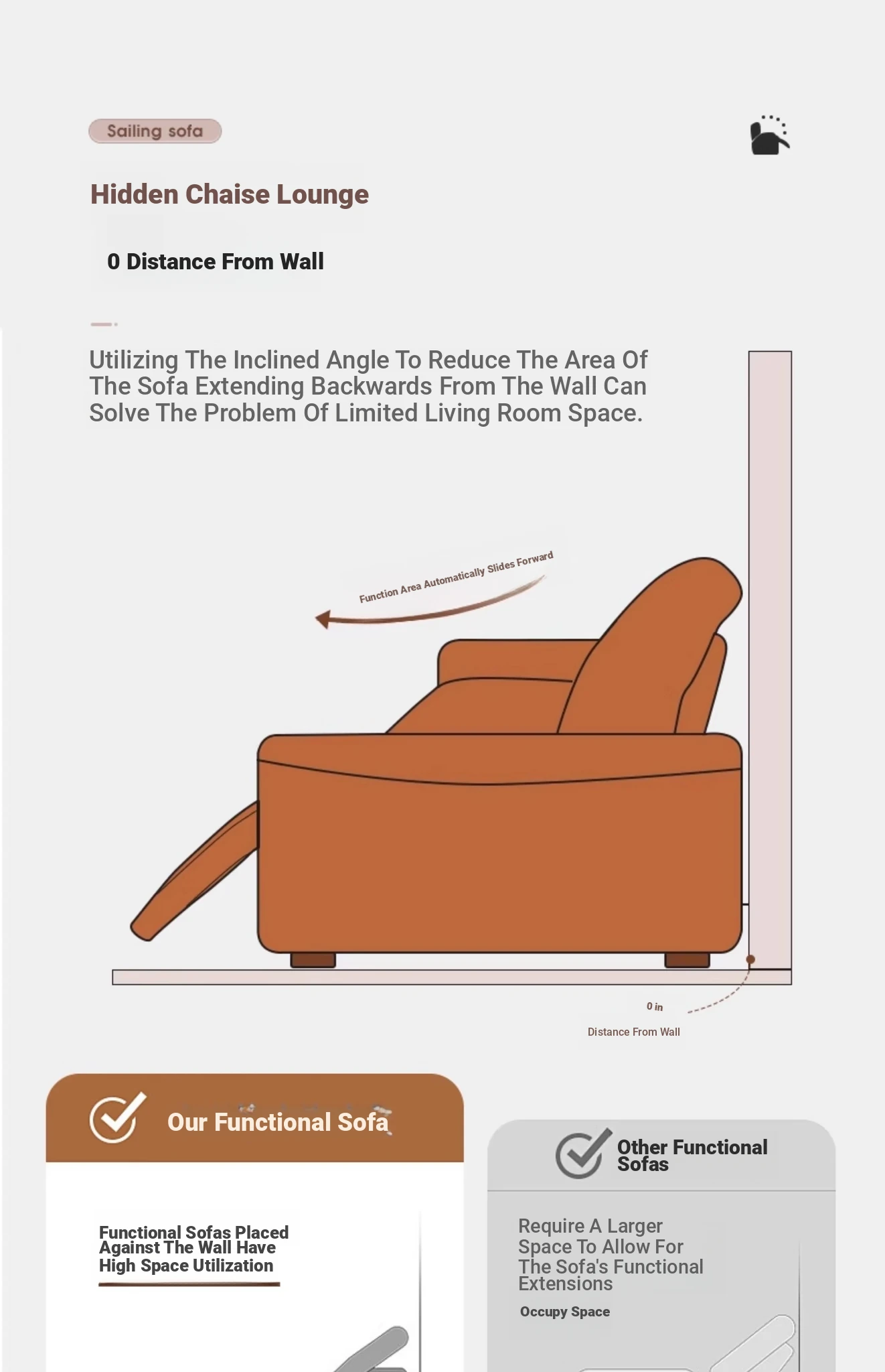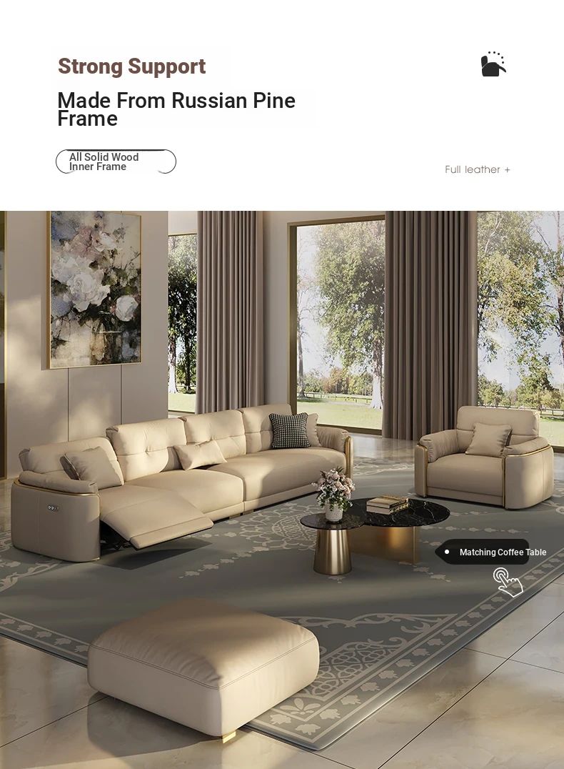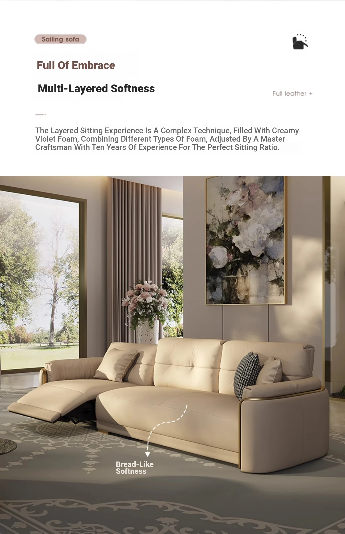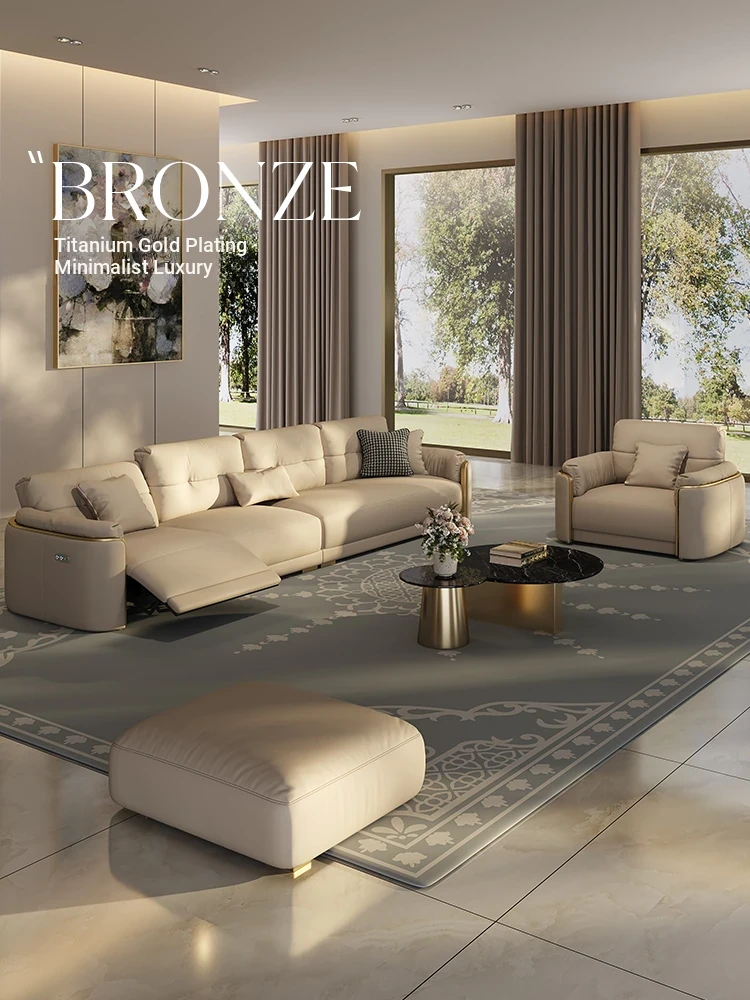 Modern Luxury Electric Reclining Sofa with Adjustable Height - Zero Wall Villa Style, Multi-functional Design, Made of Top Layer Genuine Leather, Simple and Elegant.