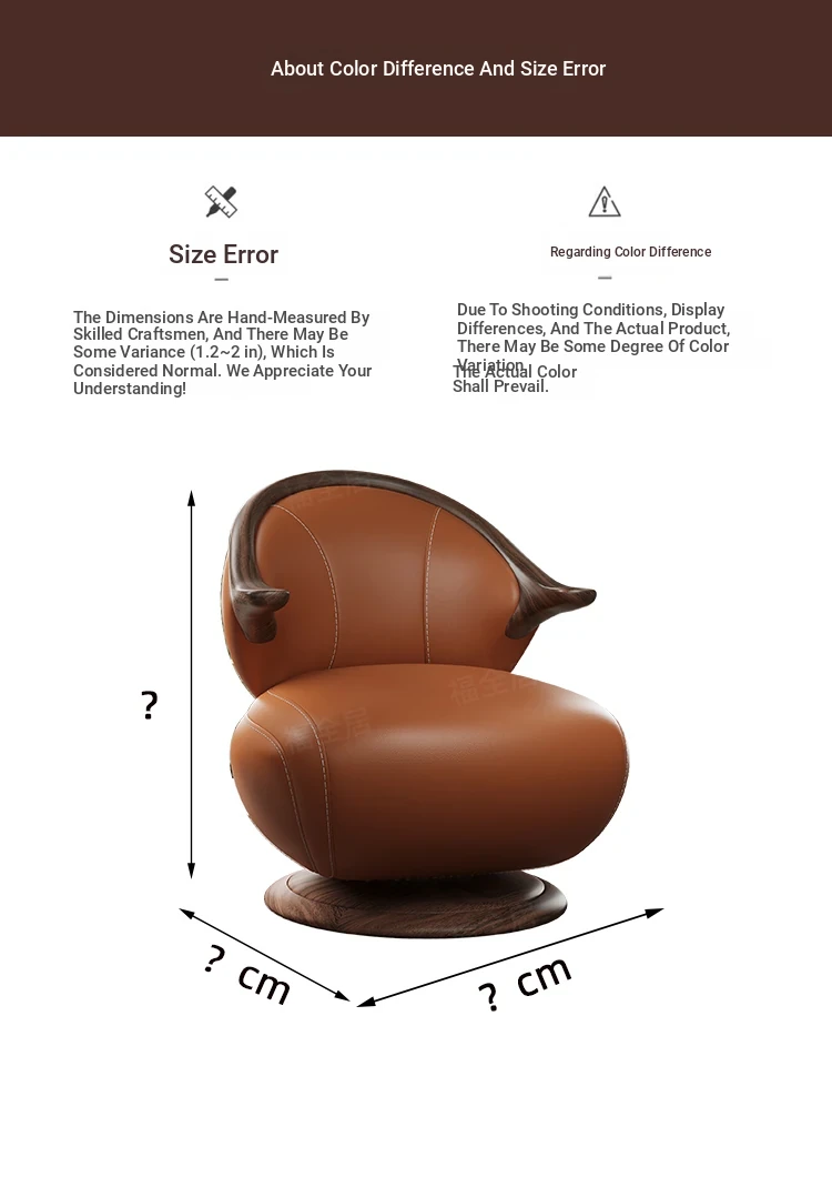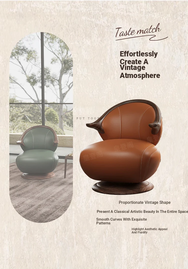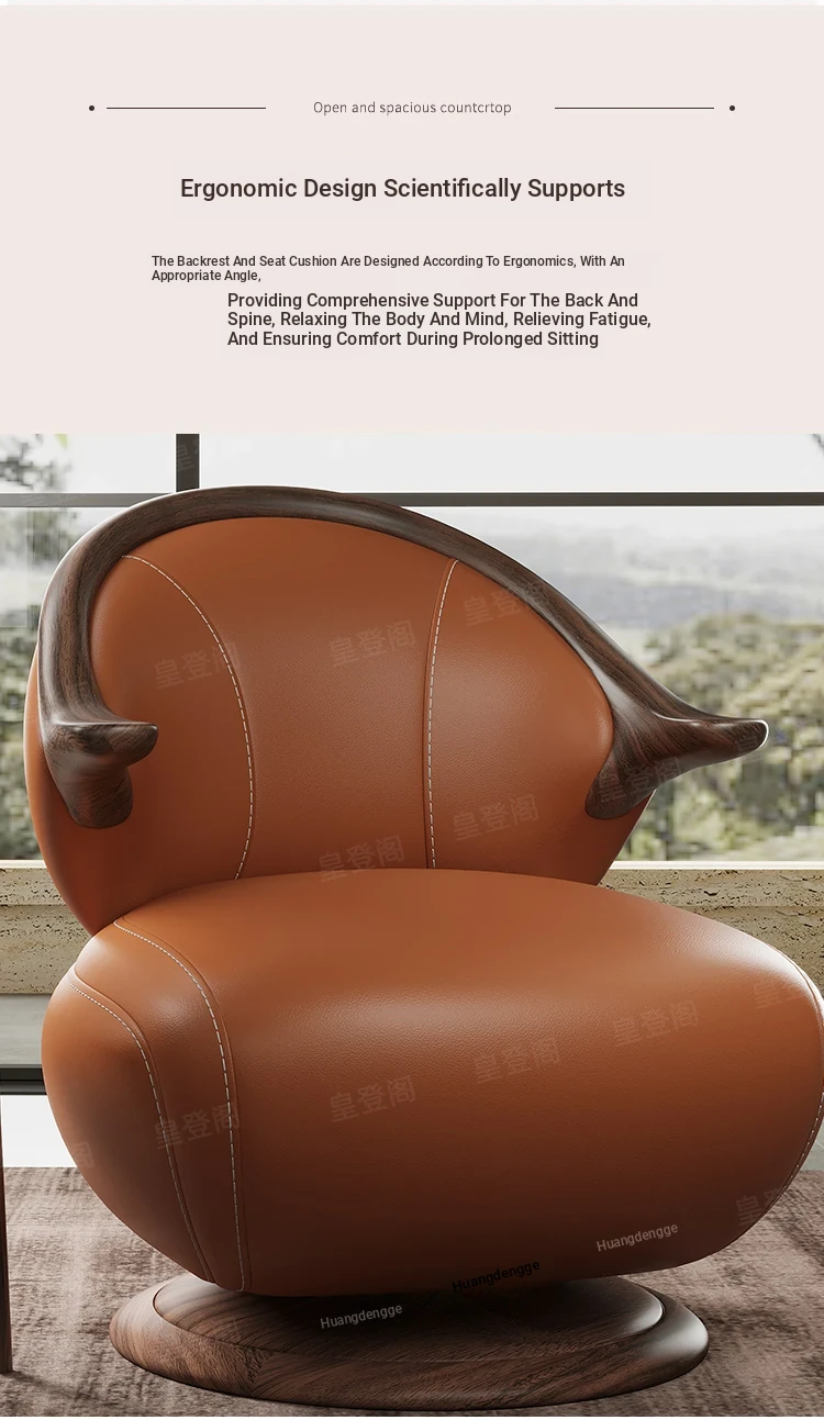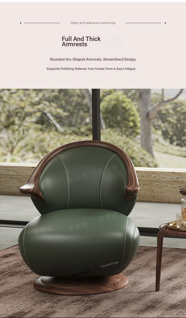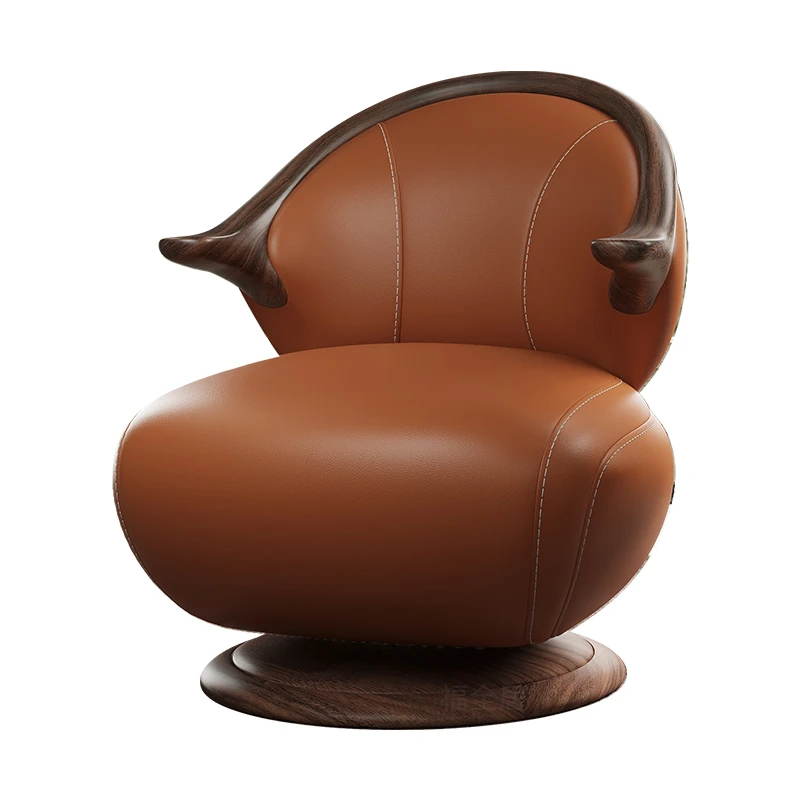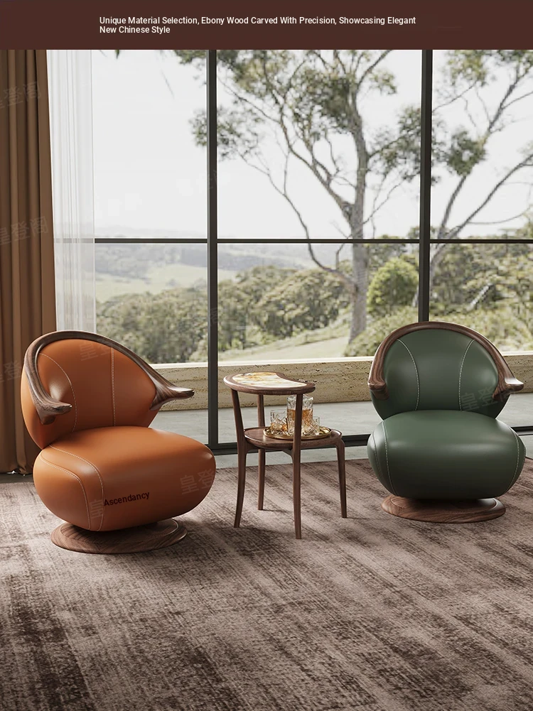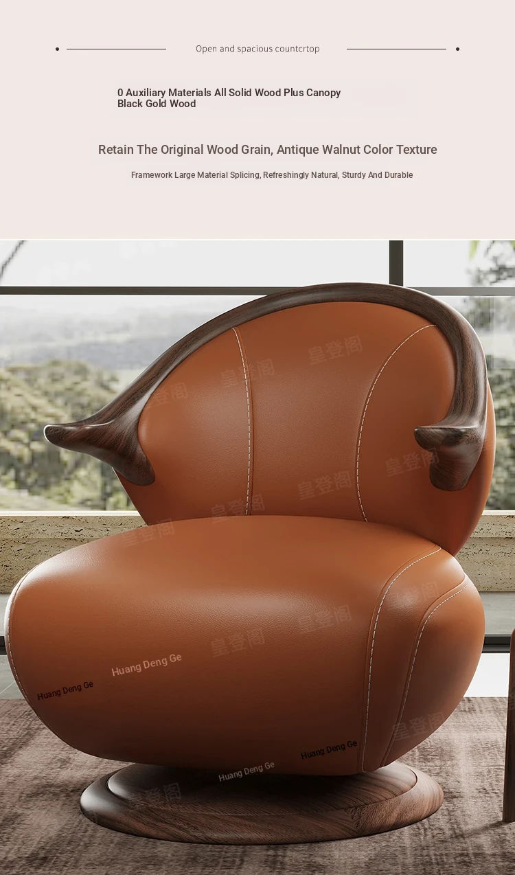 Modern Minimalist Black Walnut Solid Wood Genuine Leather Swivel Armchair - Stylish and Comfortable for Your Living Room, Perfect for Relaxation with Premium Cowhide Upholstery.