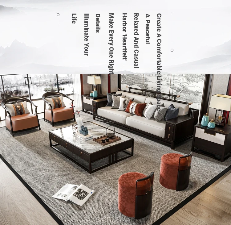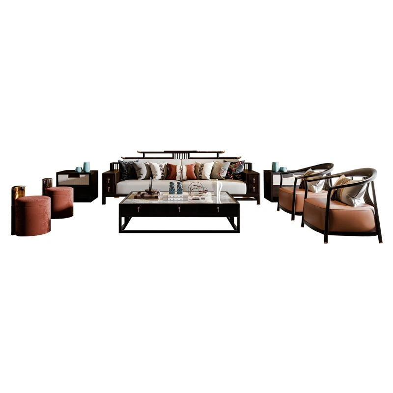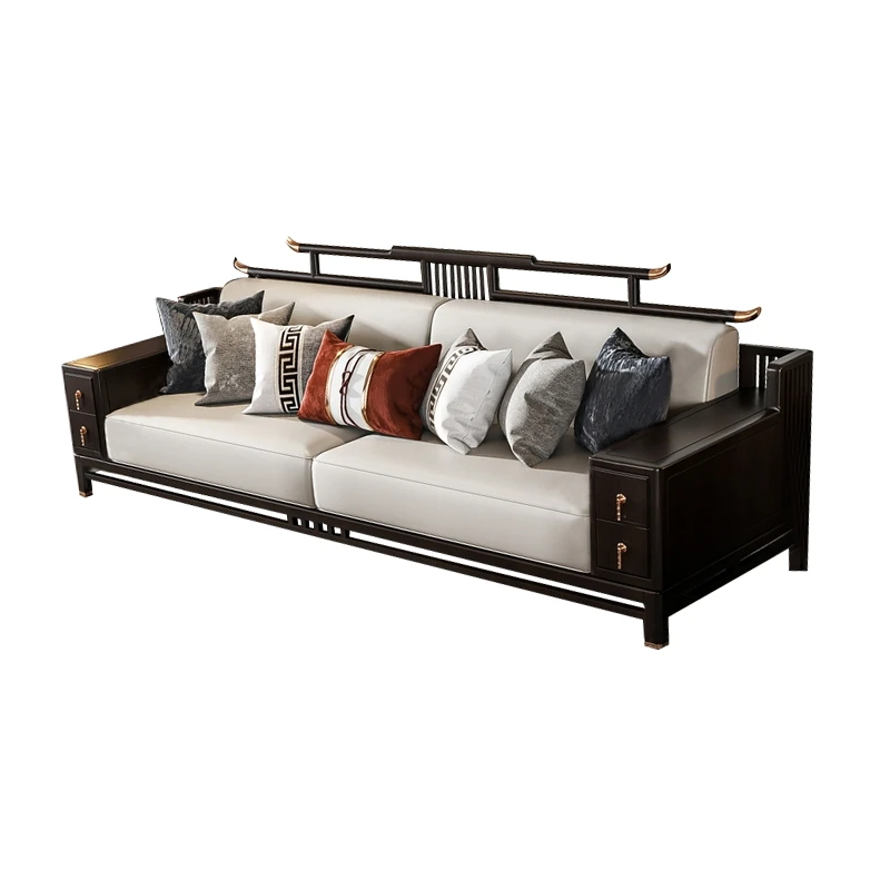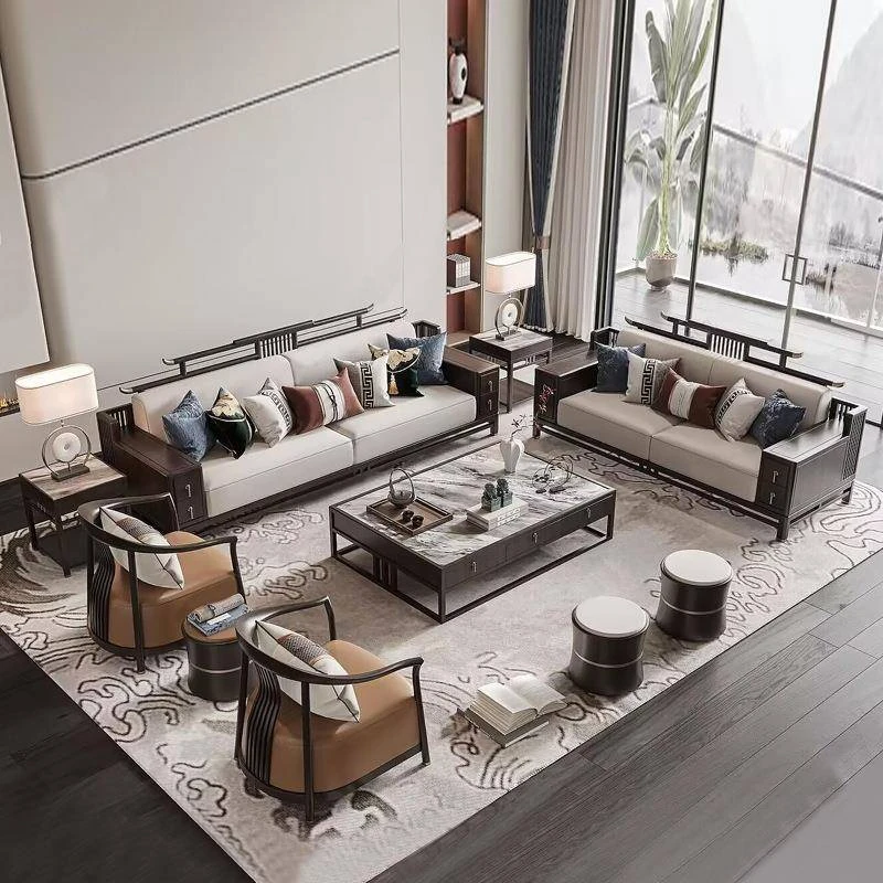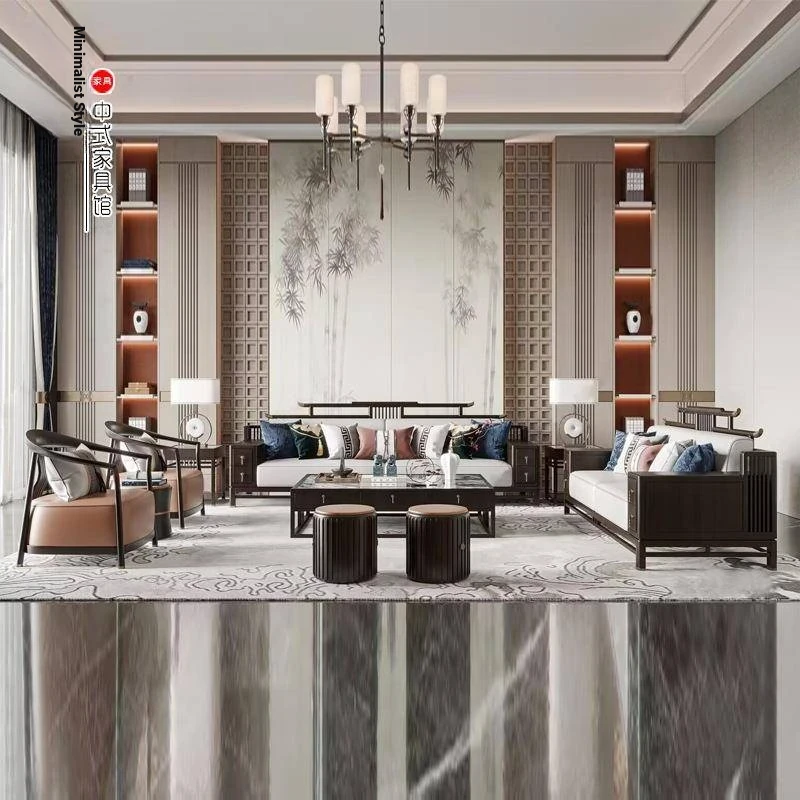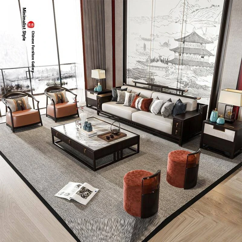 Modern Minimalist New Chinese Style Sofa Set - Premium Ash Wood Furniture for Spacious Villas - Stylish Solid Wood Sofa for Contemporary Living Rooms