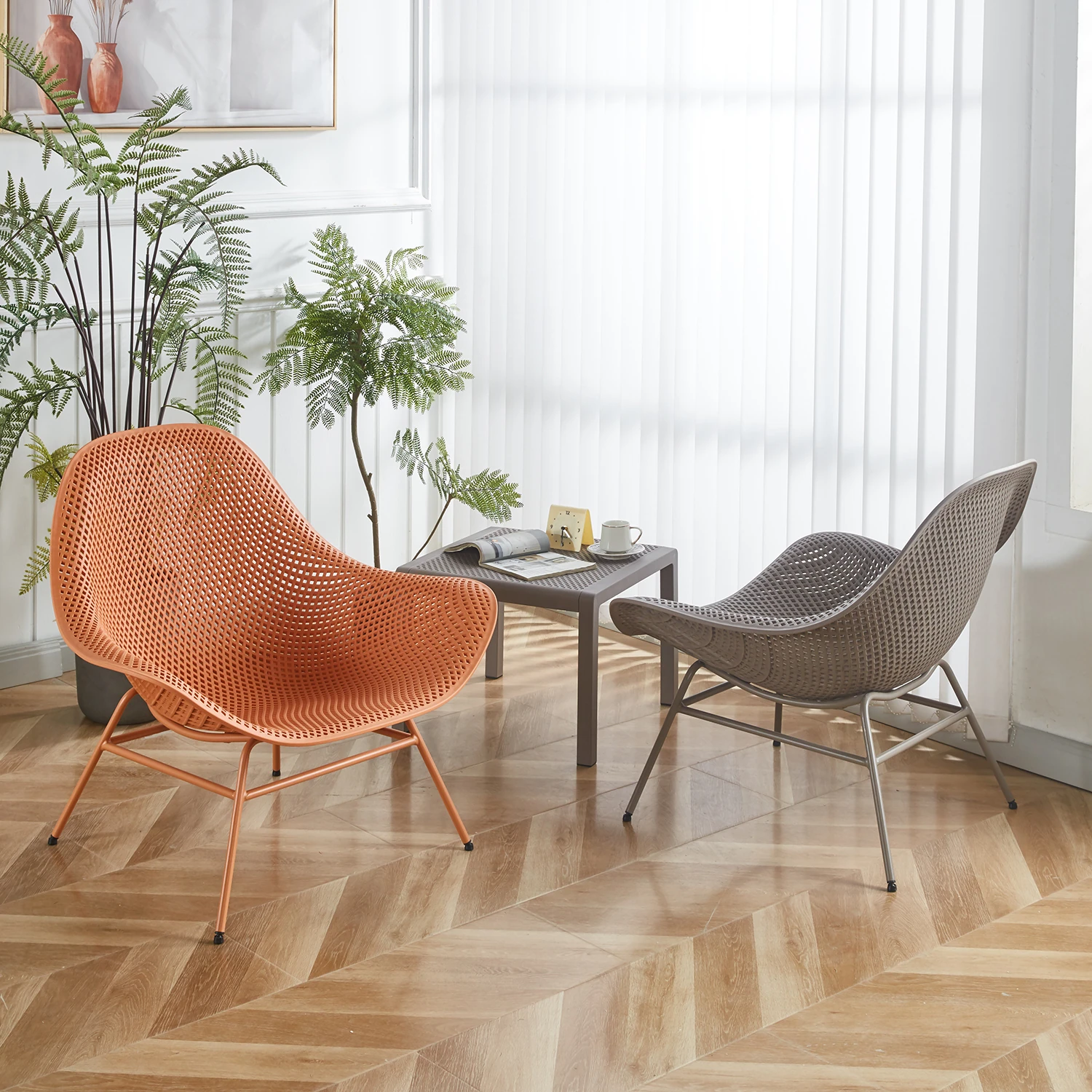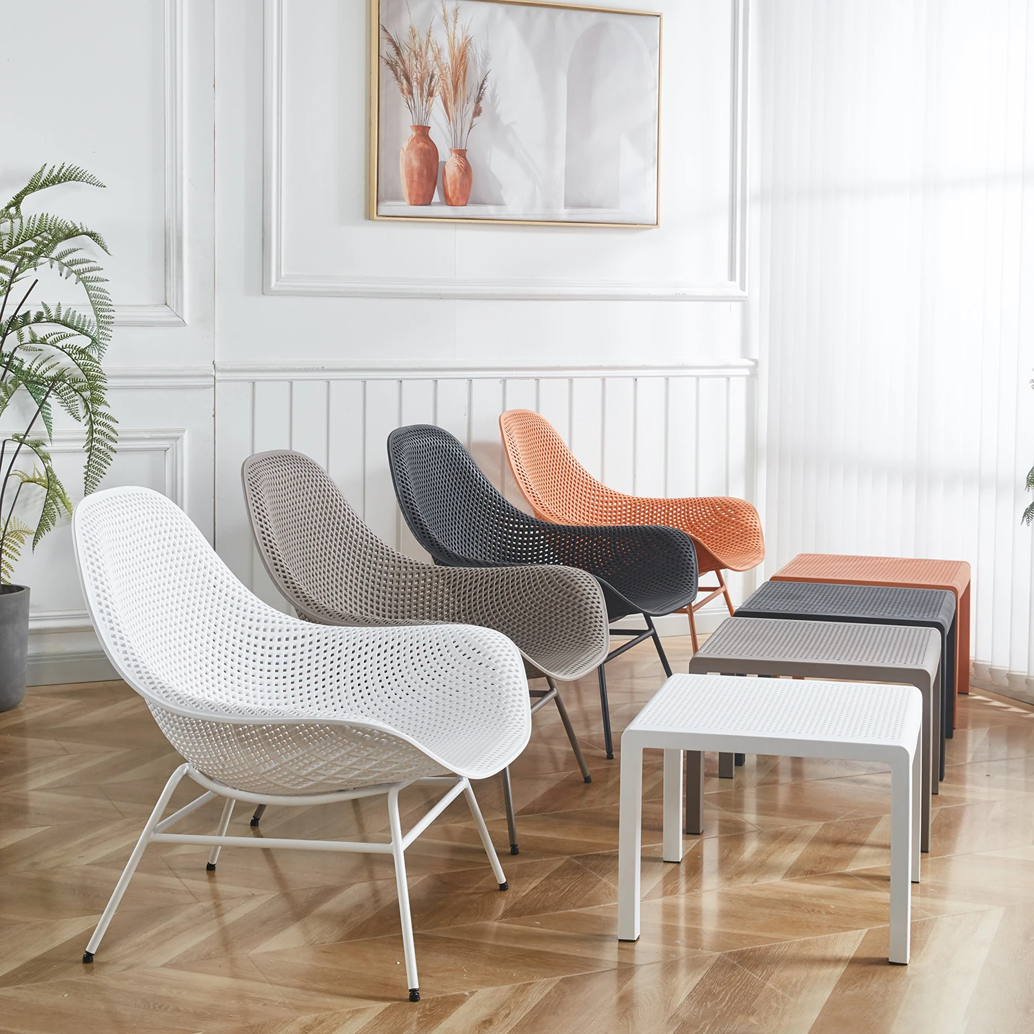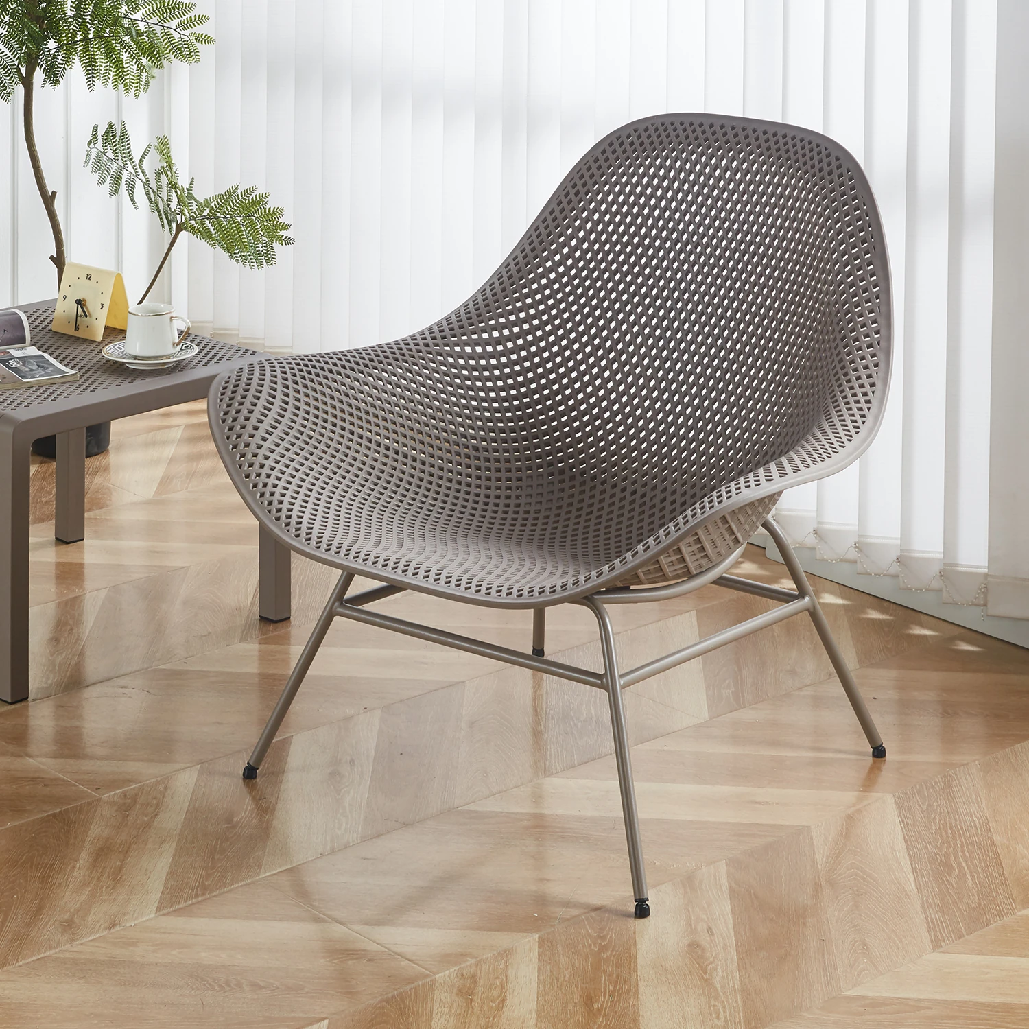 Modern Nordic Outdoor Lounge Chair - Eco-Friendly Plastic Single Sofa for Balcony and Living Room, Stylish Minimalist Design