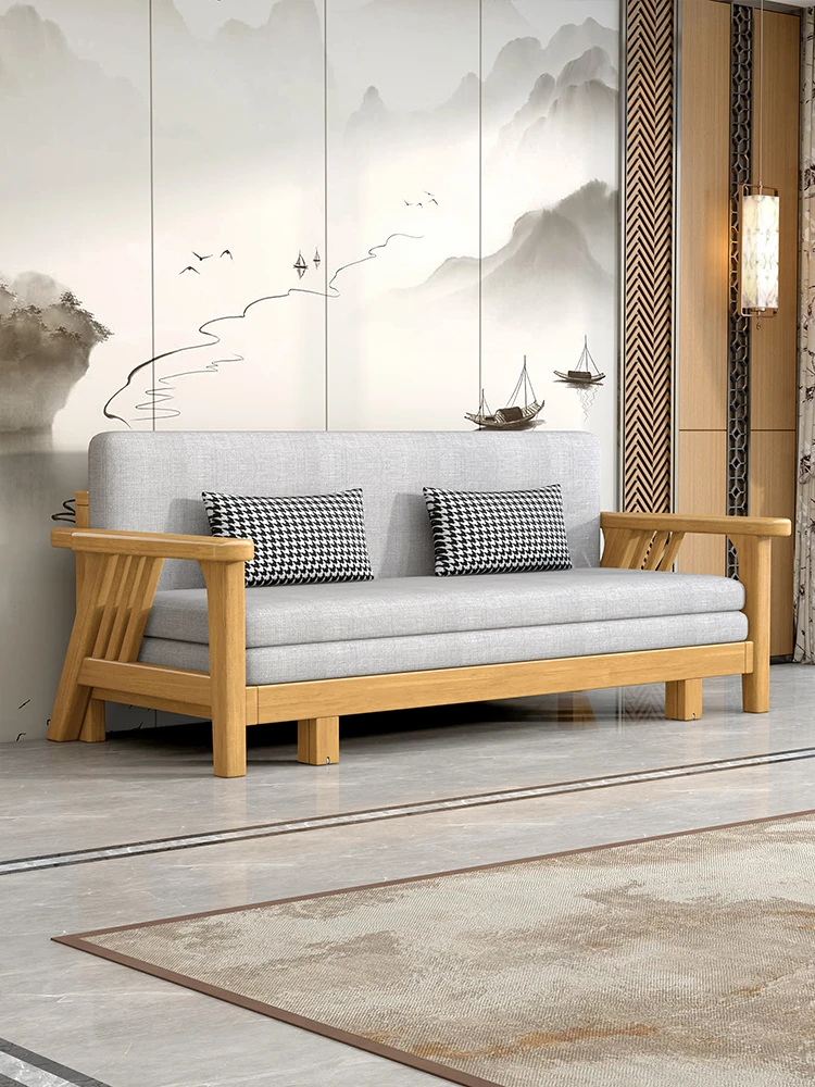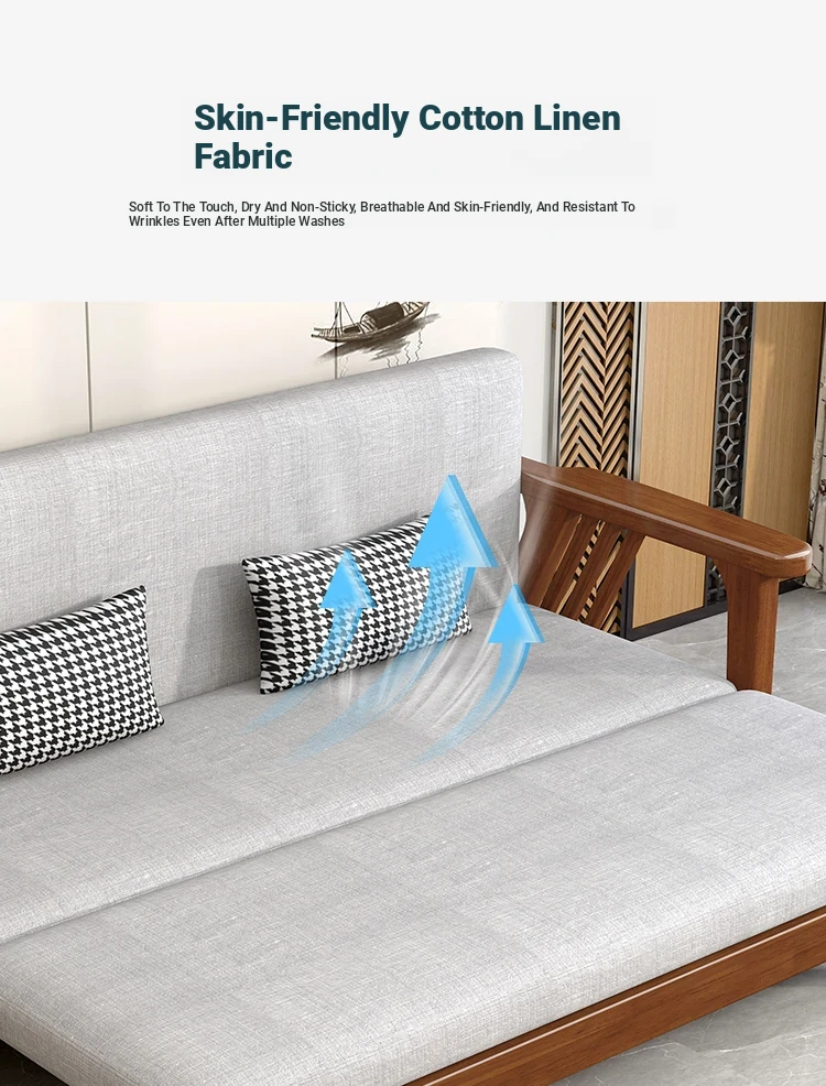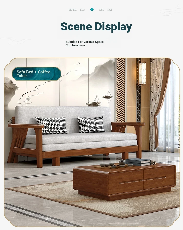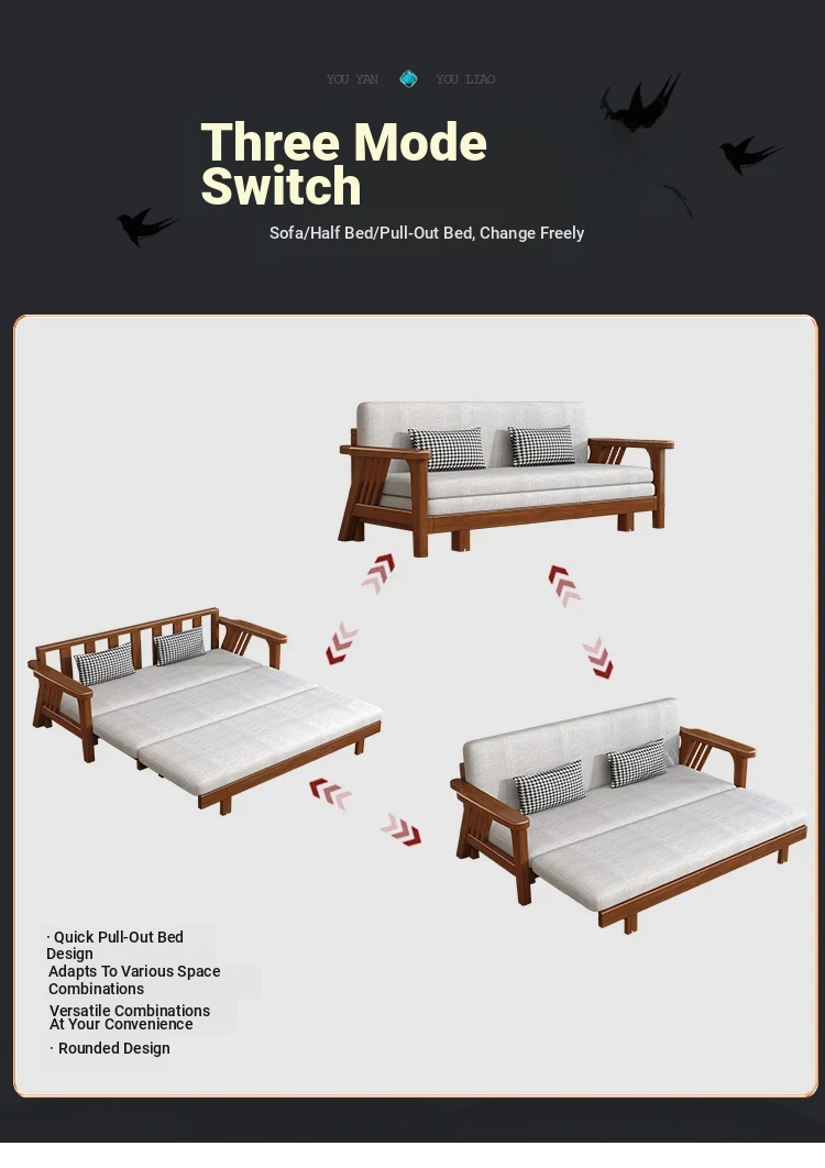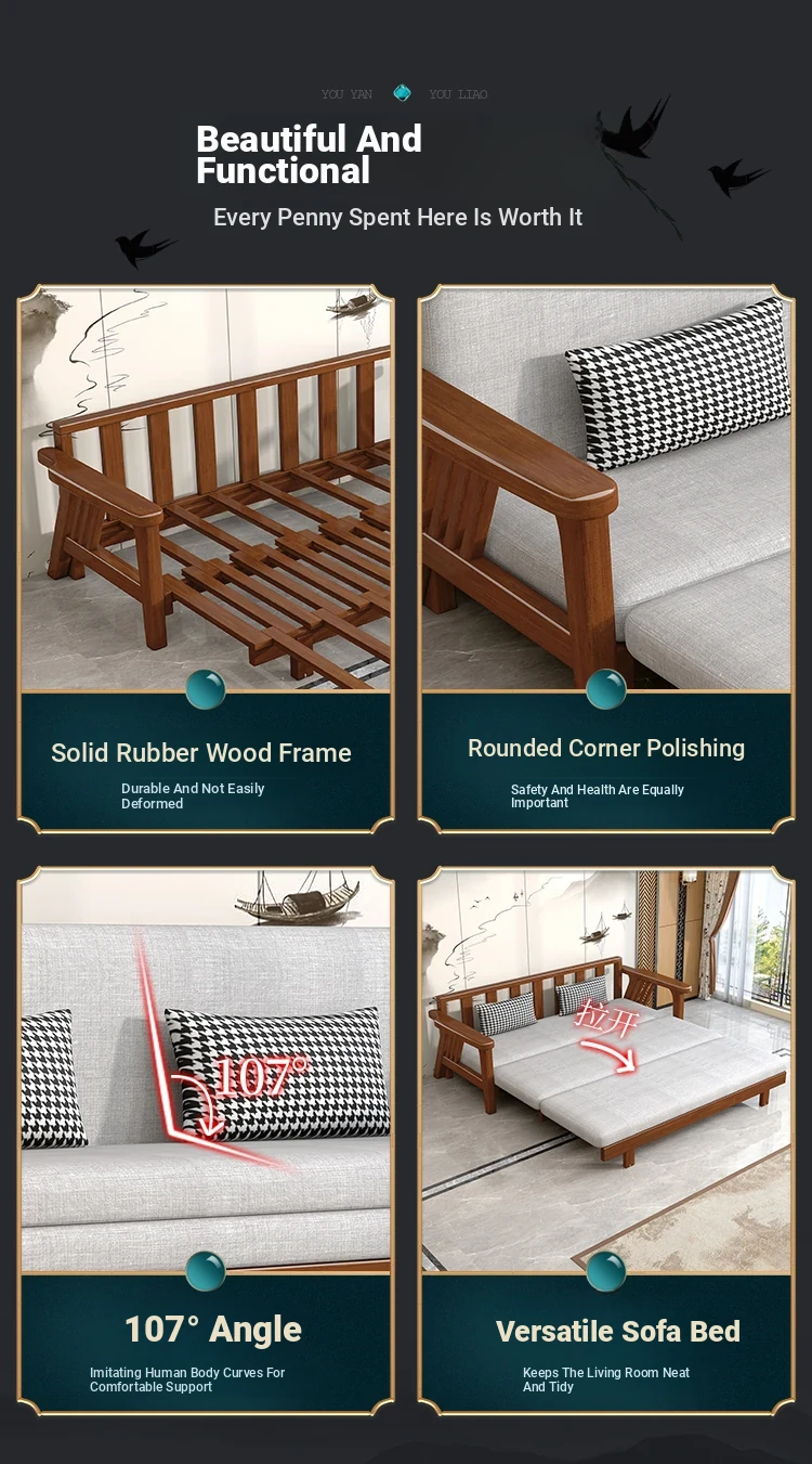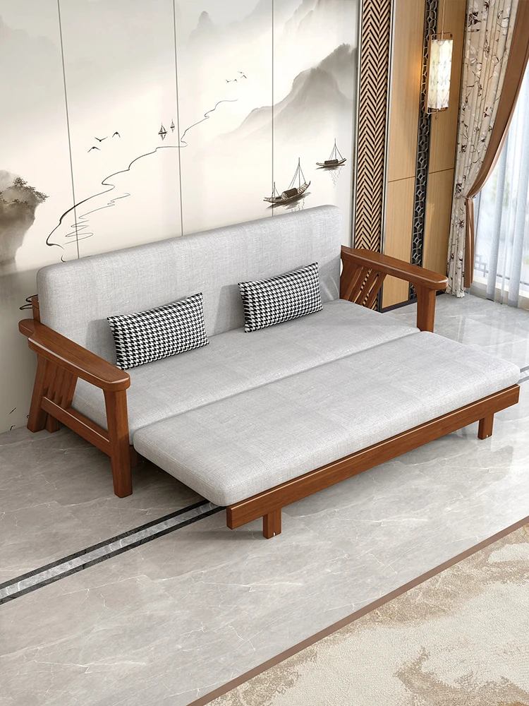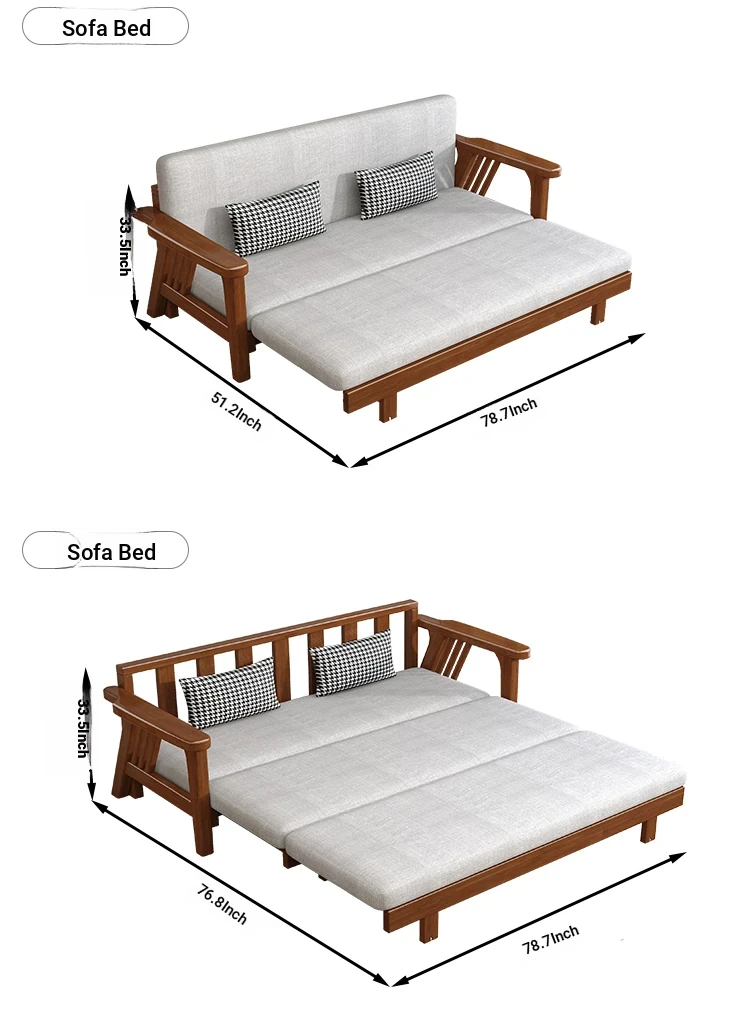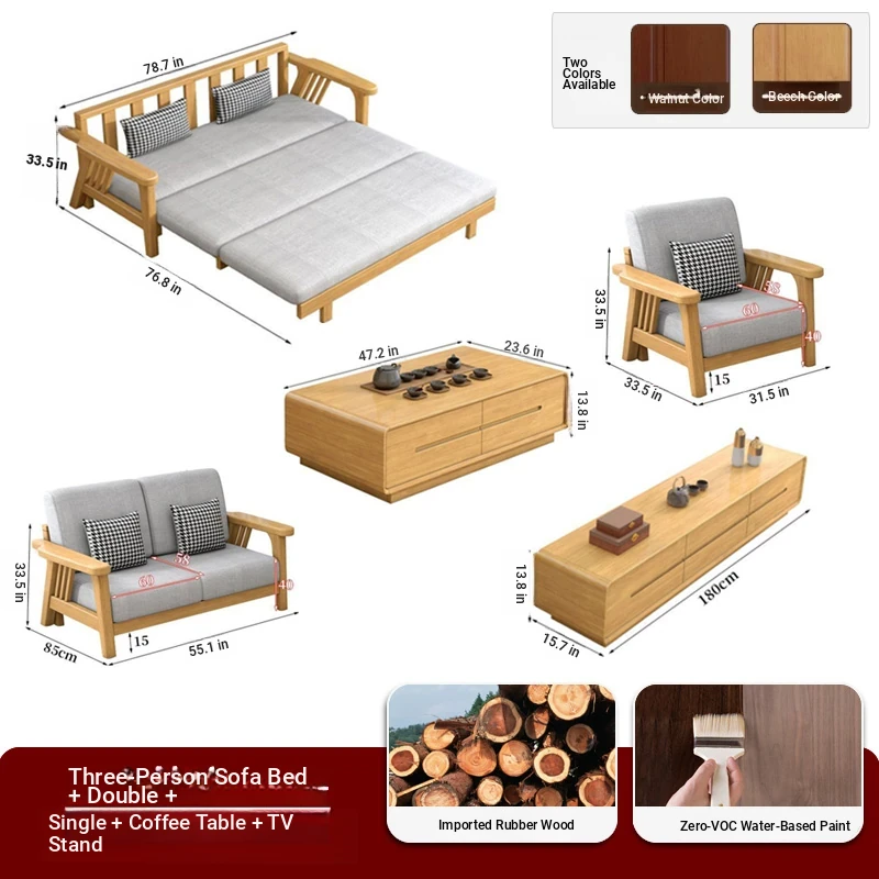 Multifunctional Folding Sofa Bed - Solid Wood Expandable and Convertible Design for Small Spaces, Natural Wood Pull-Out Bed, Perfect for Compact Living Areas