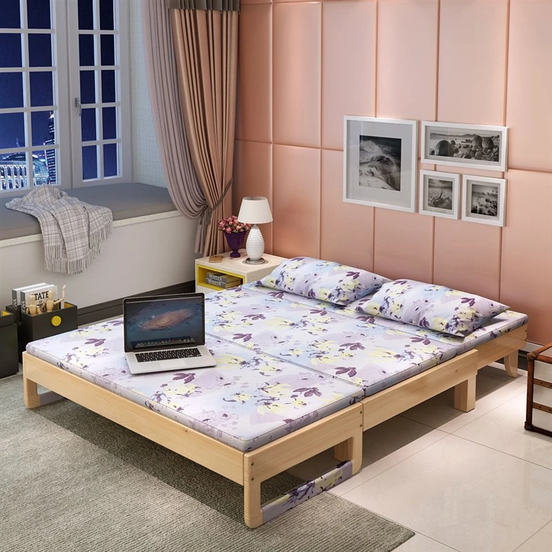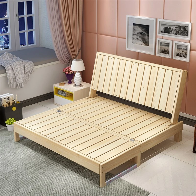 Multifunctional Solid Wood Sofa Bed - Foldable 2-in-1 Design for Living Room, Study, and Balcony; Perfect for Small Spaces – Available in Sizes: 1.2m, 1.5m, and 1.8m Double Bed.