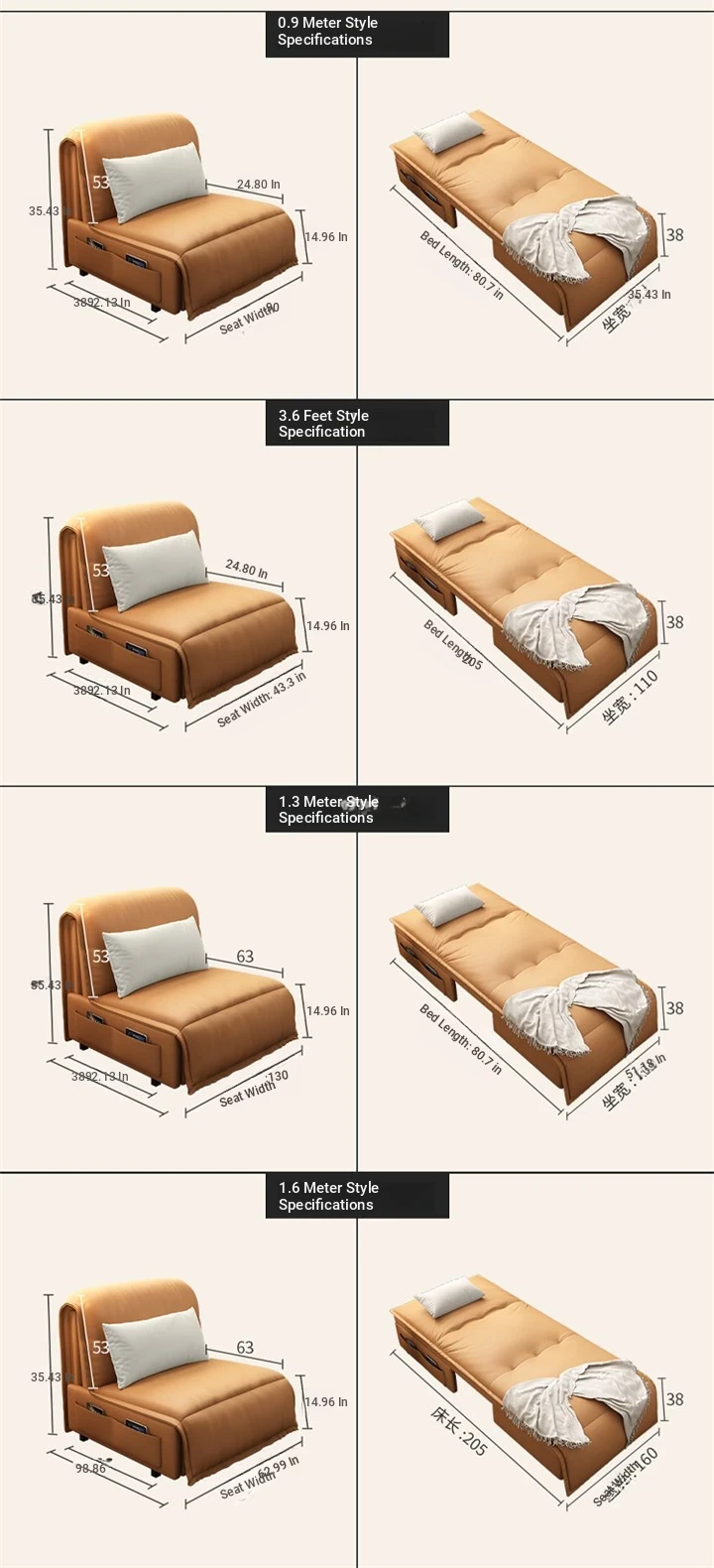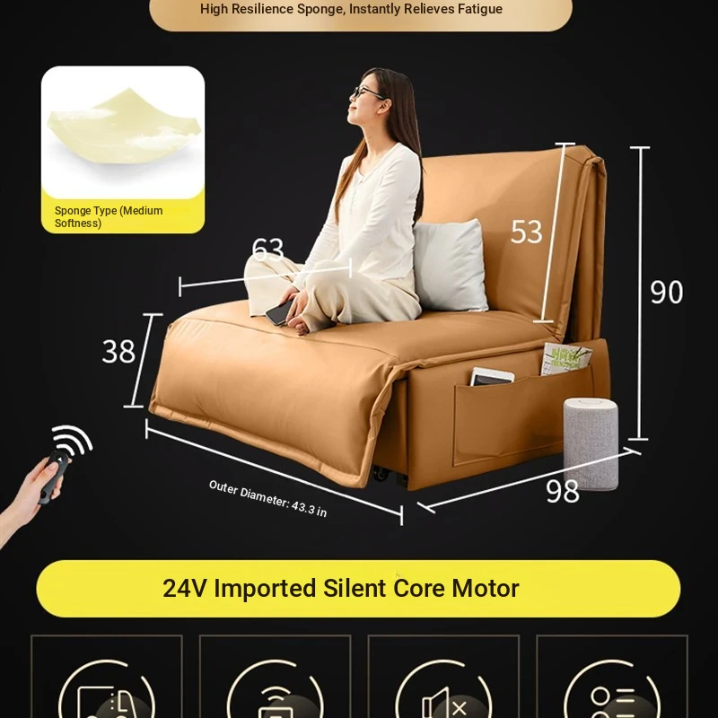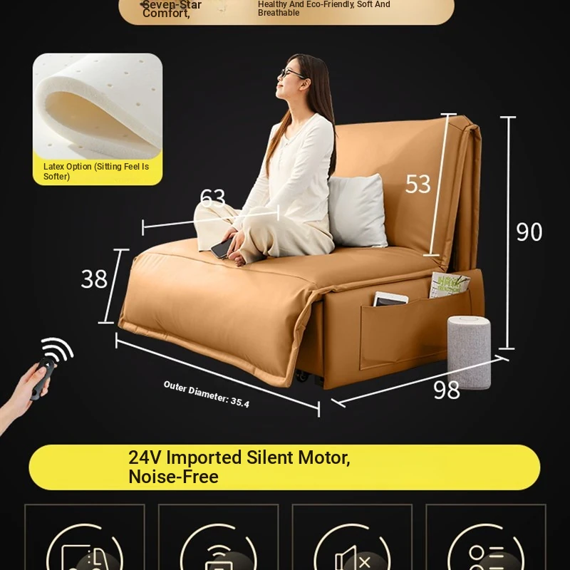 Multipurpose Electric Sofa Bed - Foldable and Extendable for Home Office and Bedroom, Space-Saving with Storage, Modern Luxury Single Seat
