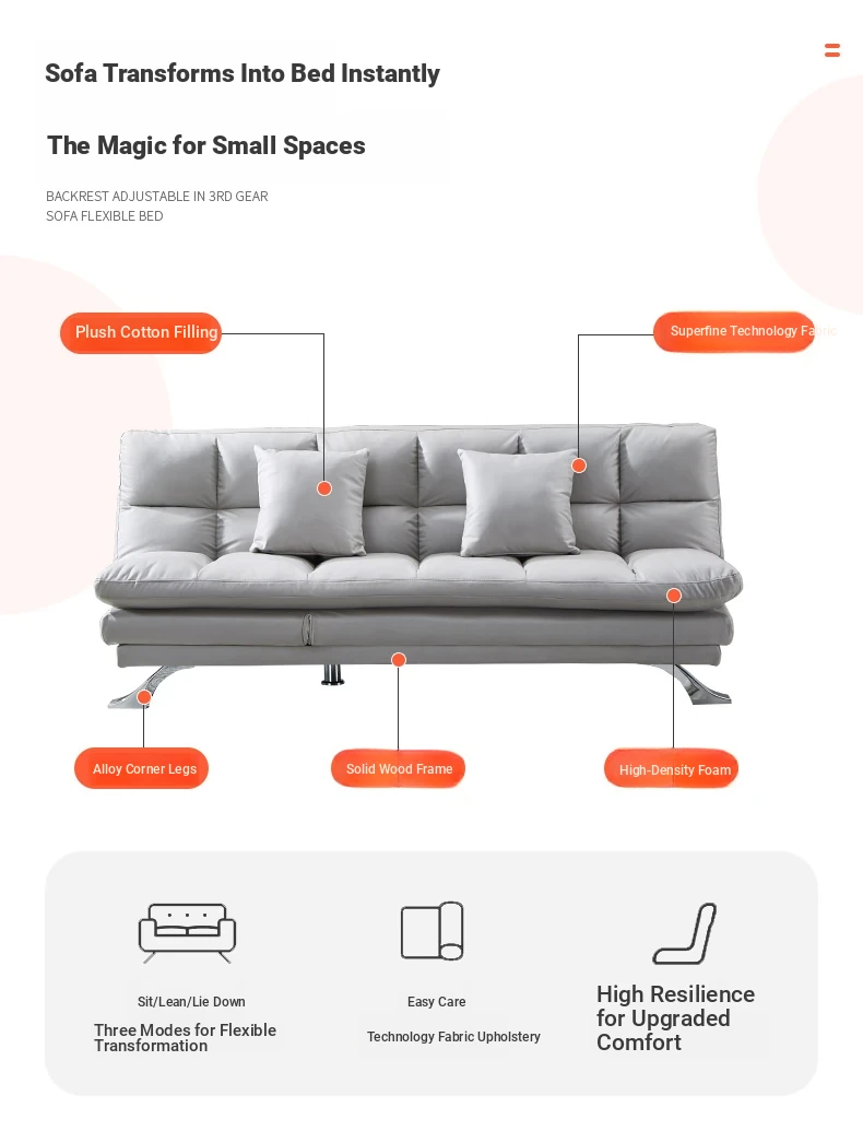 New Modern Multifunctional Sofa Bed for Small Spaces - Stylish Double Lazy Sofa with Foldable Design, Made of High-Tech Fabric, Perfect for Living Rooms