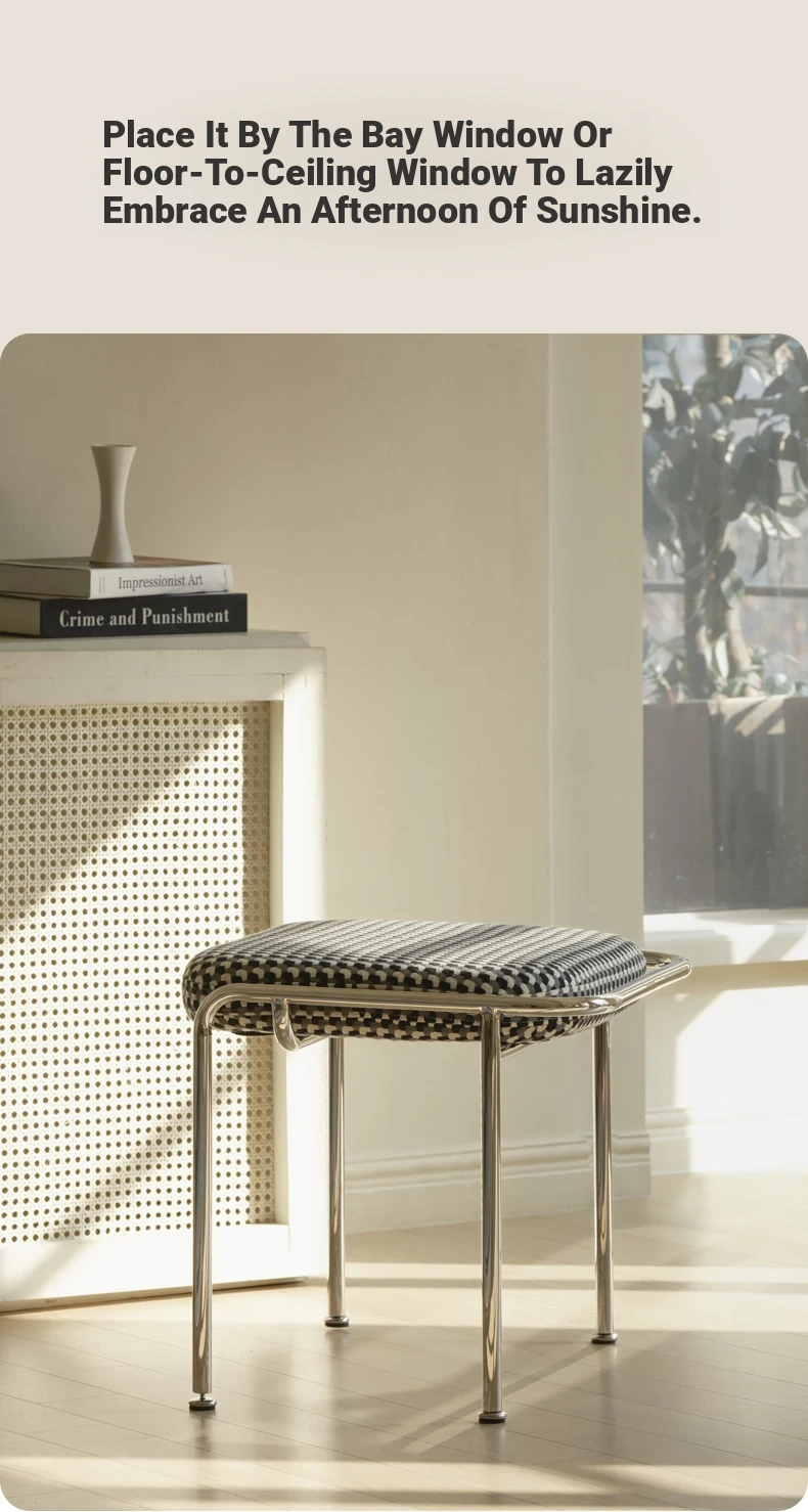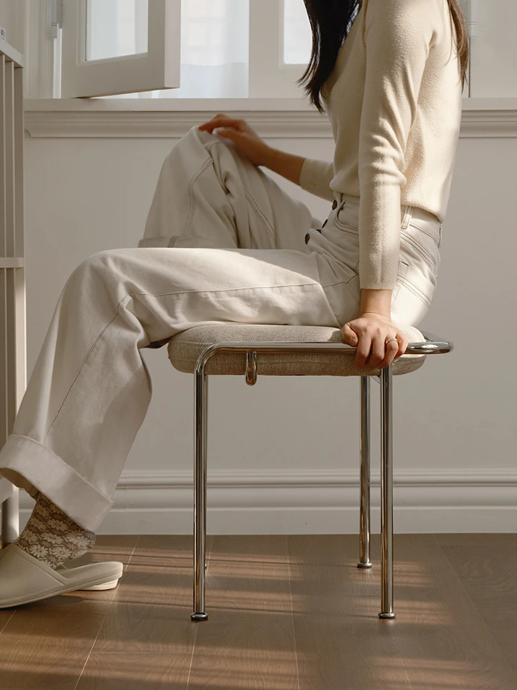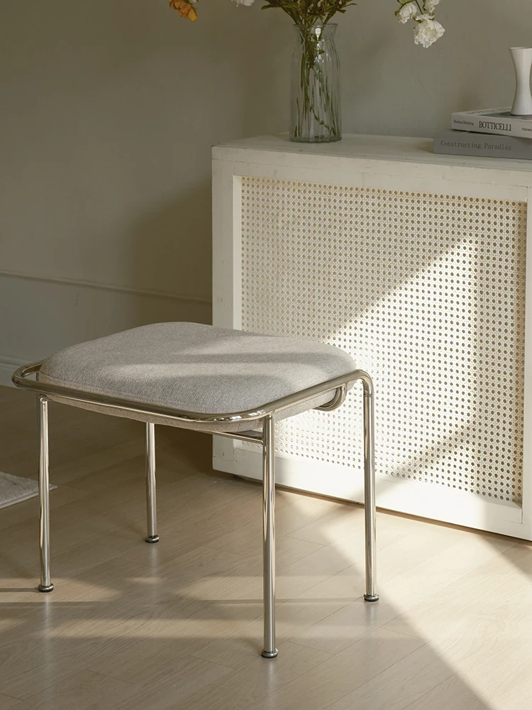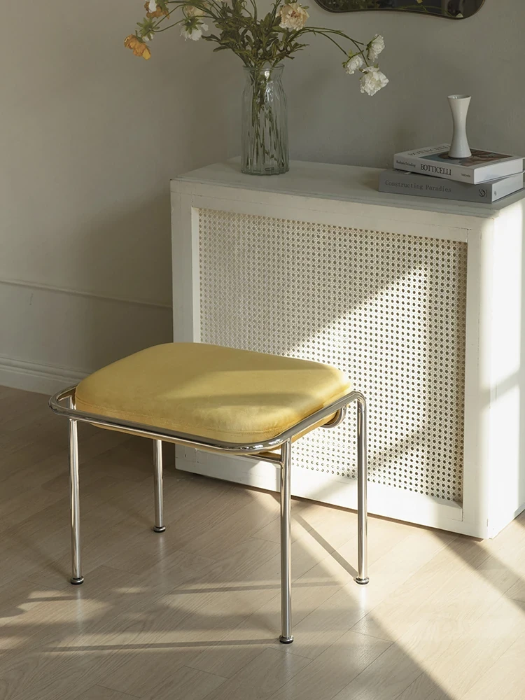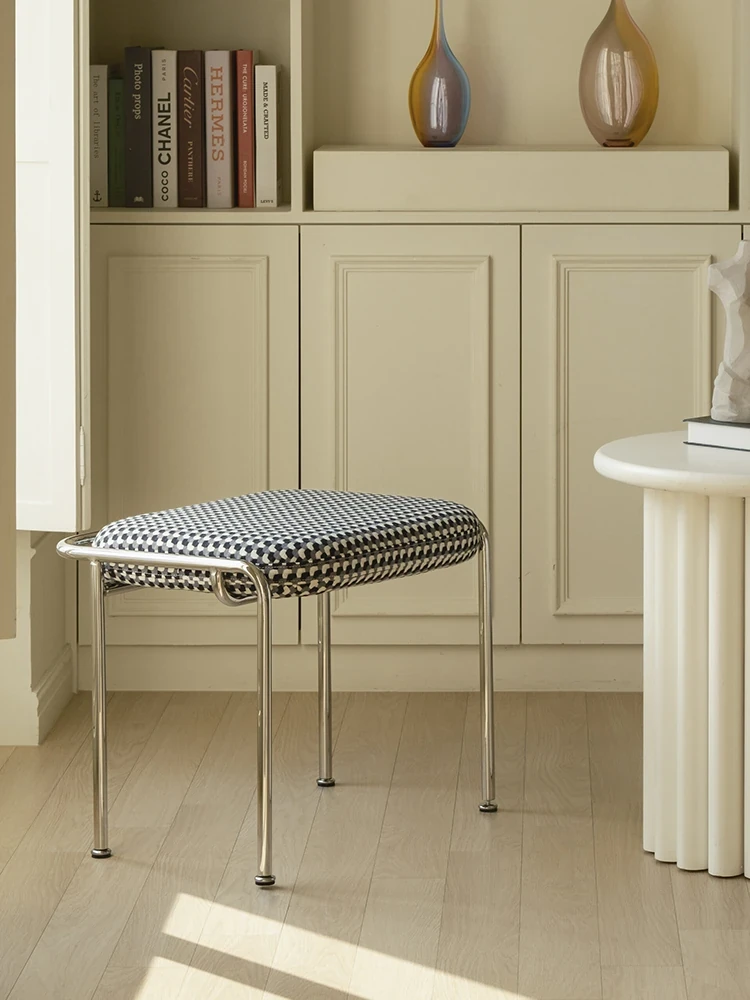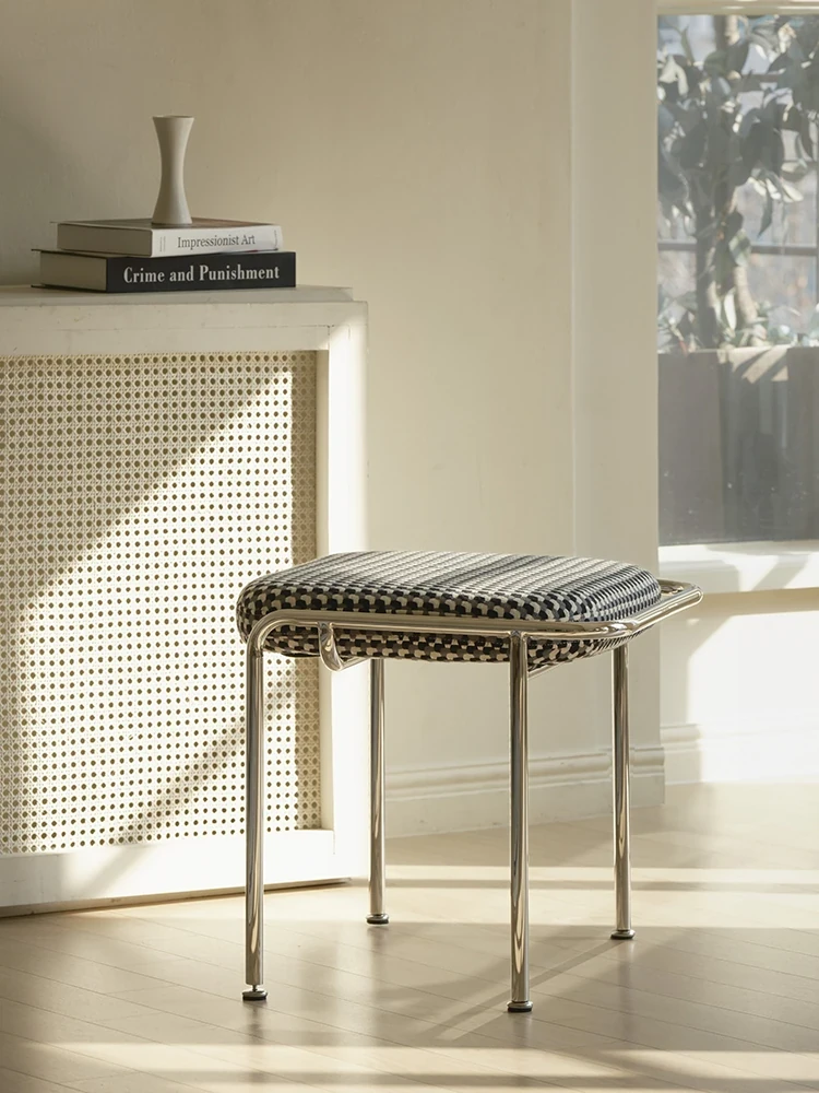 Nordic Bauhaus Iron Art Soft Cushion Changing Stool - Minimalist Dining and Café Stool for Home, Bedroom, and Creative Vanity Use