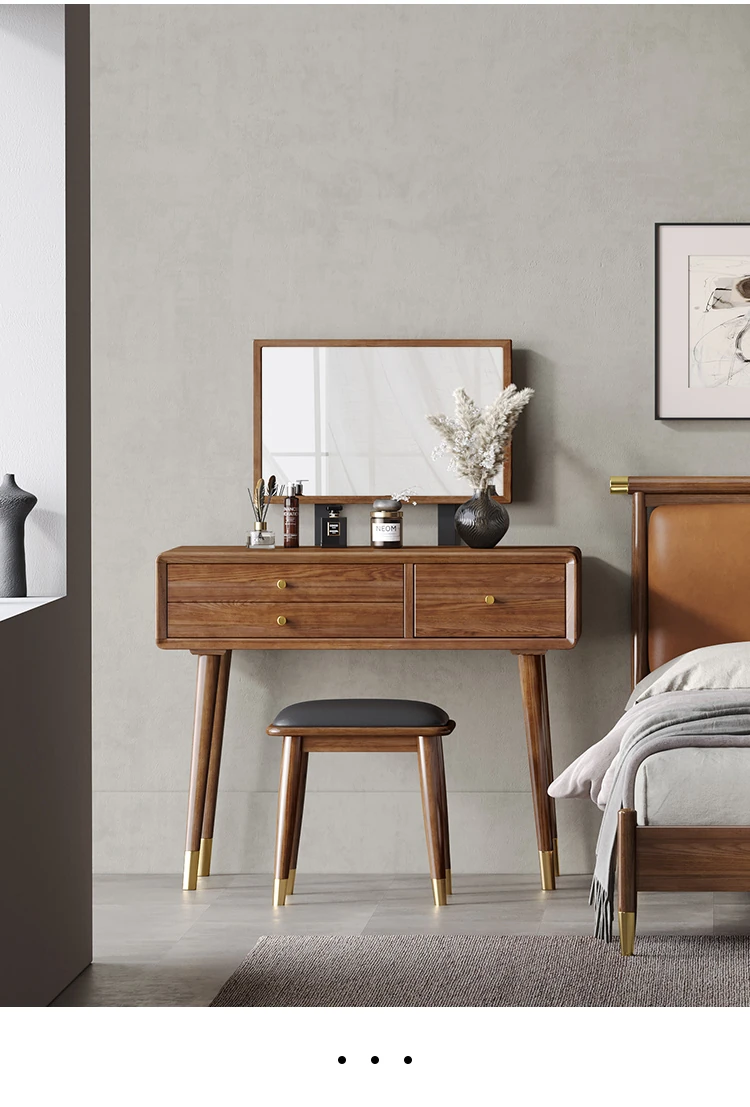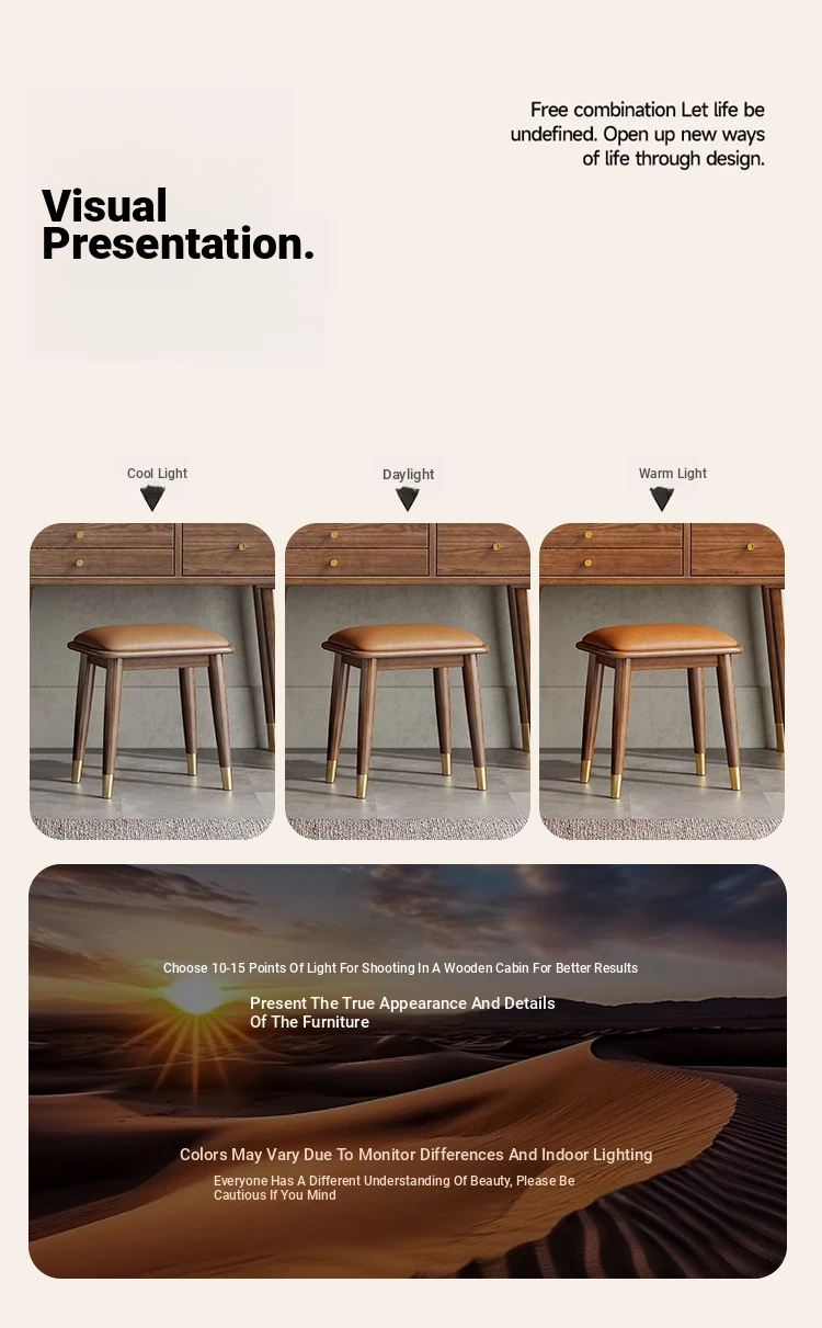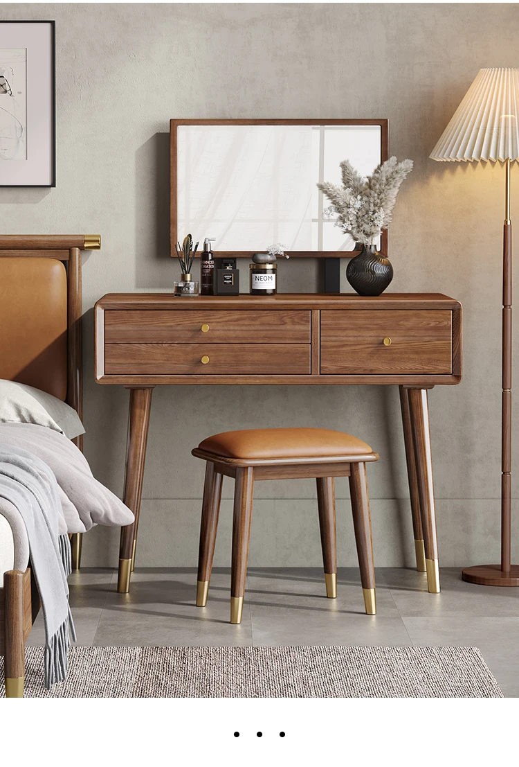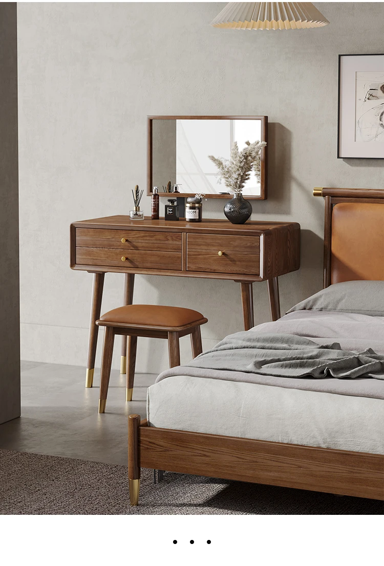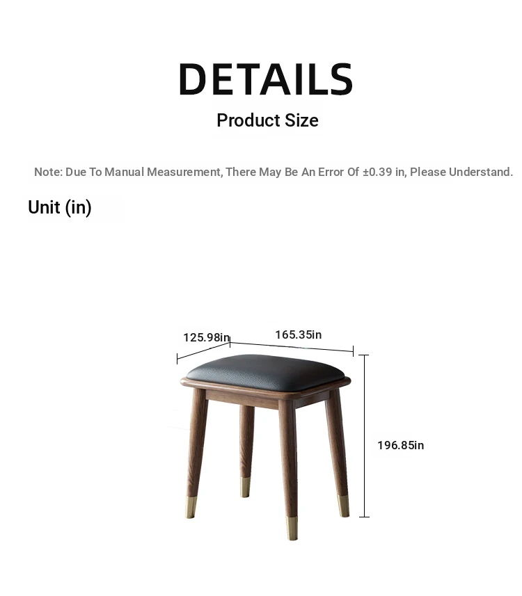 Nordic Minimalist Solid Wood Makeup Stool - Japanese Ash Wood Vanity Seat with Modern Luxury Walnut Veneer and Upholstered Design for Home Use