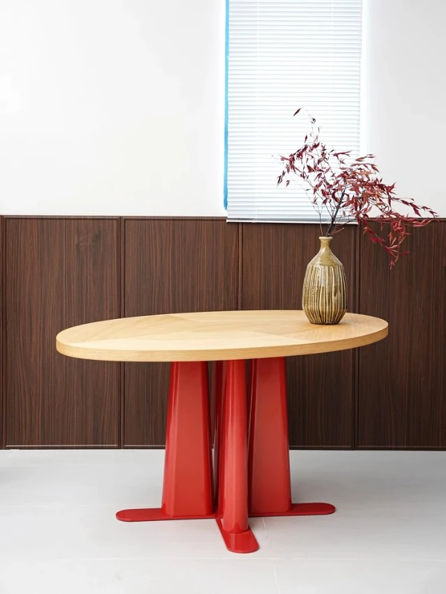 Nordic Rustic Oval Oak Dining Table - Italian Minimalist Long Table for Elegant Meetings and Gatherings, Perfect for Chic Interiors