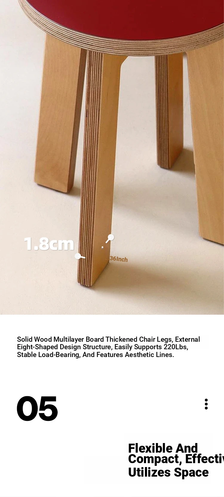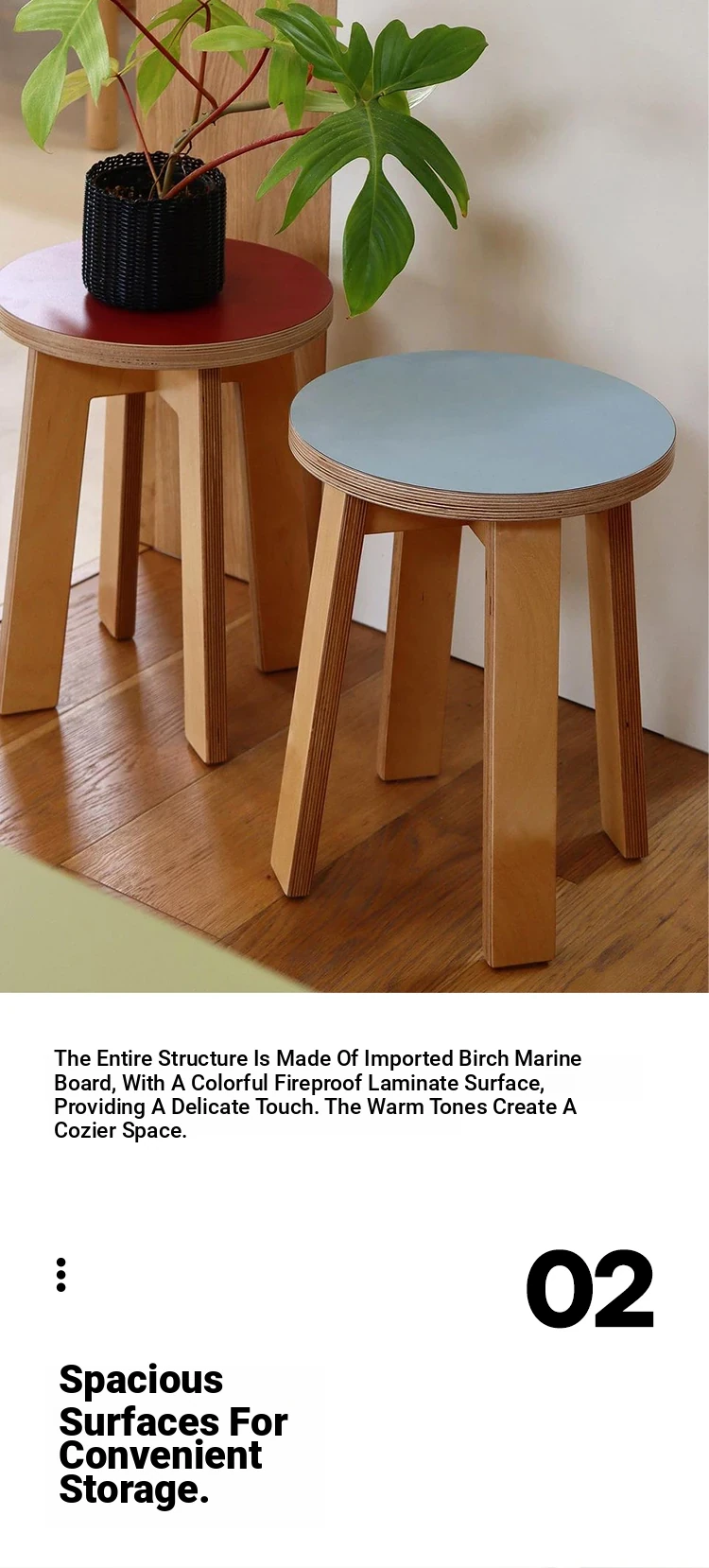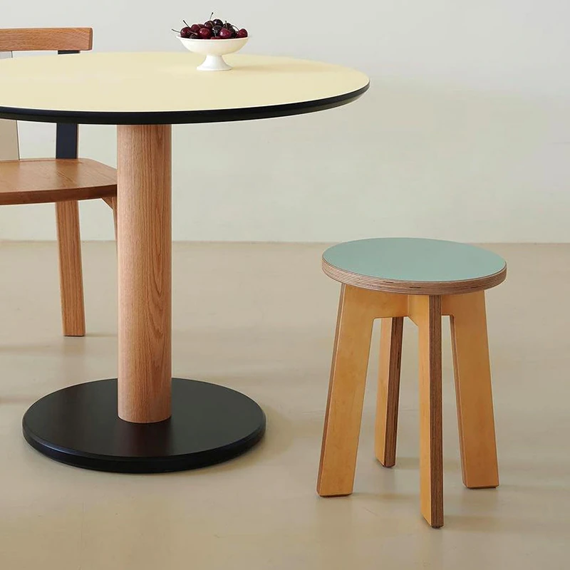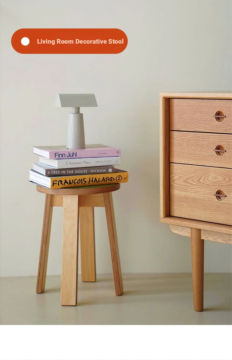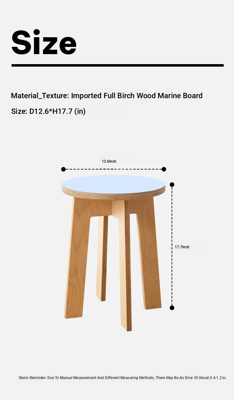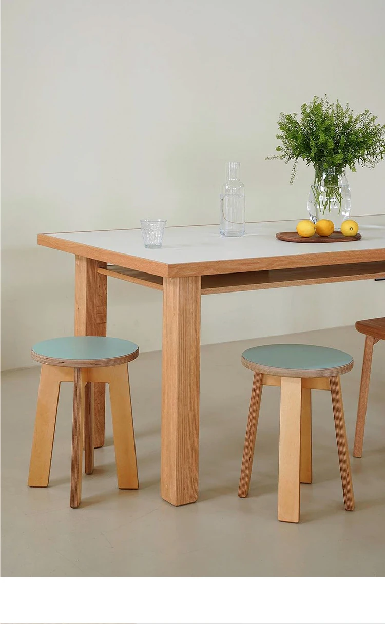 Nordic Style Round Stool - Ocean Board Dining Chair for Small Spaces, Trendy and Minimalist Design, Perfect for Living Room and Dining Room, Solid Wood Construction