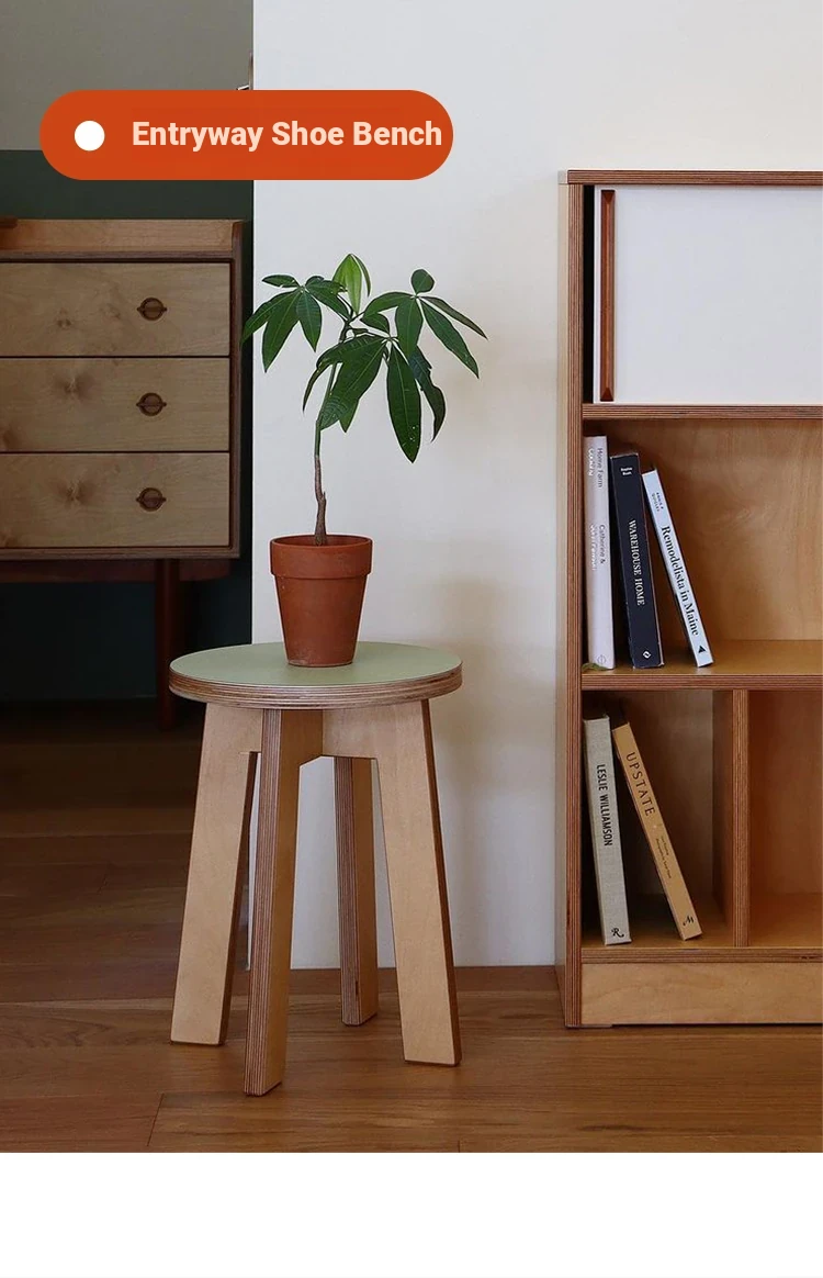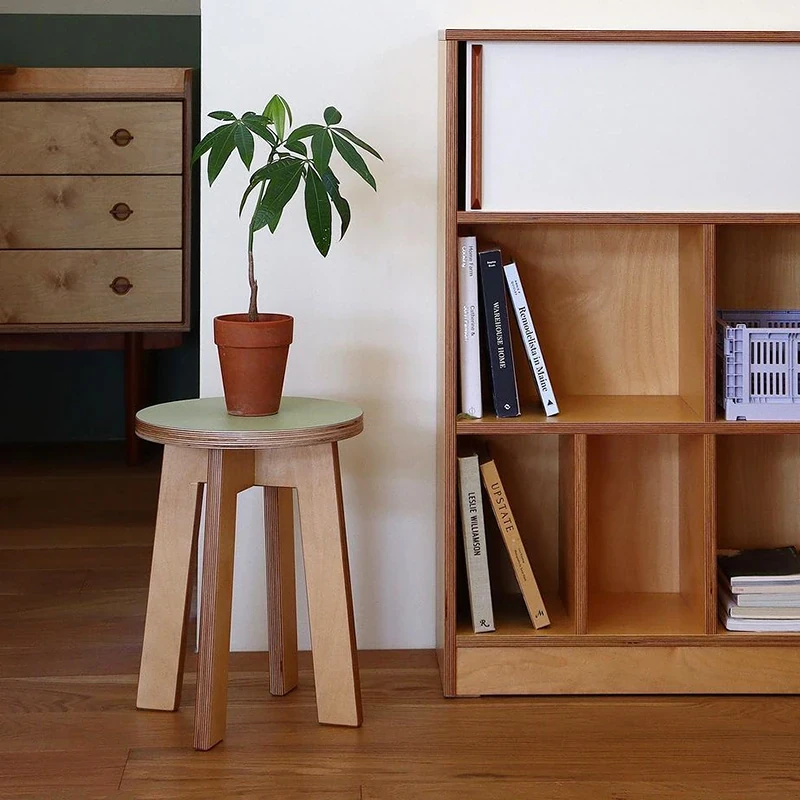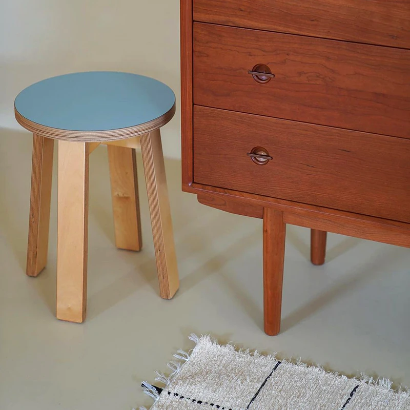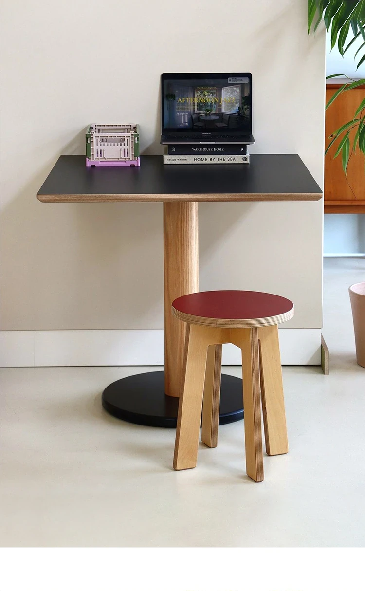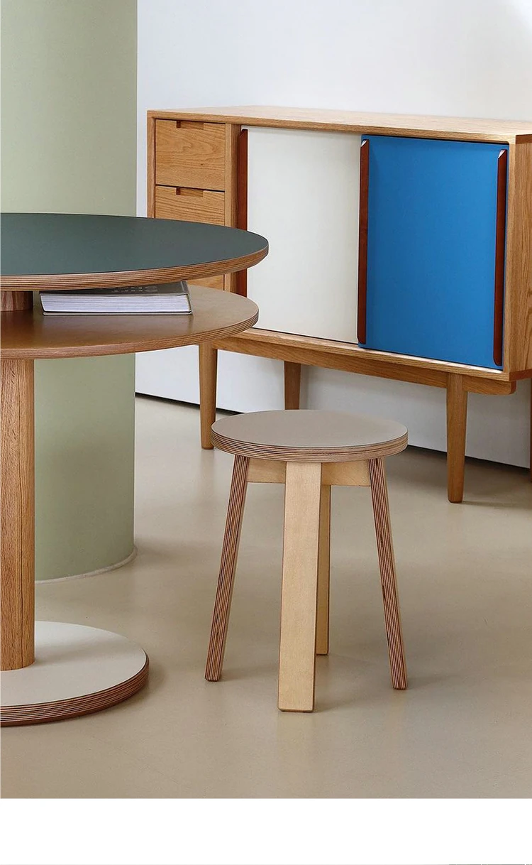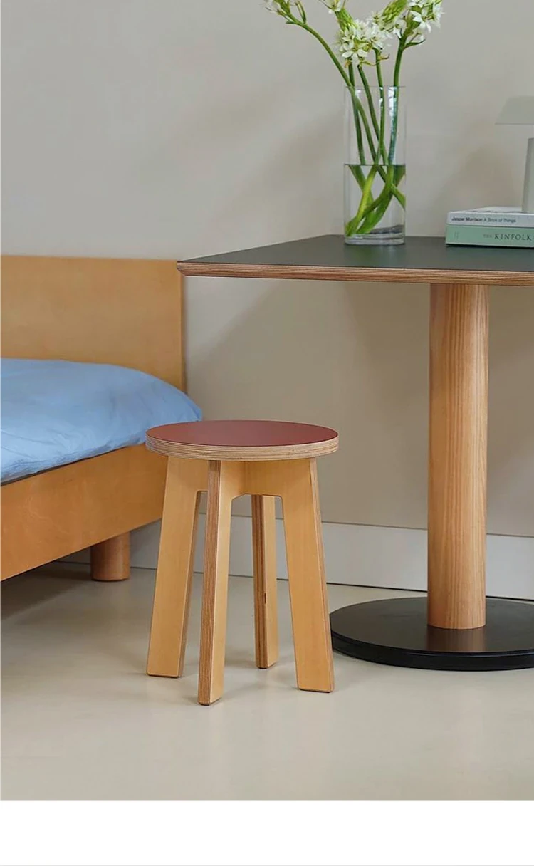 Nordic Style Round Stool - Ocean Board Dining Chair for Small Spaces, Trendy and Minimalist Design, Perfect for Living Room and Dining Room, Solid Wood Construction