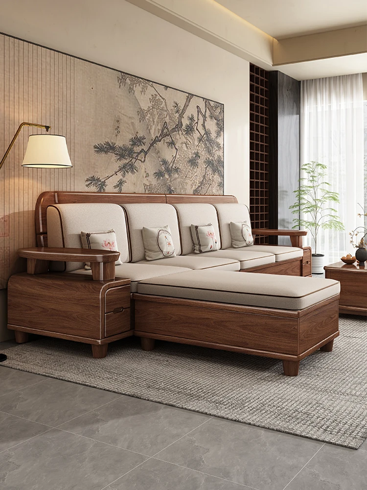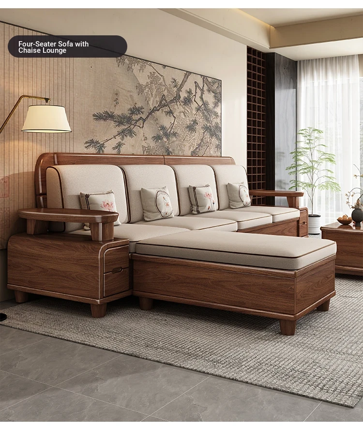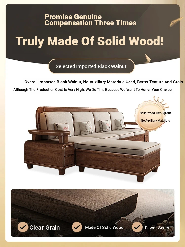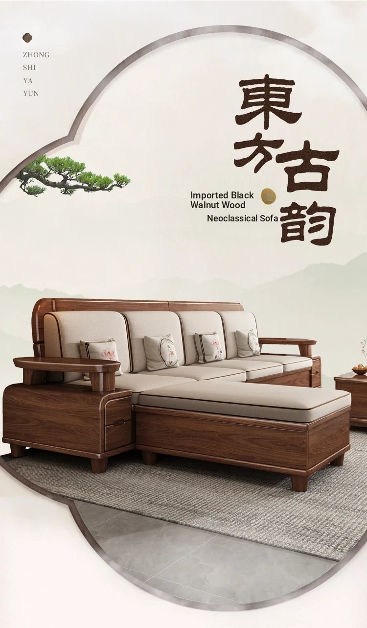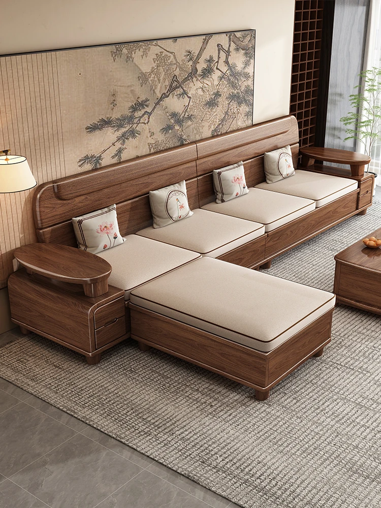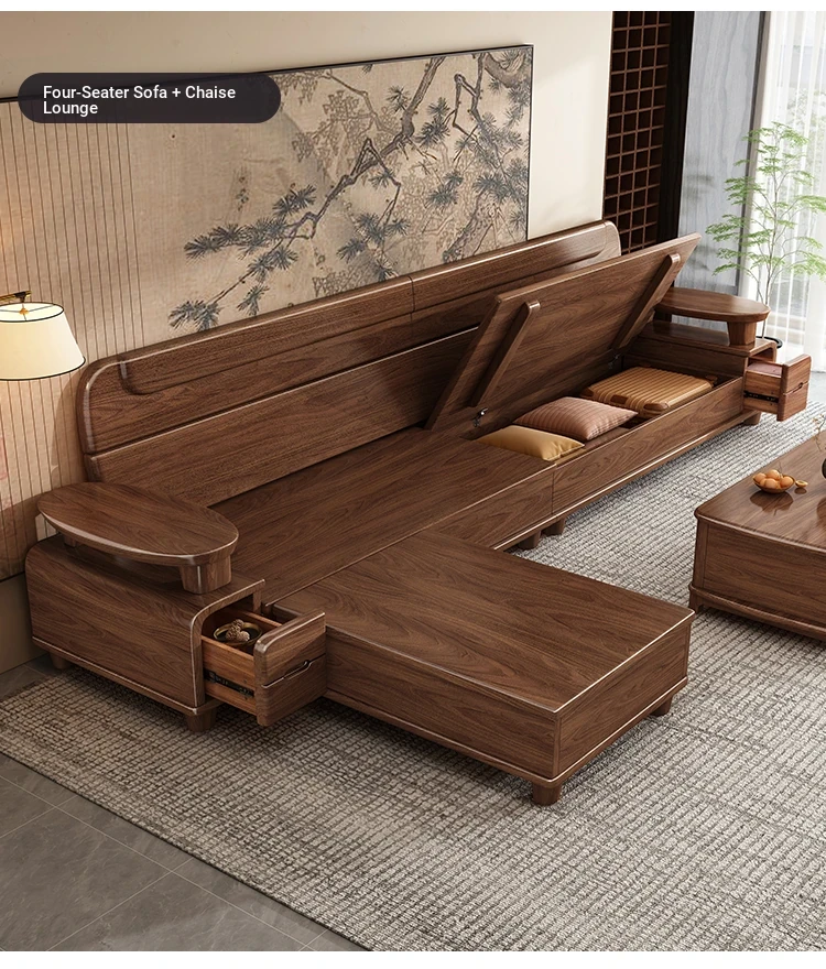 Premium Solid Wood Sofa in Black Walnut - High-End Natural Wood Furniture for Living Room with Storage - 2025 New Chinese Style木沙发