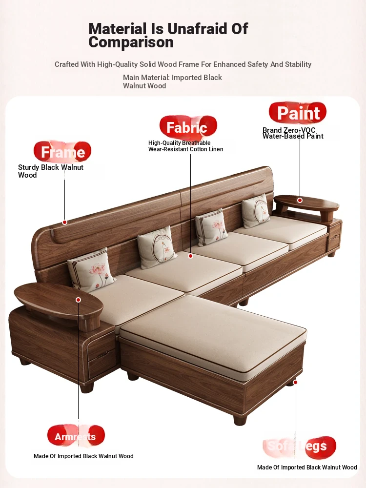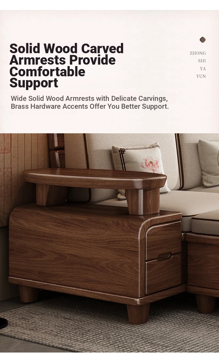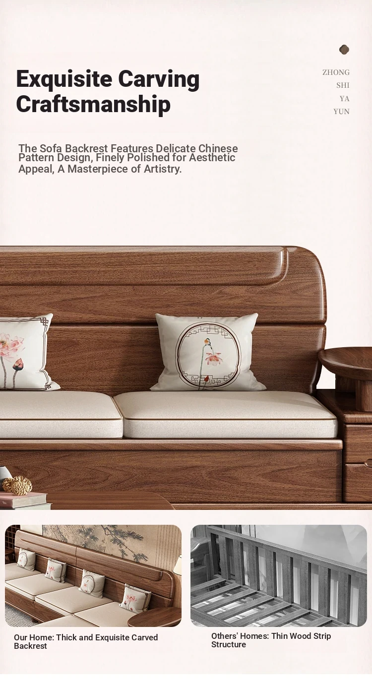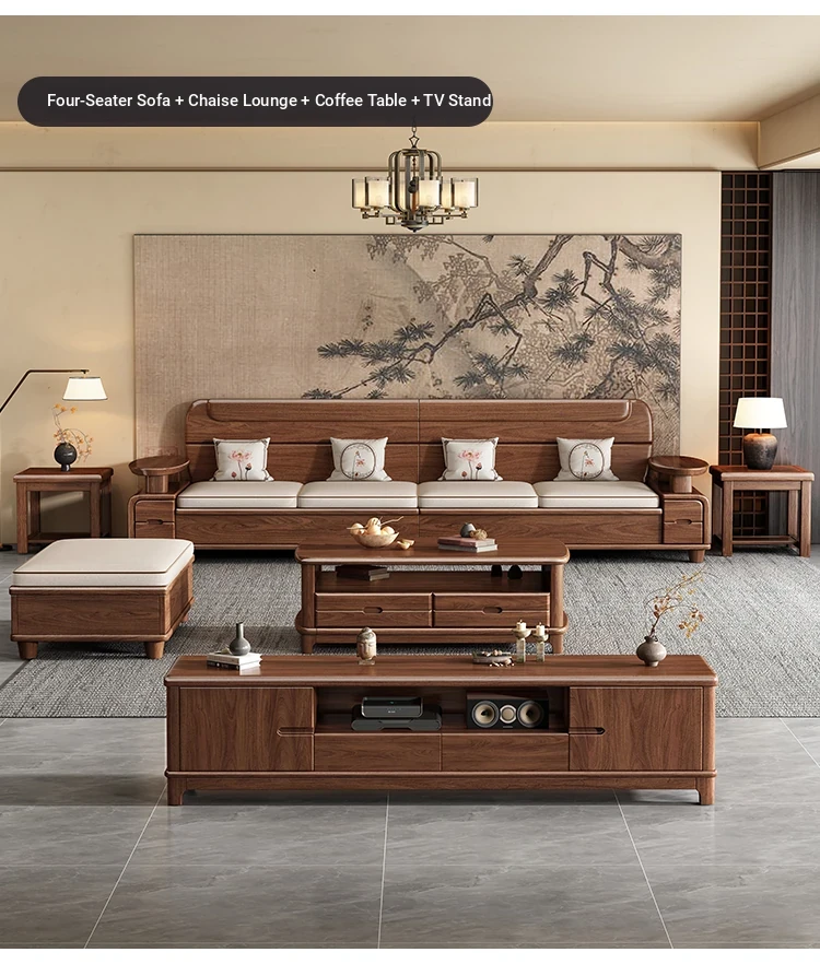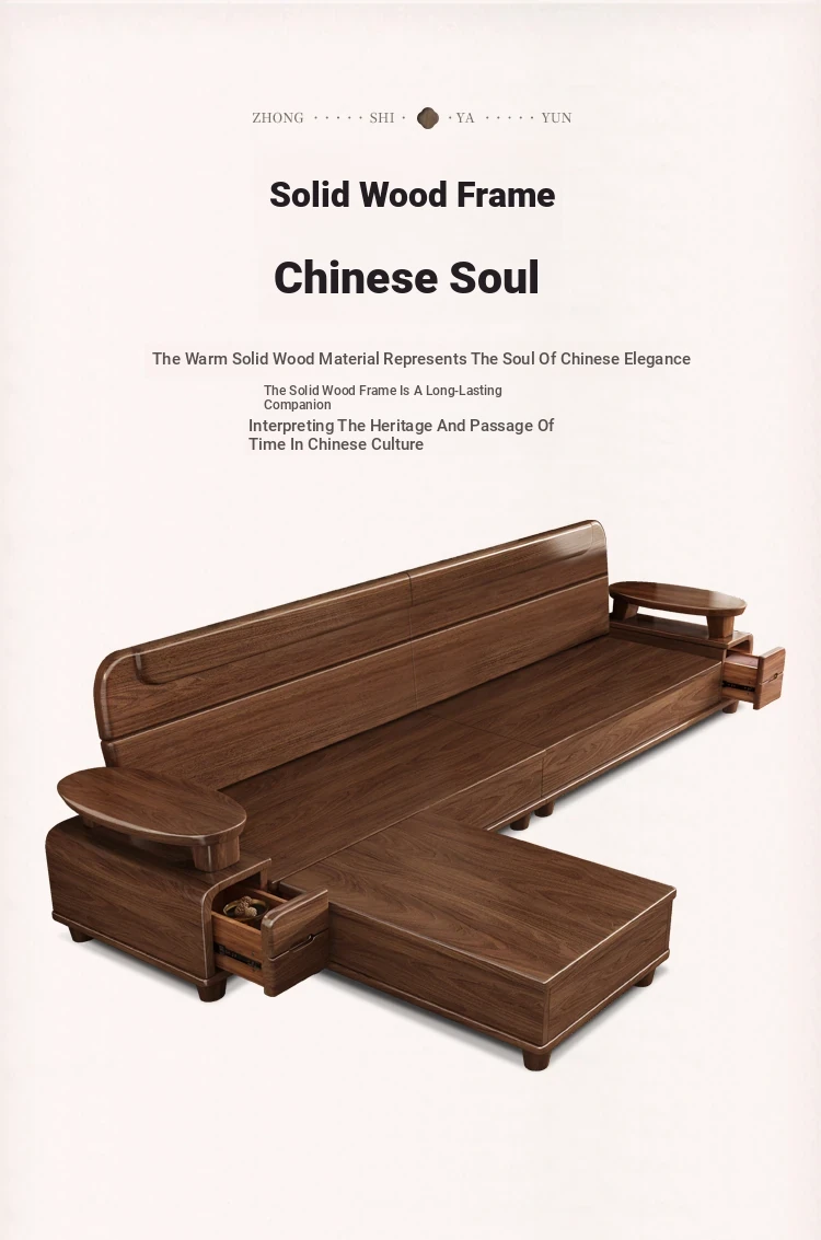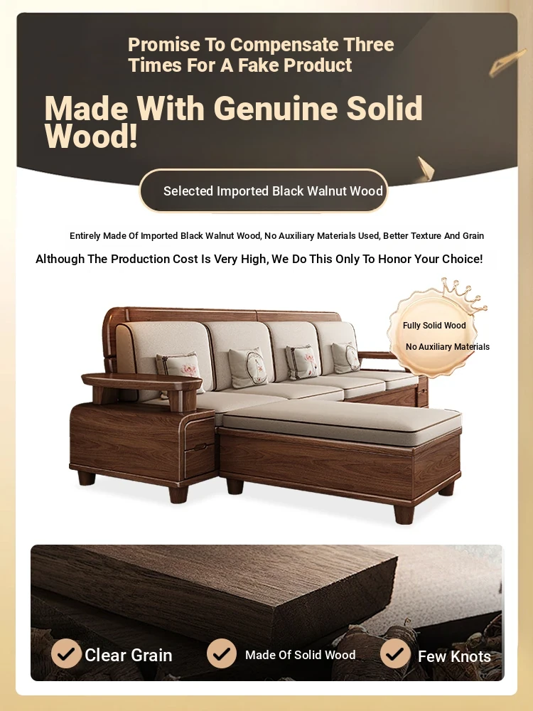 Premium Solid Wood Sofa in Black Walnut - High-End Natural Wood Furniture for Living Room with Storage - 2025 New Chinese Style木沙发