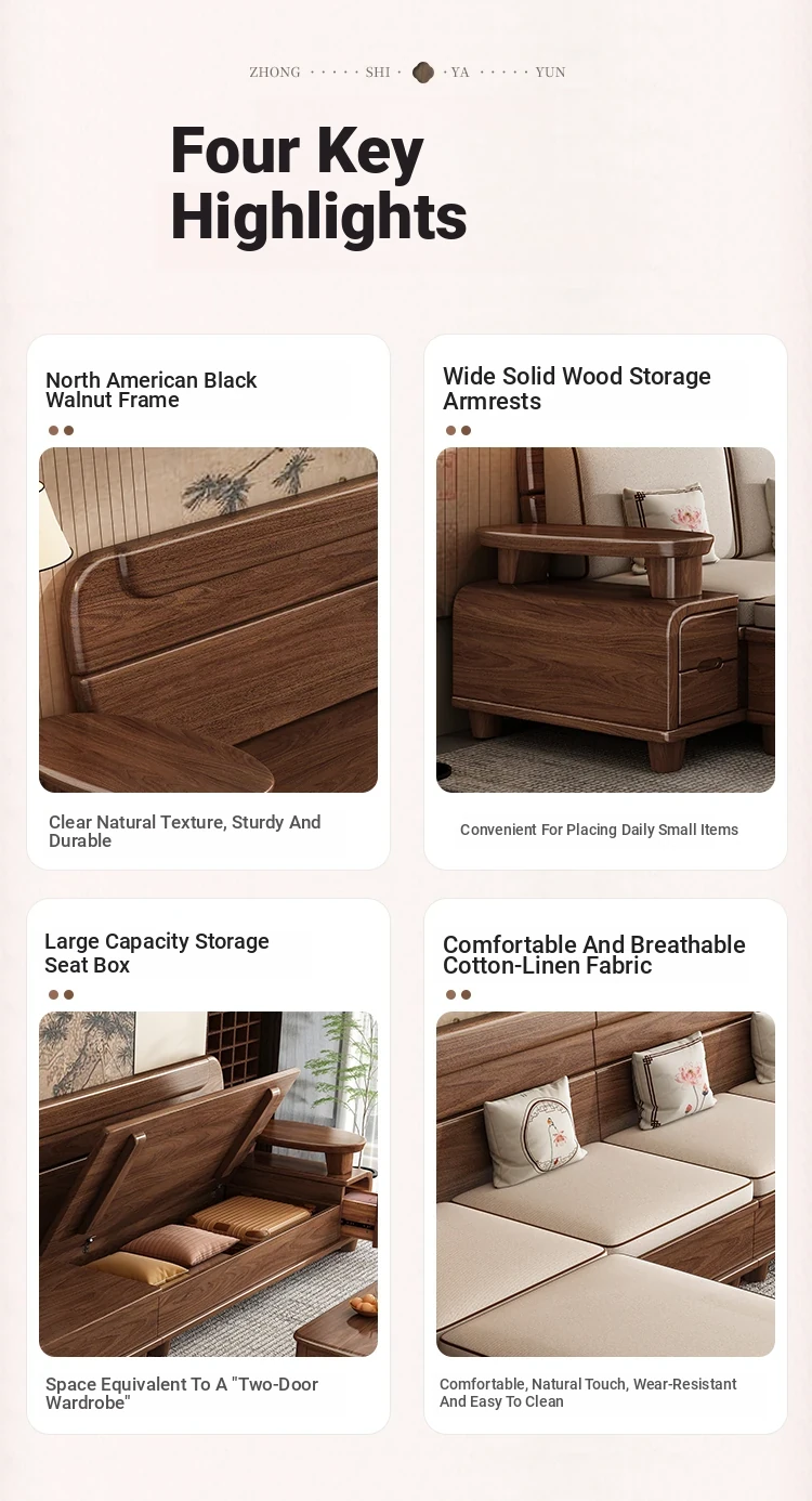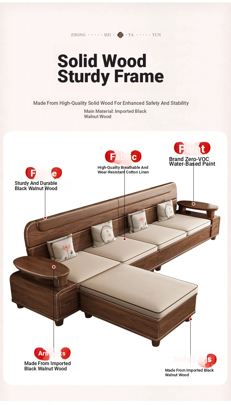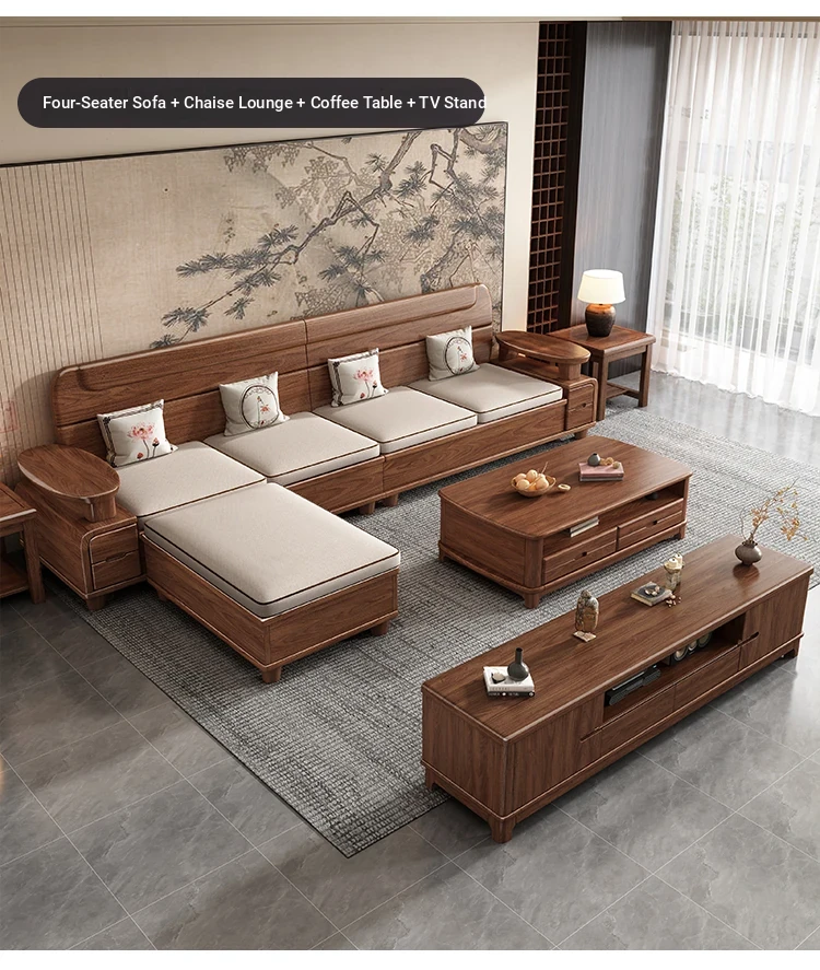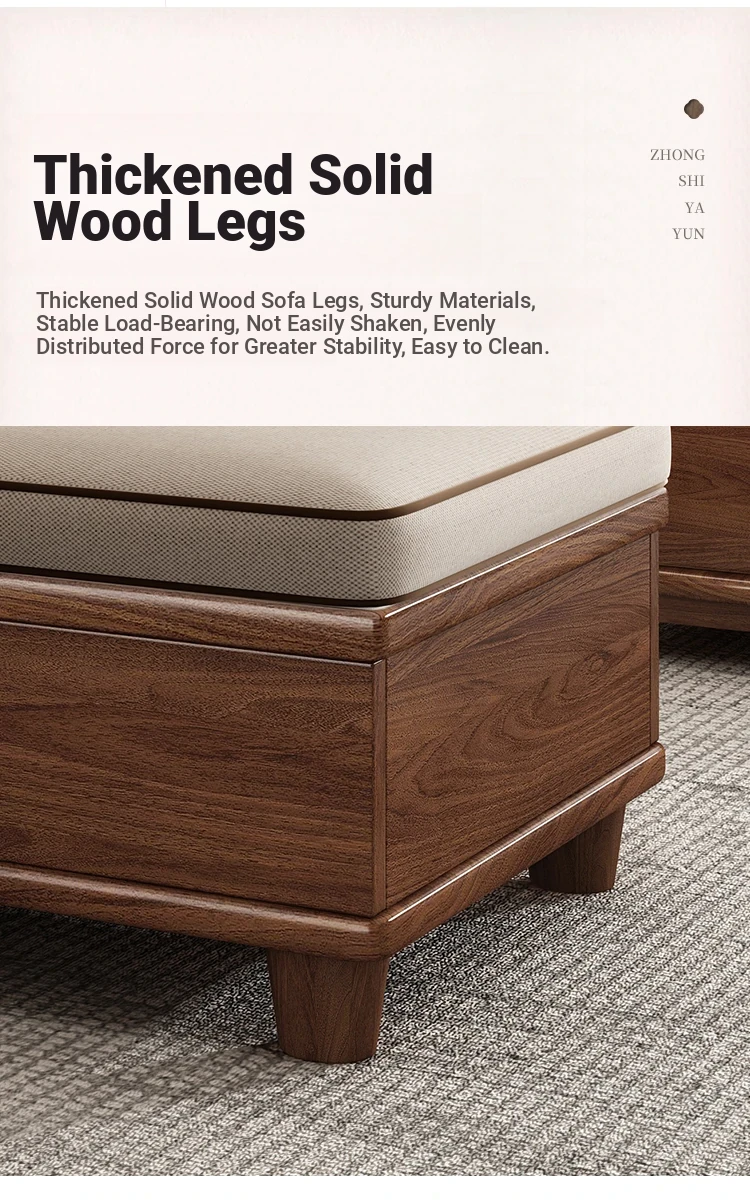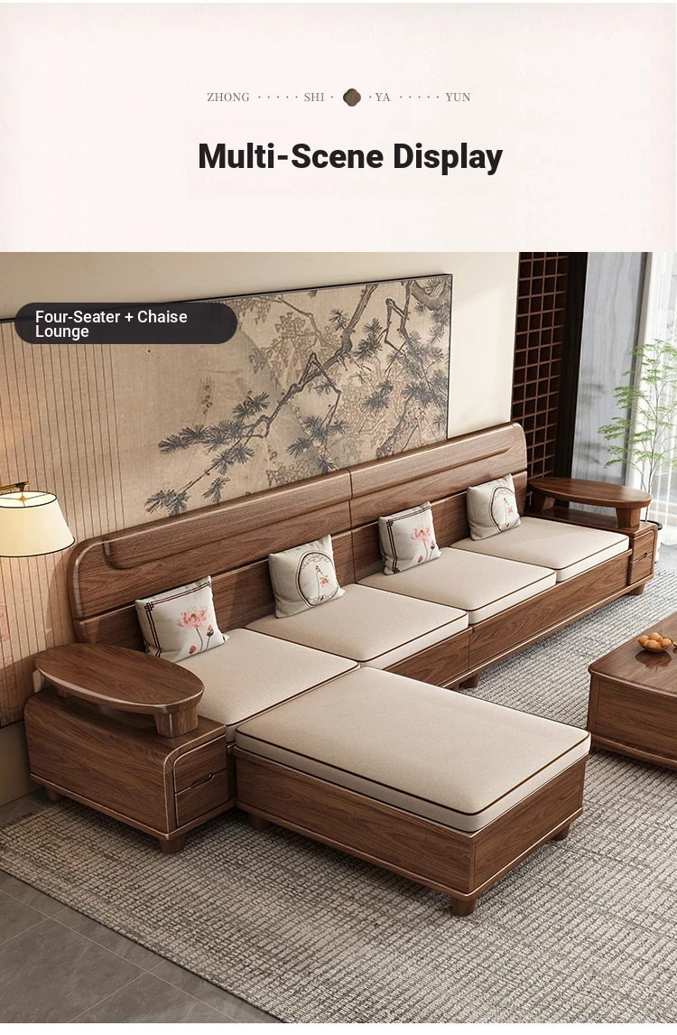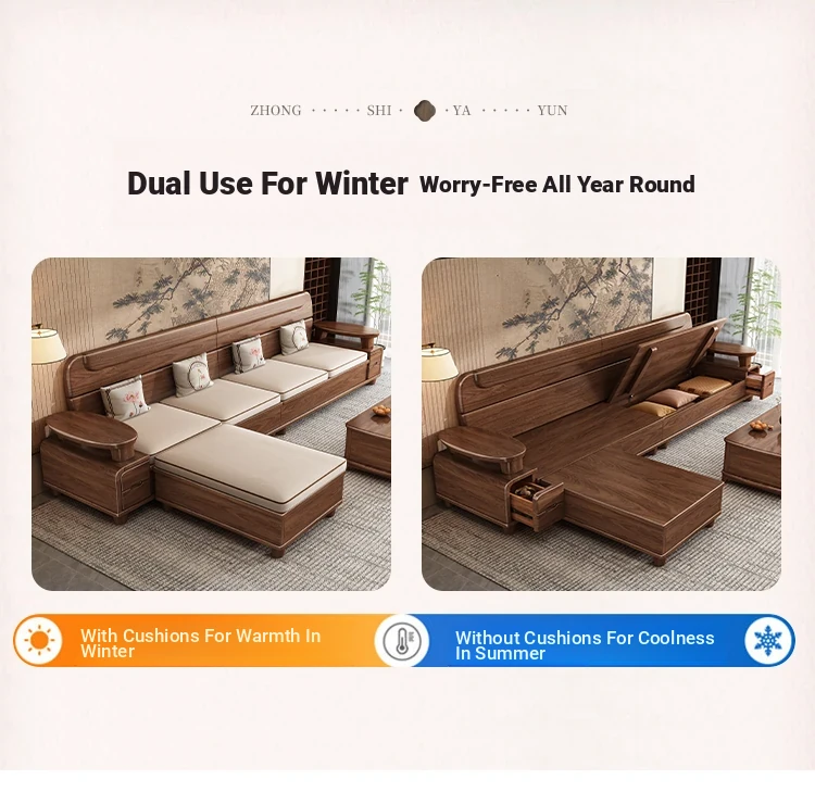 Premium Solid Wood Sofa in Black Walnut - High-End Natural Wood Furniture for Living Room with Storage - 2025 New Chinese Style木沙发