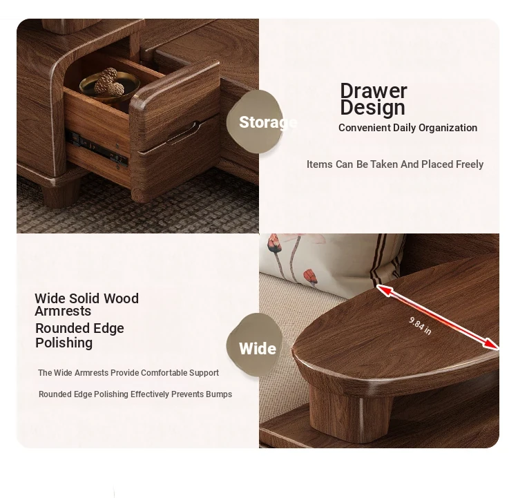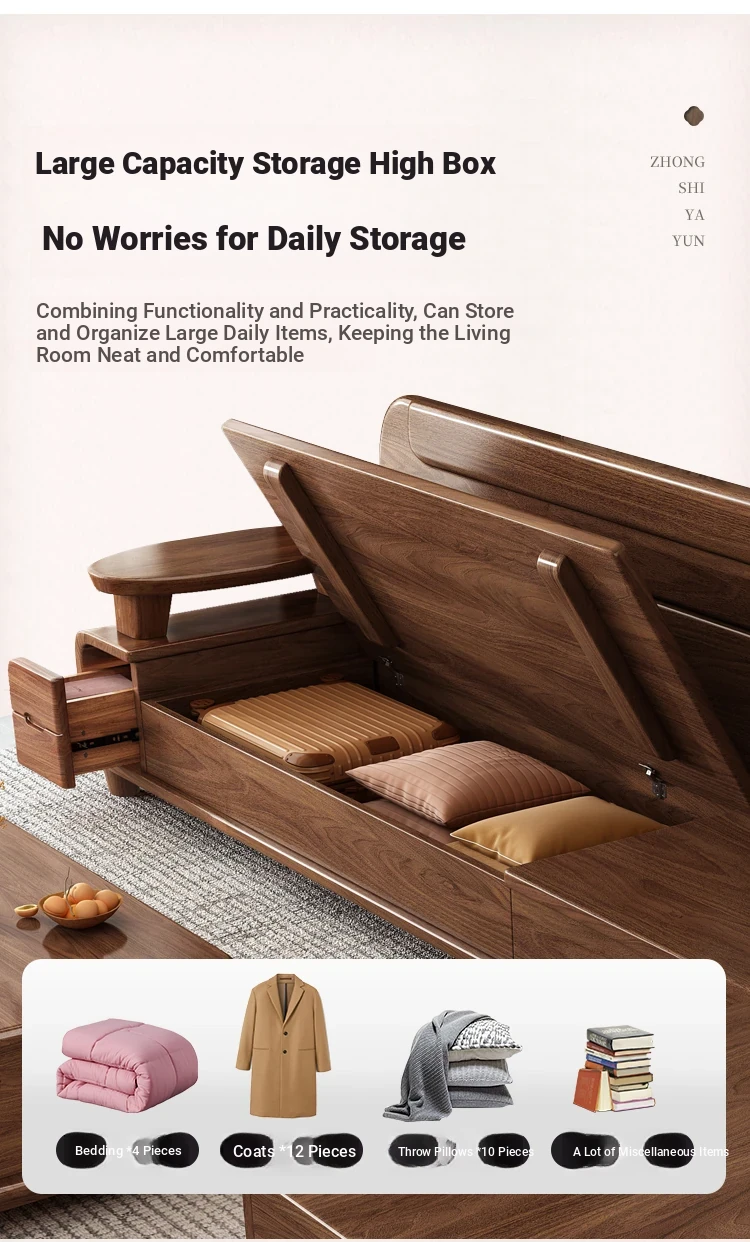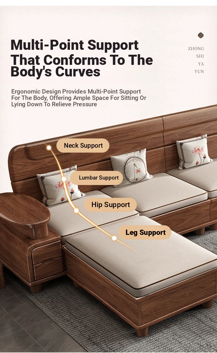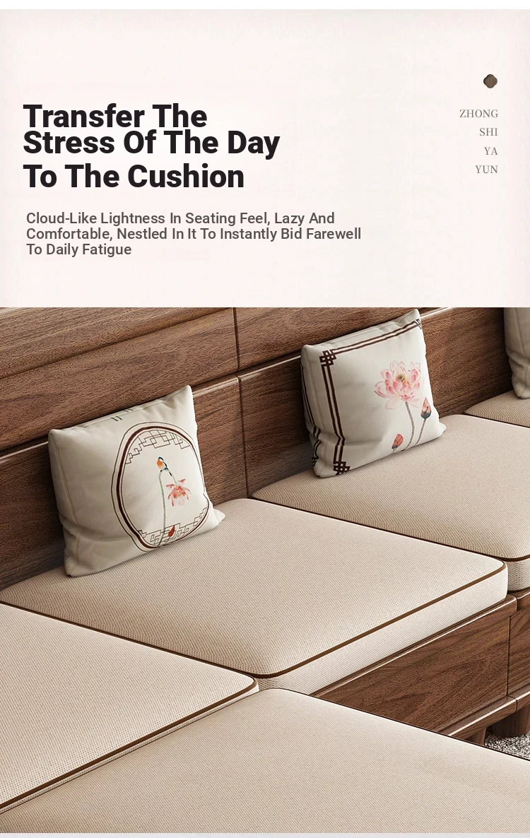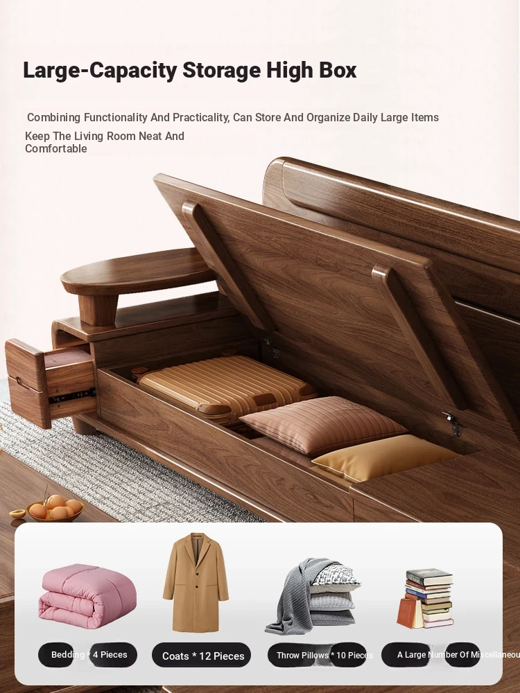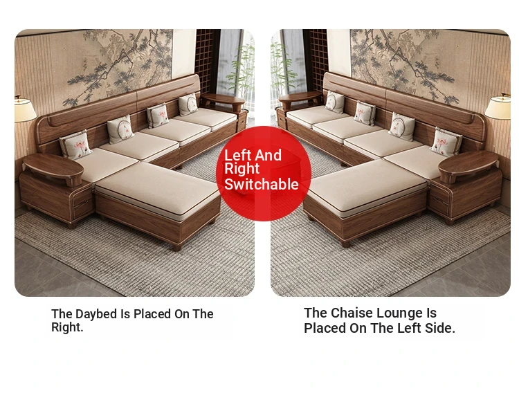 Premium Solid Wood Sofa in Black Walnut - High-End Natural Wood Furniture for Living Room with Storage - 2025 New Chinese Style木沙发